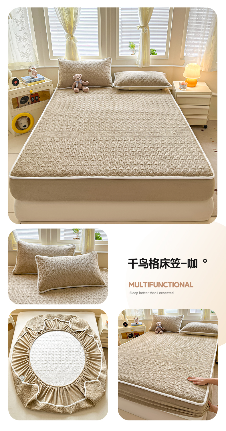 (总)卡伦家纺 2025新款抗菌雕花牛奶绒千鸟格夹棉床笠系列,千鸟格床笠-淡灰,千鸟格床笠-蓝,千鸟格床笠-绿,千鸟格床笠-咖,千鸟格床笠-暖橙,千鸟格床笠-紫,千鸟格床笠-粉,千鸟格床笠-黄,千鸟格床笠-灰