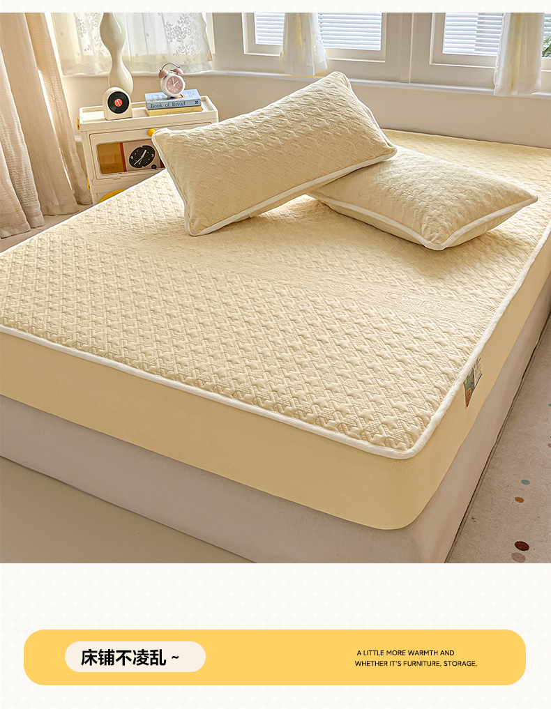 卡伦家纺 2025新款抗菌雕花牛奶绒千鸟格夹棉床笠系列 千鸟格床笠-黄
