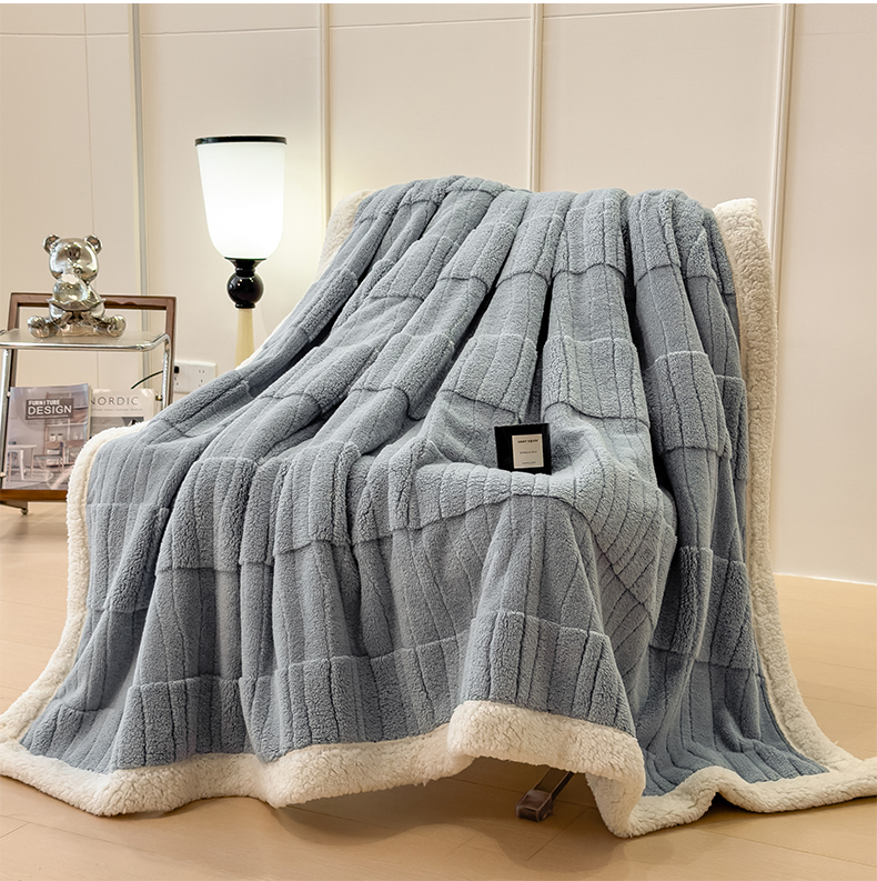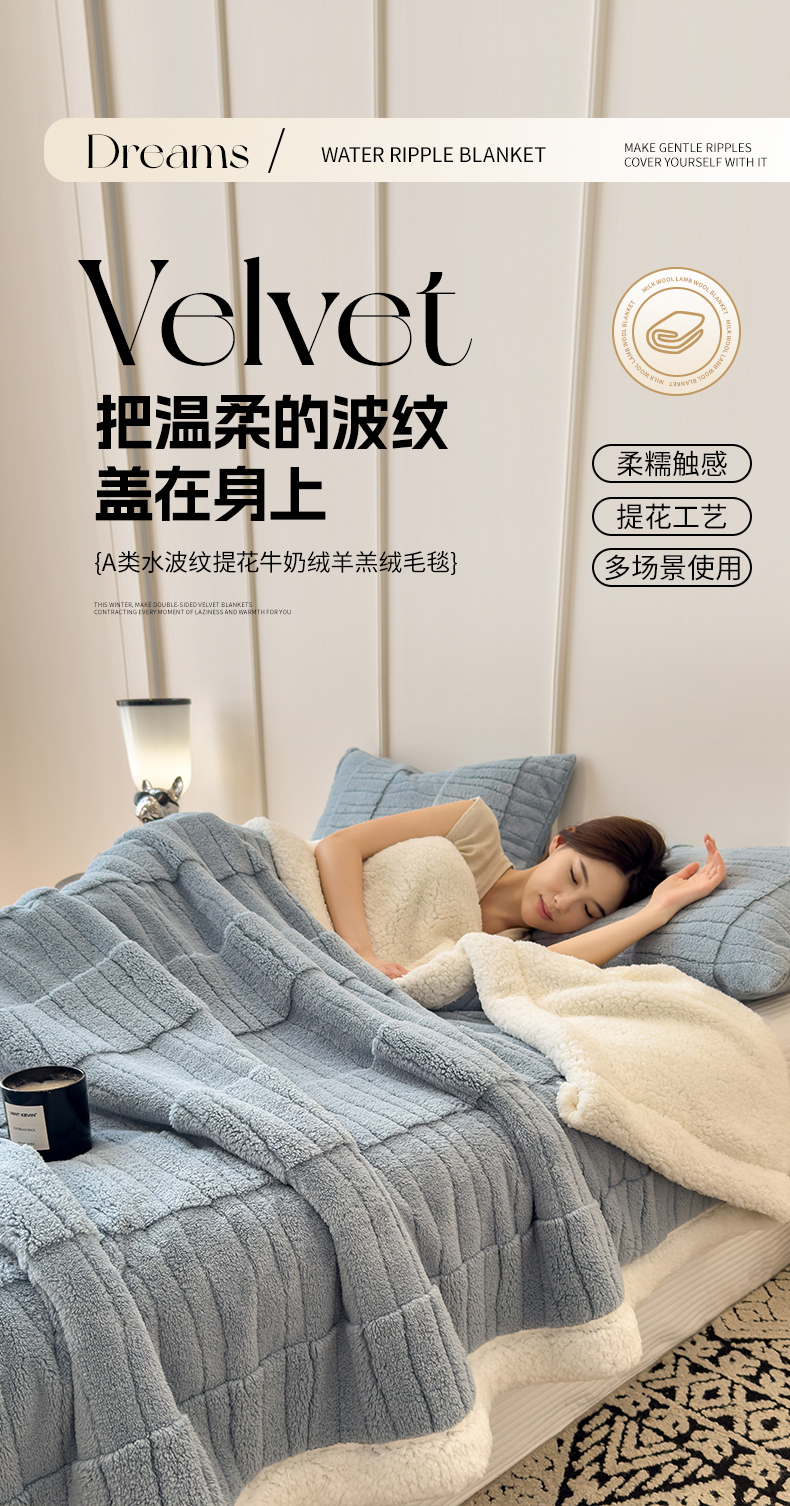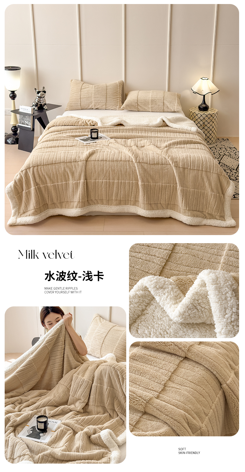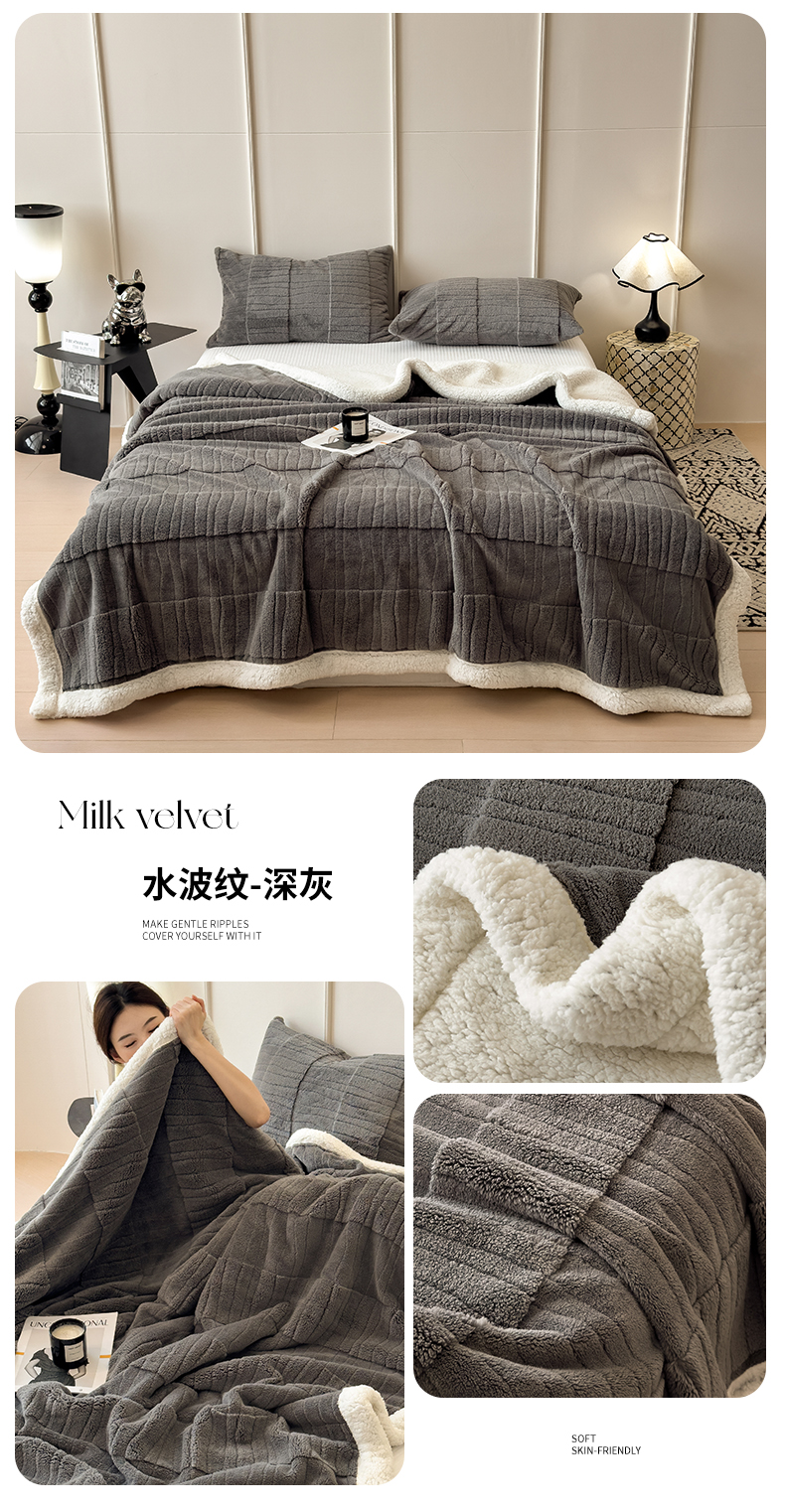 (总)世纪绒品 2025新款A类加厚水波纹羊羔绒双层提花毛毯,水波纹-蓝灰,水波纹-浅灰,水波纹-深灰,水波纹-浅卡,水波纹-浅粉,水波纹-米白