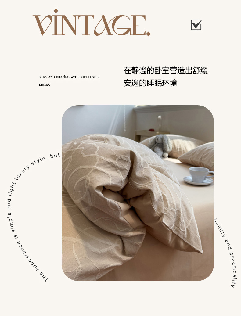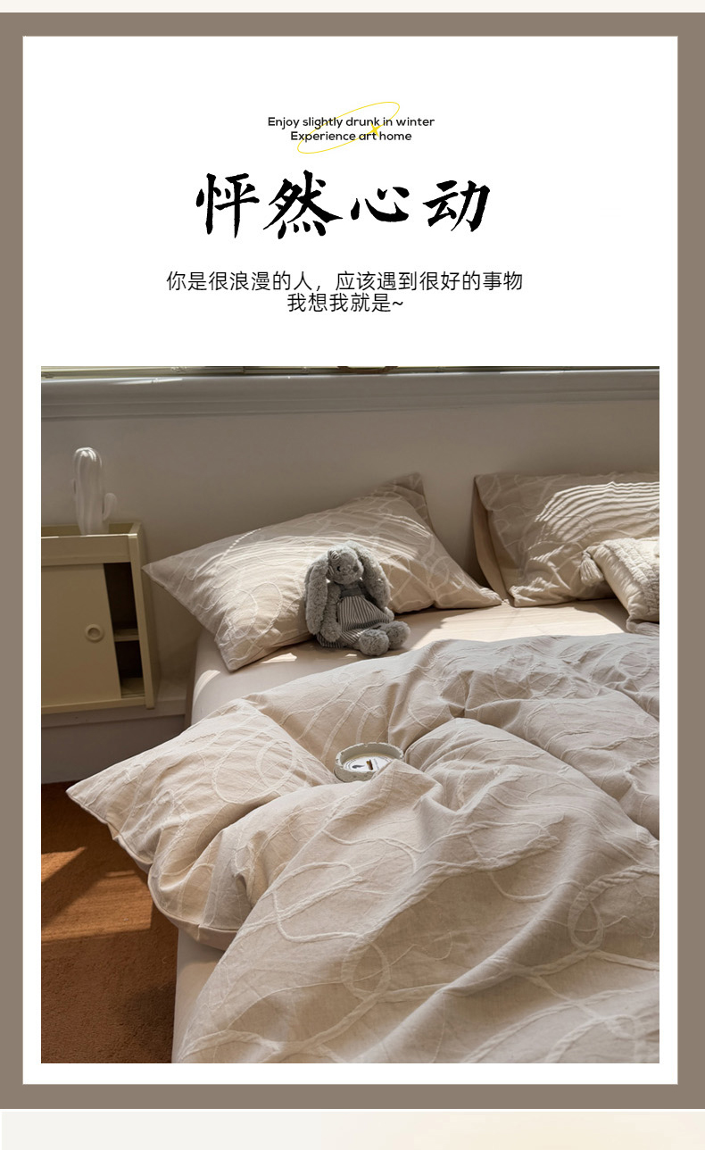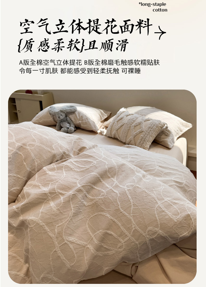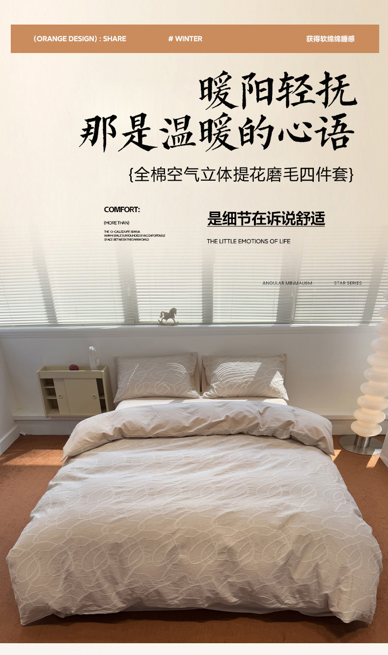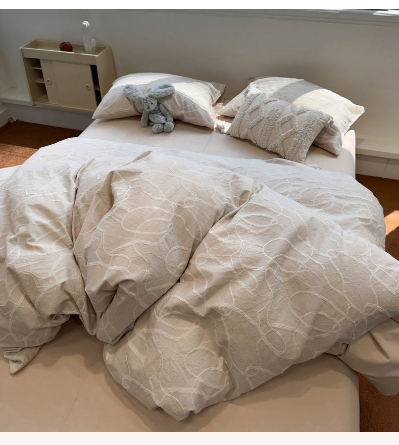 当前位置: 91家纺网 > 商品网购 > 床品套件 > 四件套 > 普通磨毛四件套 > 慕尚家纺 2025新款全棉空气立体提花磨毛四件套 贯穿-卡其