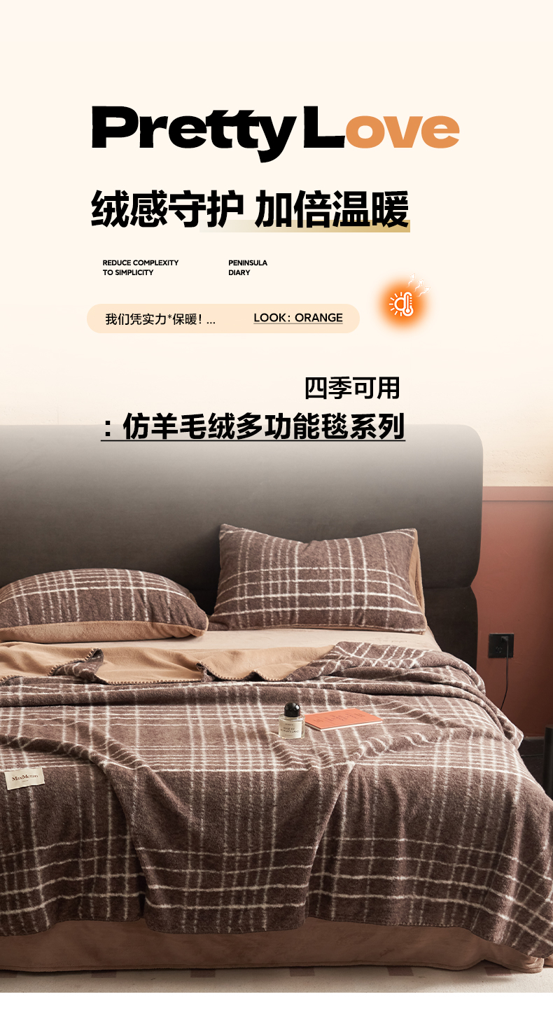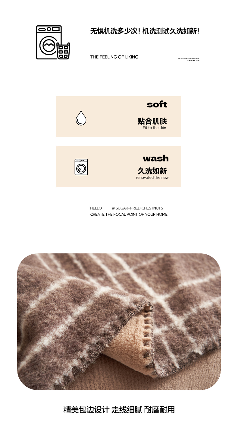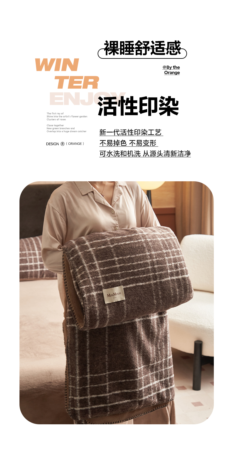 商品名称:晨曦家纺 2025新款仿生羊毛绒毛毯沙发盖毯办公室午睡毯四季毯 深棕格序