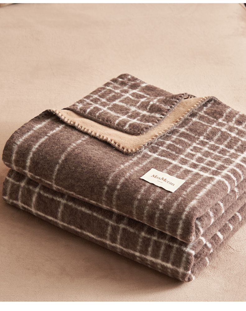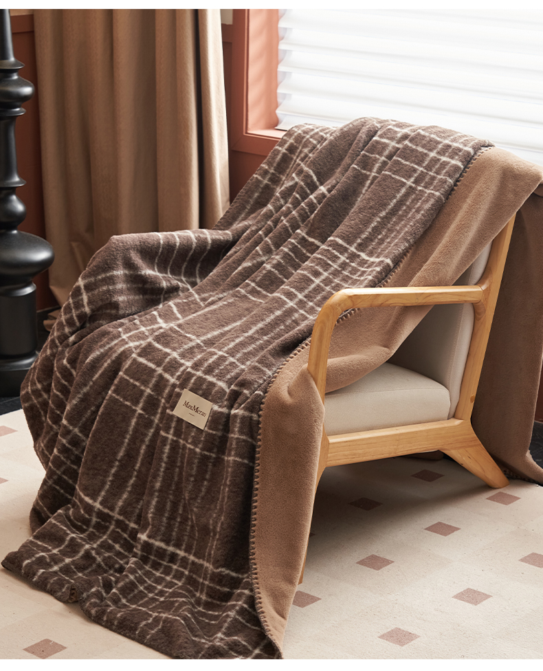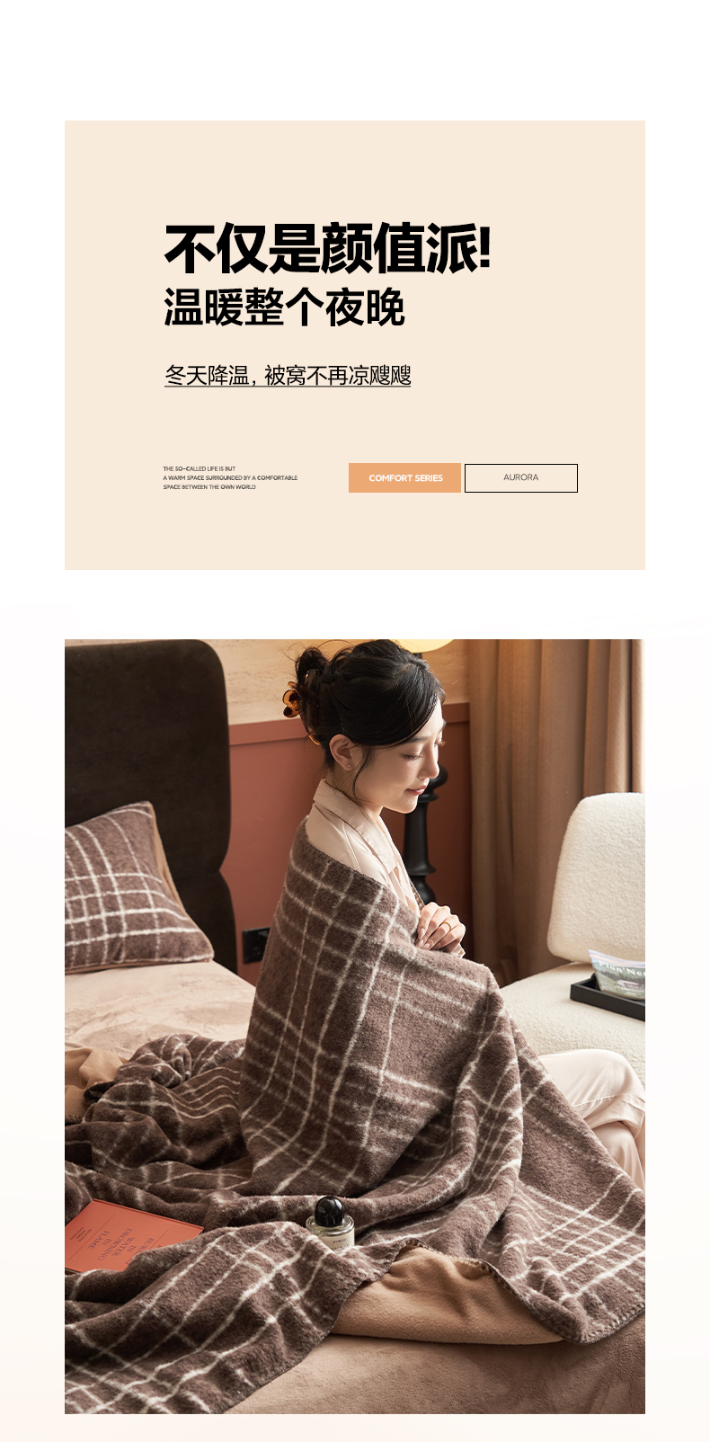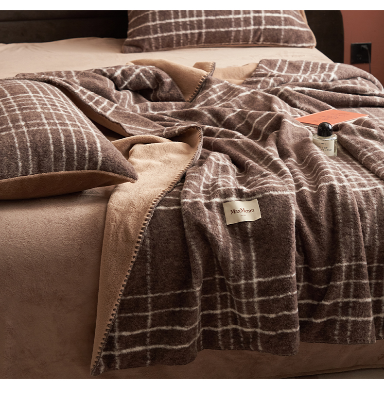 晨曦家纺 2025新款仿生羊毛绒毛毯沙发盖毯办公室午睡毯四季毯 深棕格序