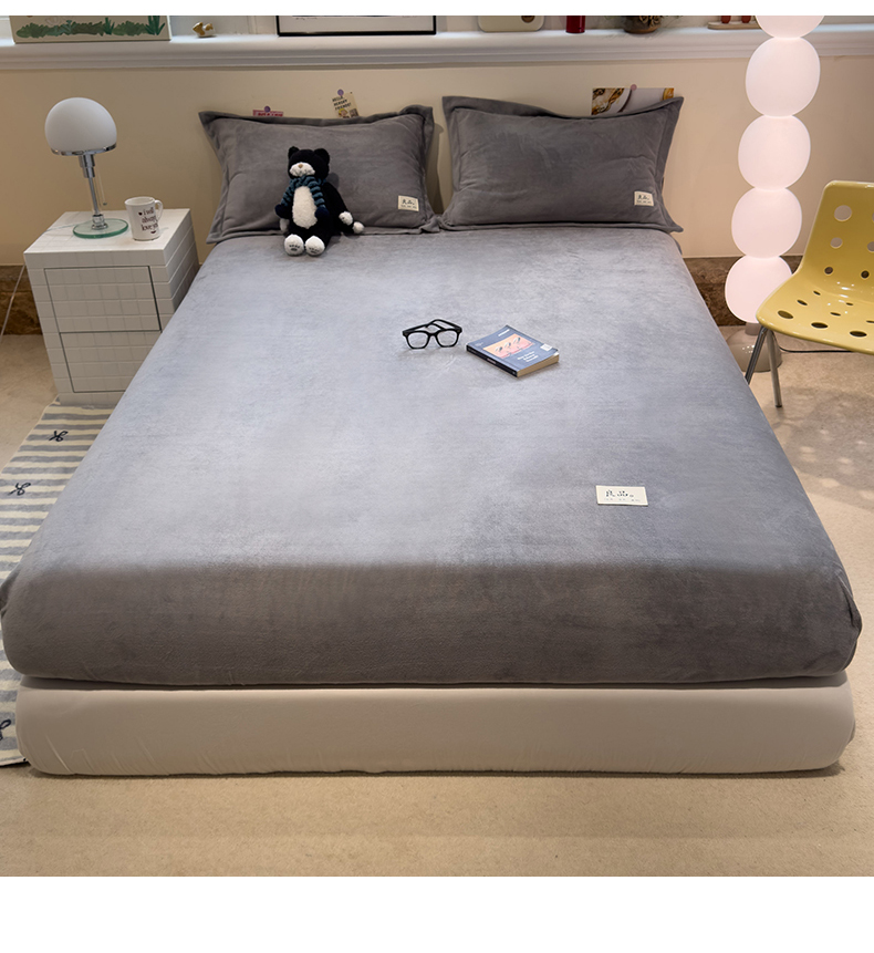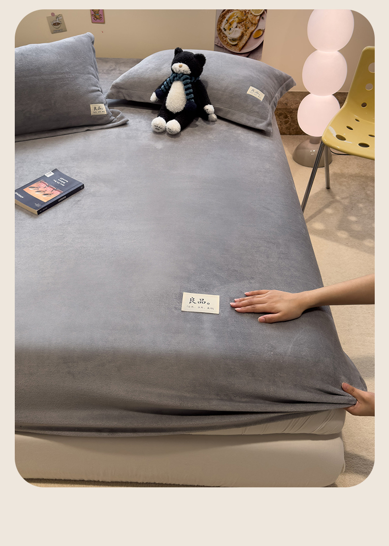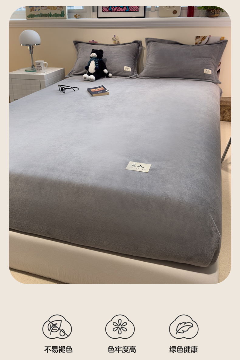 857家居 2025新款高克重牛奶绒床单床笠系列 良品-浅灰