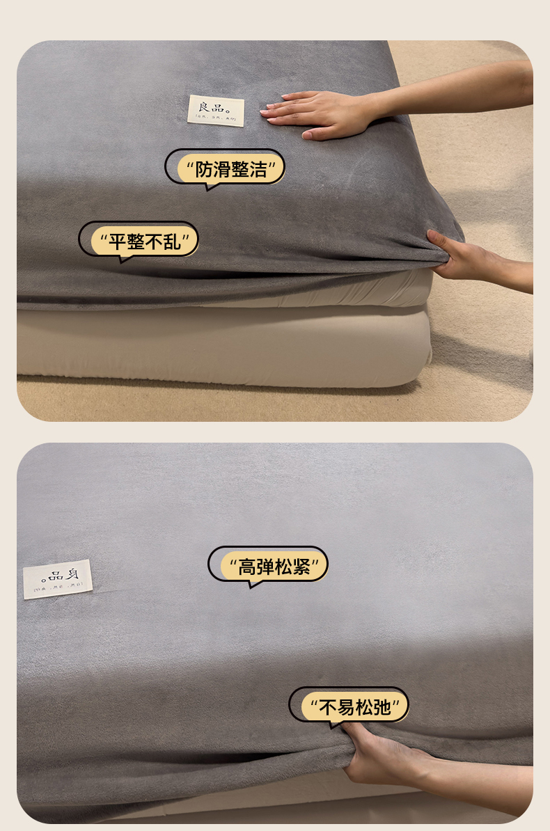 • 91家纺网 家纺一手货源 找家纺 857家居 2025新款高克重牛奶绒床单床笠系列 良品-浅灰