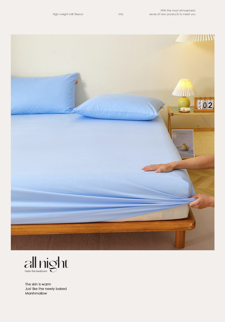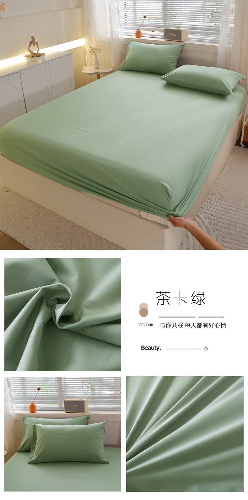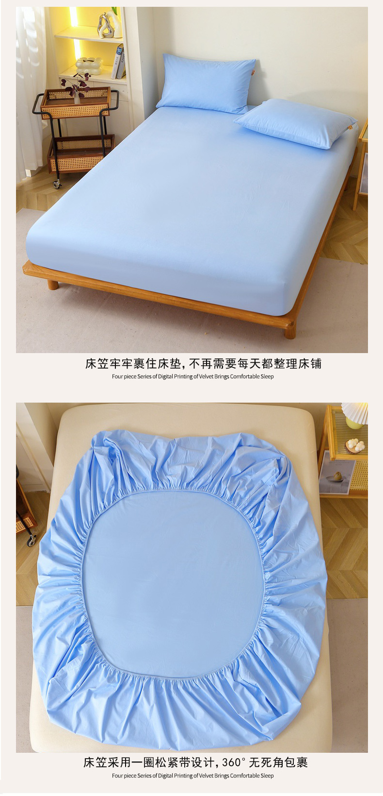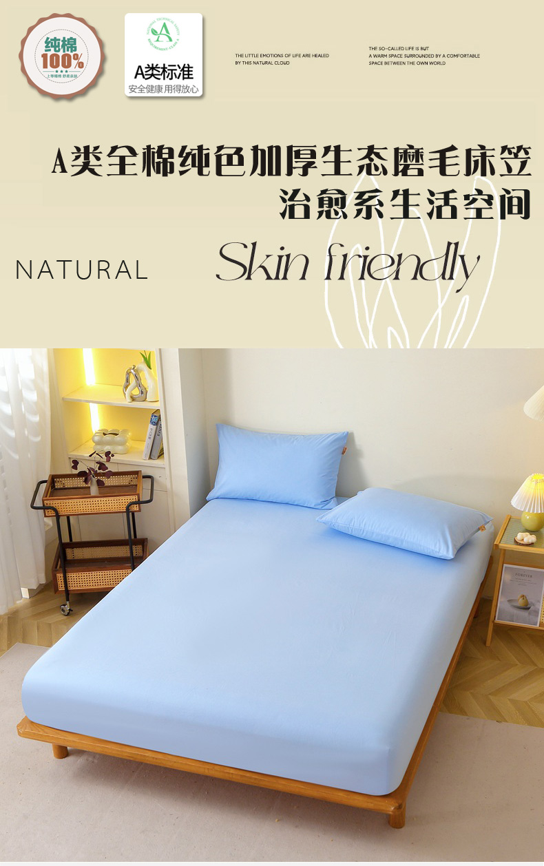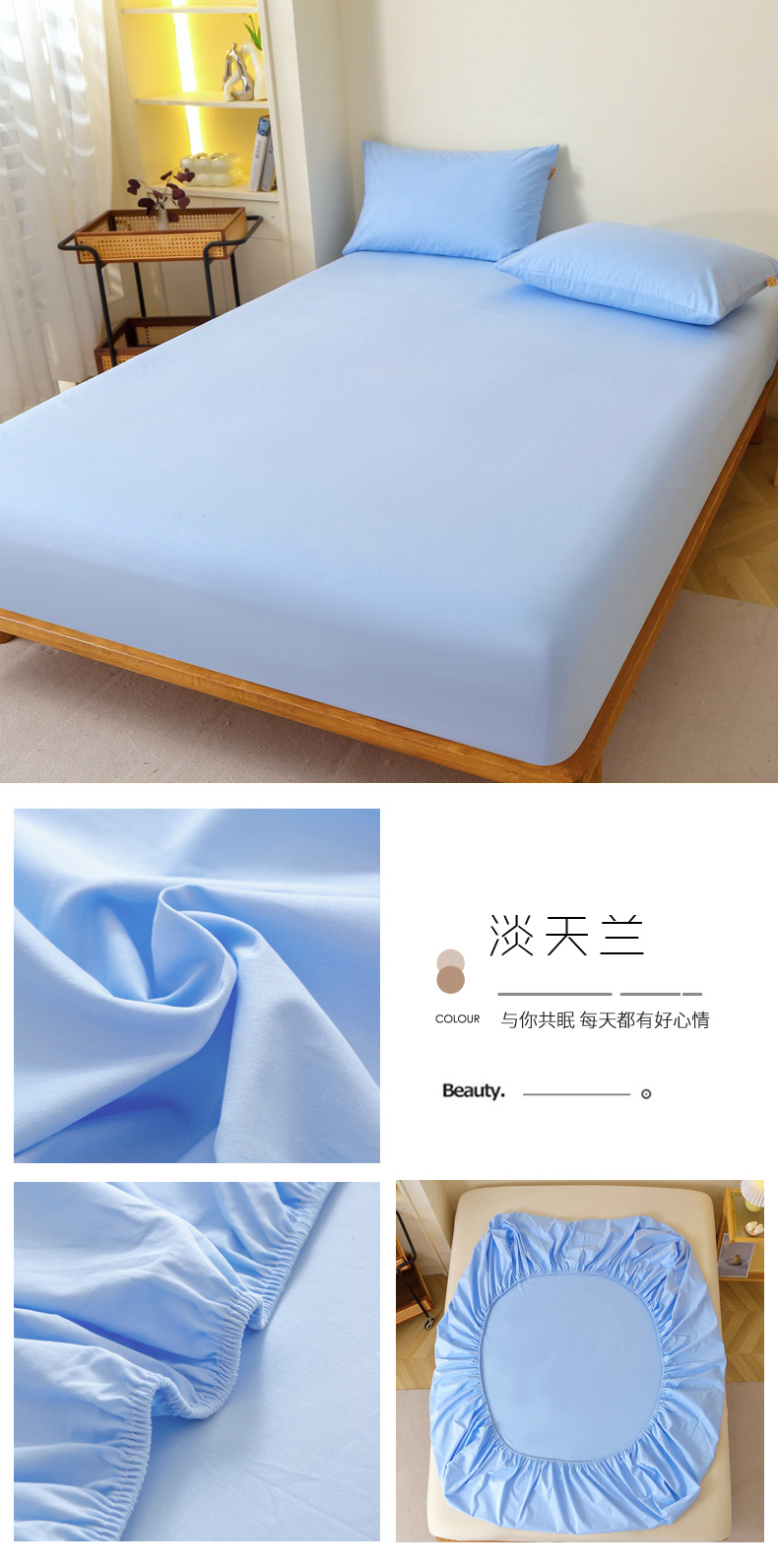 晶缦 2025新款100%纯棉13376纯色喷气全棉磨毛单床笠 暖芸馨-淡天兰