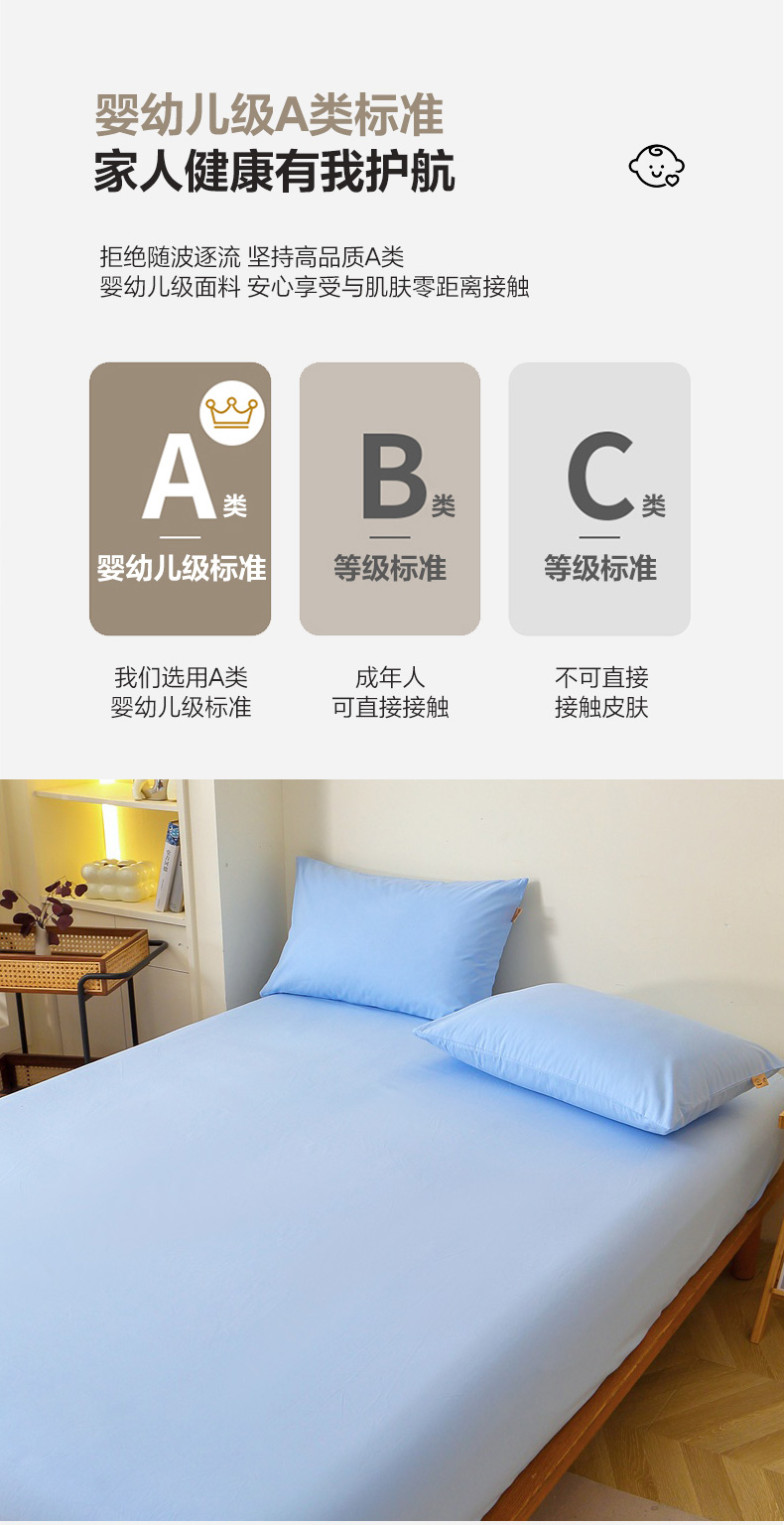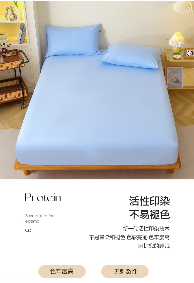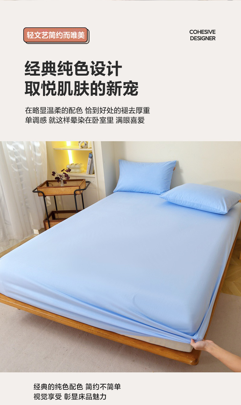 • 91家纺网 家纺一手货源 找家纺 晶缦 2025新款100%纯棉13376纯色喷气全棉磨毛单床笠 暖芸馨-淡天兰