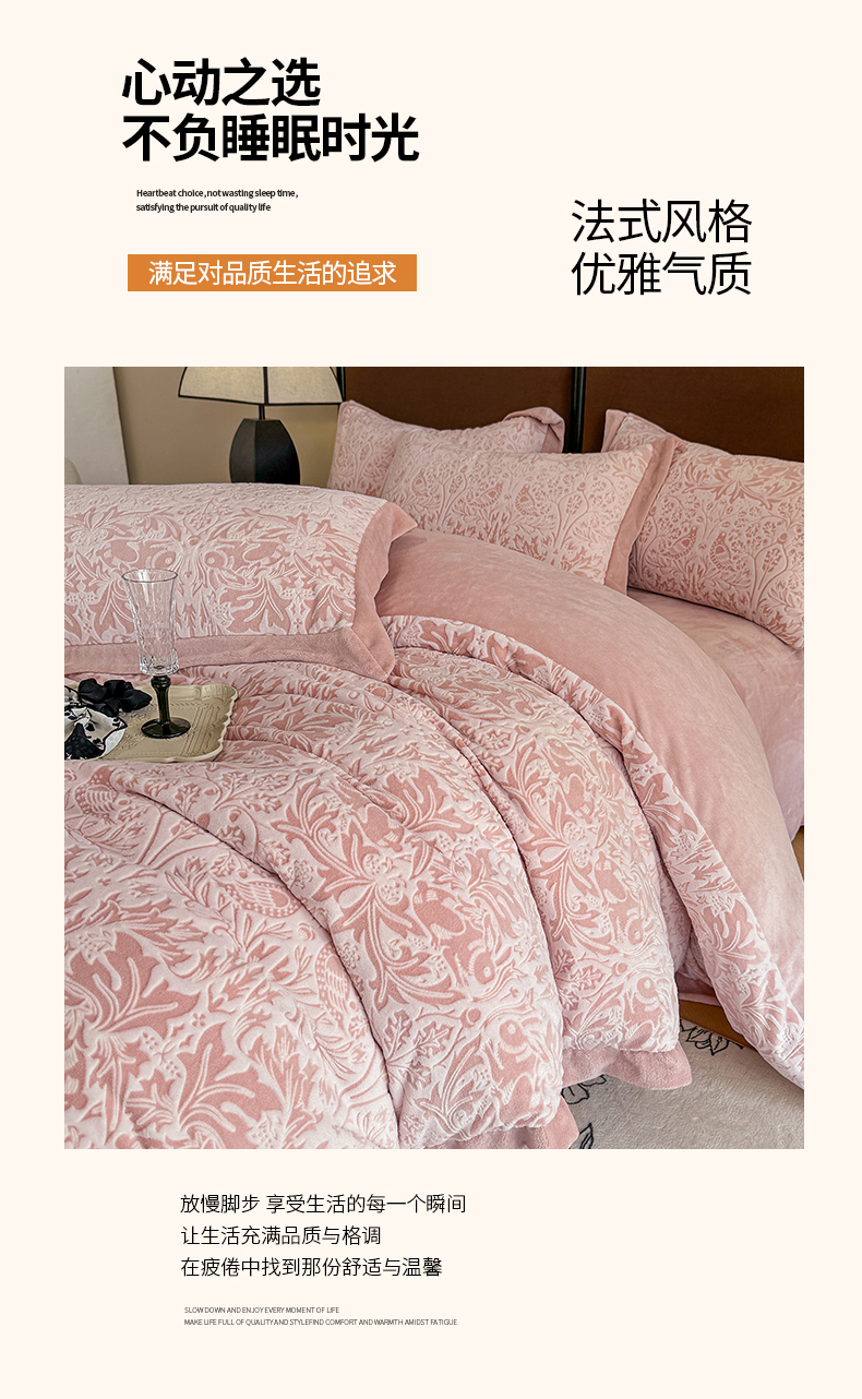 (总)慕晨 2025新款立体提花绒简约风格高克重雕花加厚牛奶绒四件套,波西米亚-米白,花季恋歌-粉,花约-驼,玫瑰之约-粉,玫瑰之约-米白,轻奢旗格-米白,轻奢旗格-浅灰,水杉叶-绿,水杉叶-米白