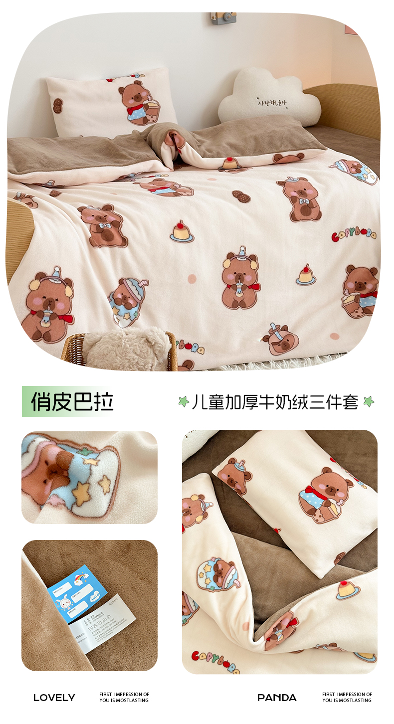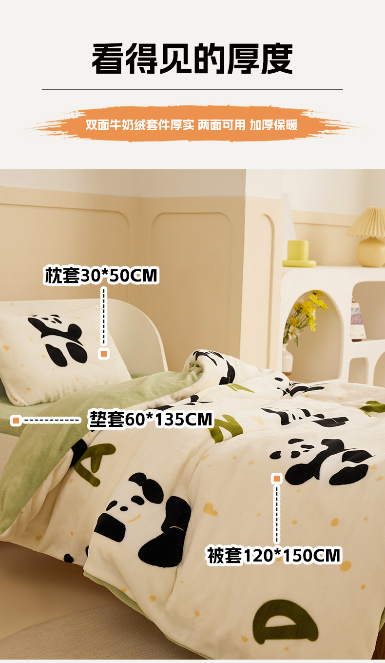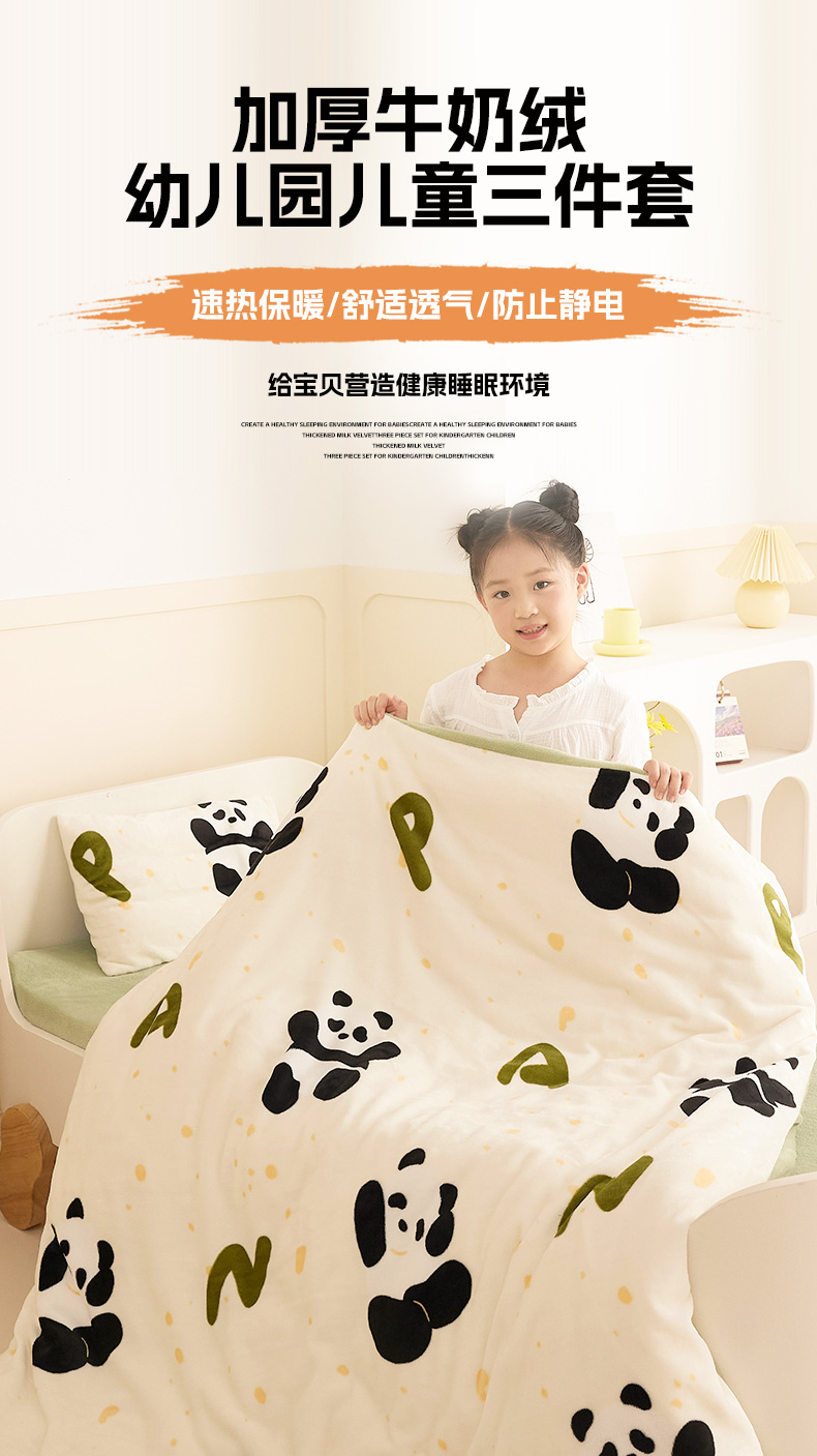 当前位置: 91家纺网 > 商品网购 > 床品套件 > 三件套 > 嗨生活 2025新款加厚牛奶绒三件套儿童套件幼儿园三件套系列 开心熊猫