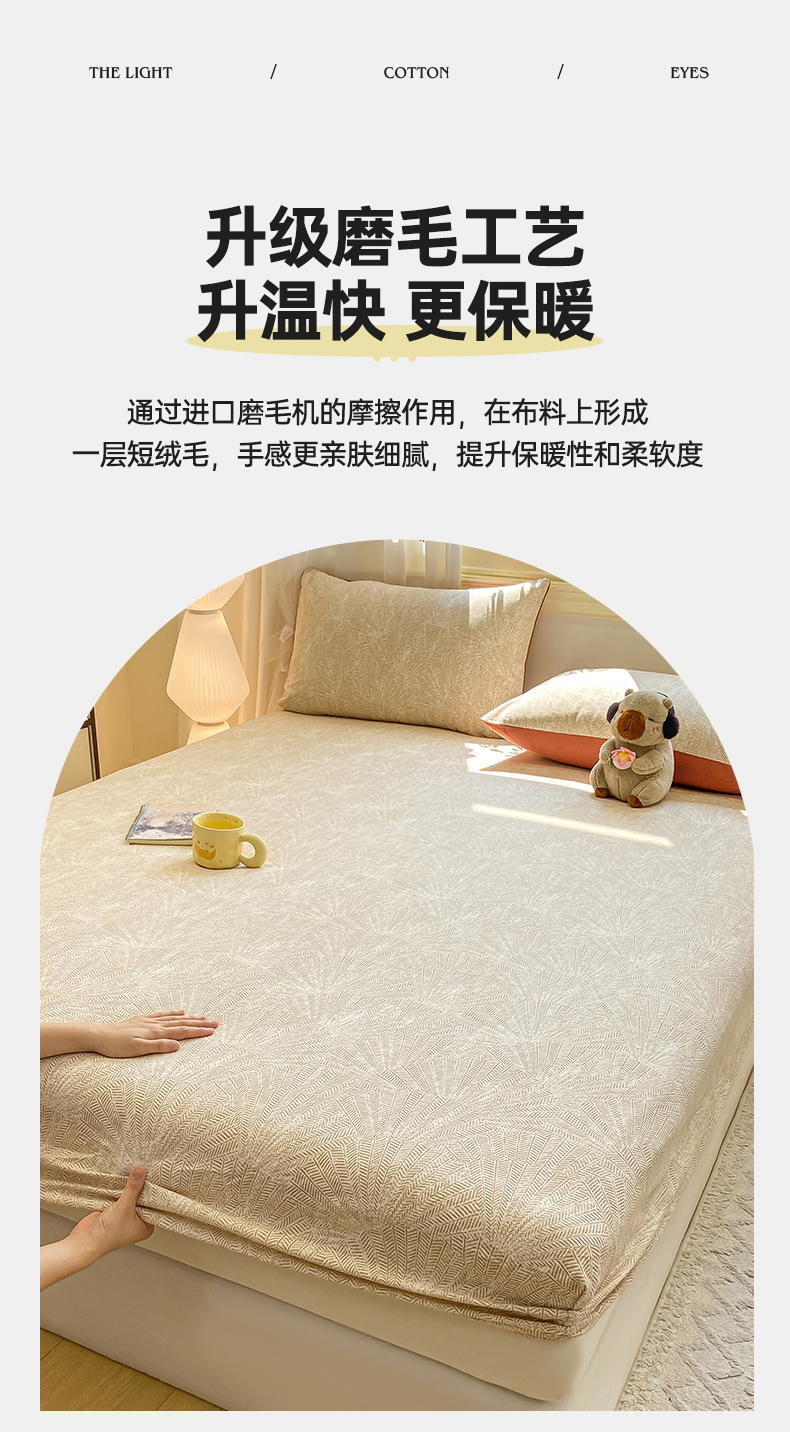 • 91家纺网 家纺一手货源 找家纺 灰鲸 2025新款A类全棉磨毛单品床笠 床笠单件 南昭-咖