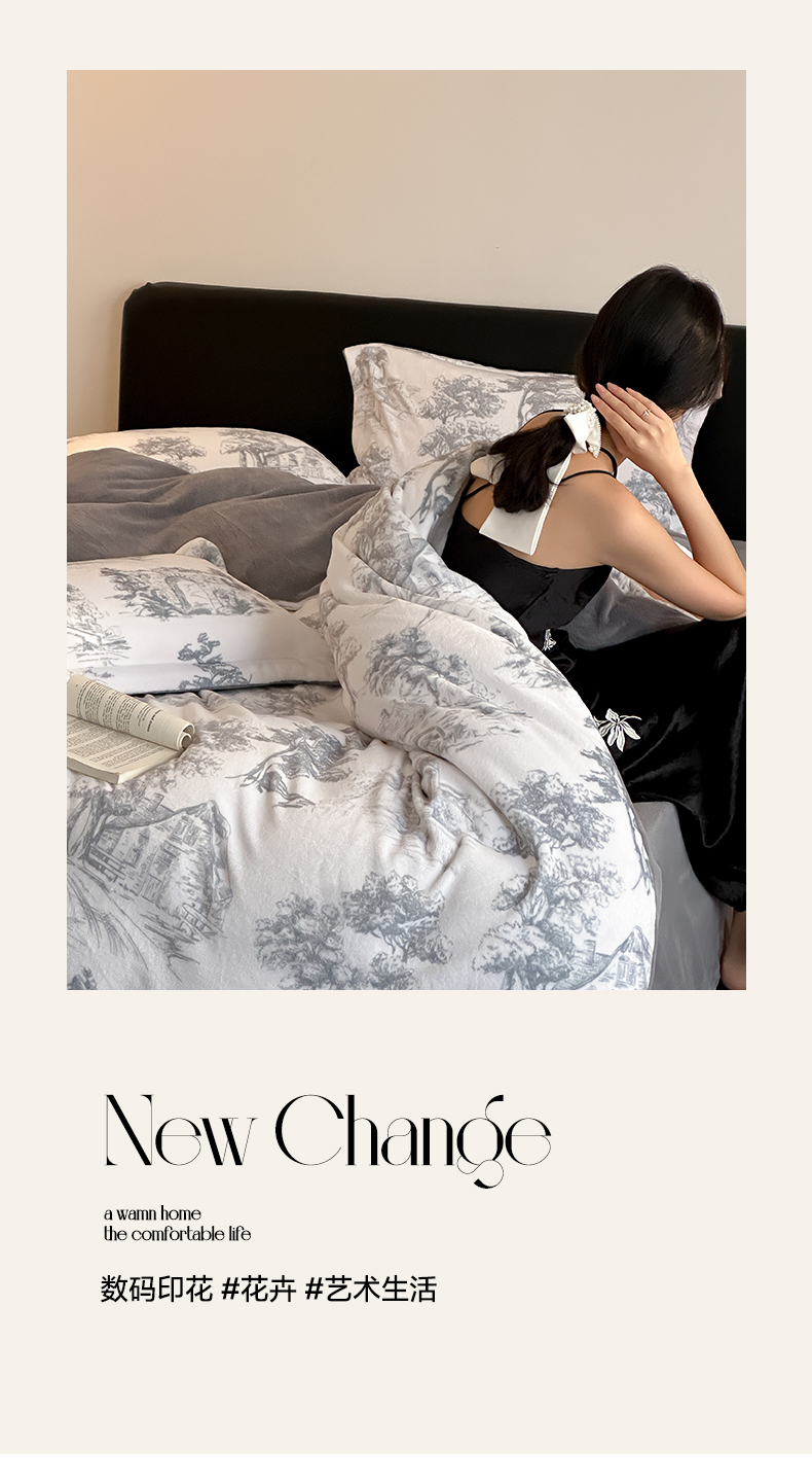 三味舒屋 2025新款奢暖数码印花牛奶绒四件套-模特图 花漾