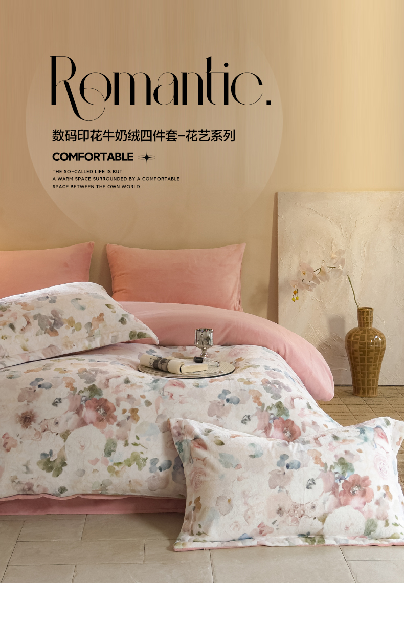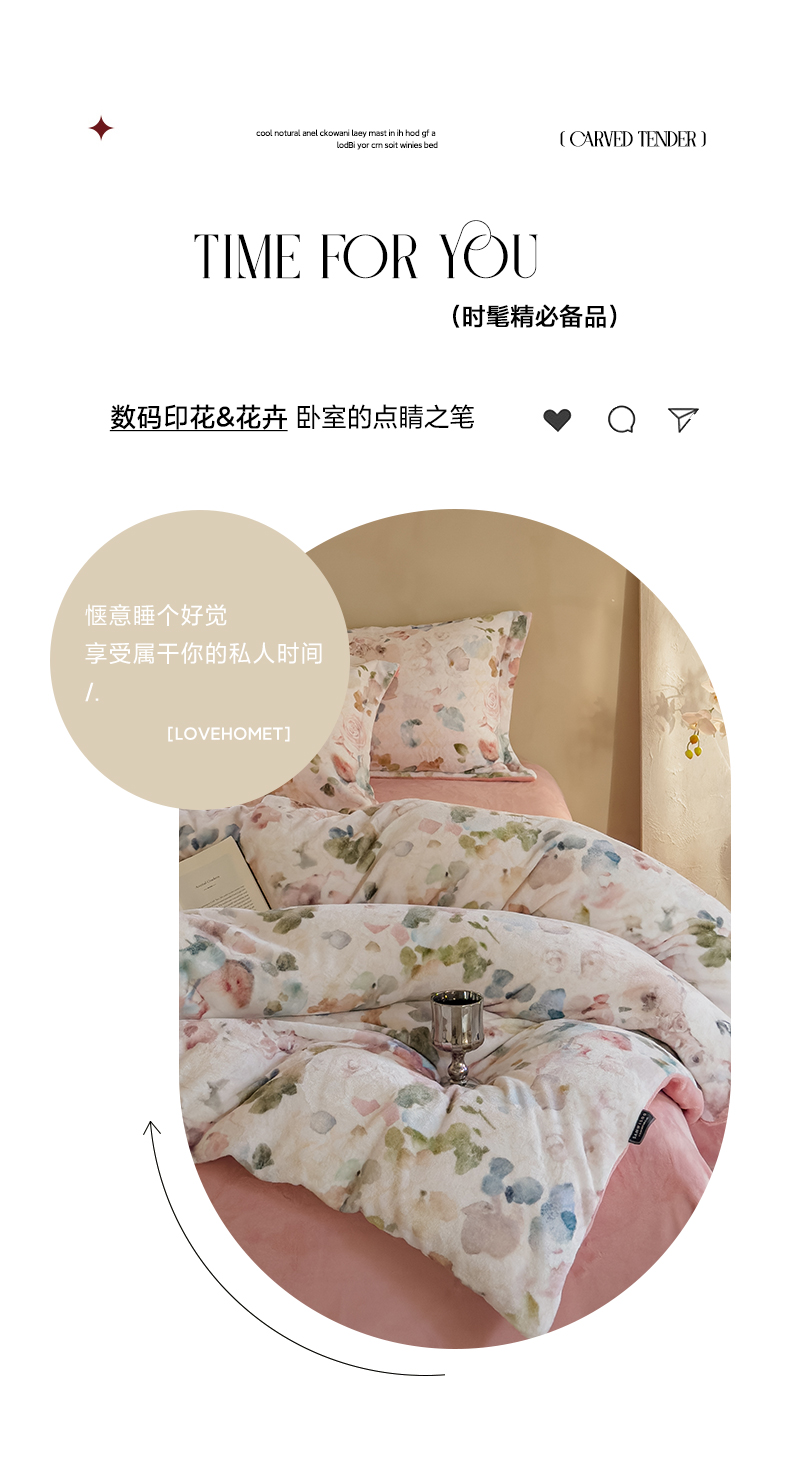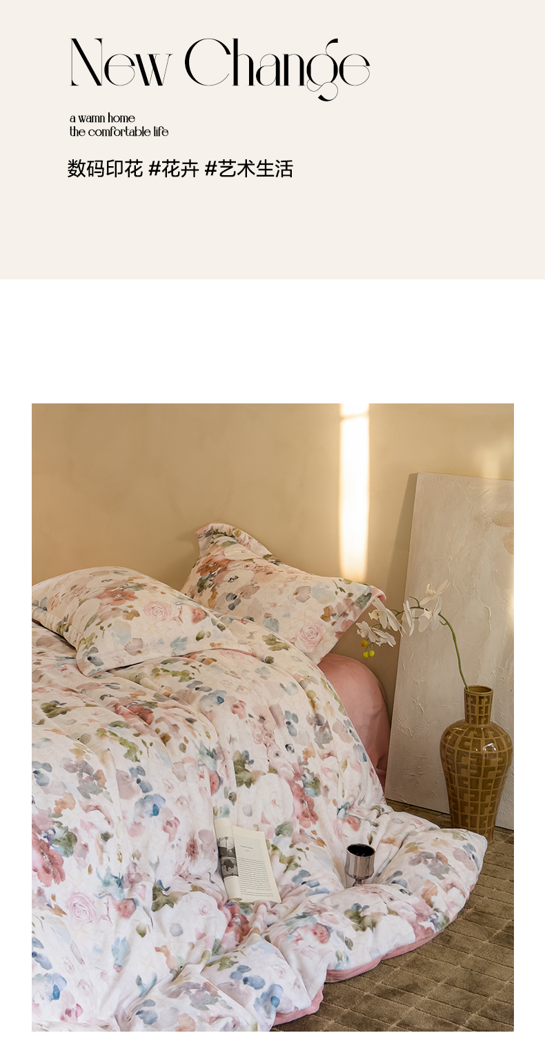 三味舒屋 2025新款奢暖数码印花牛奶绒四件套-场景图 云裳