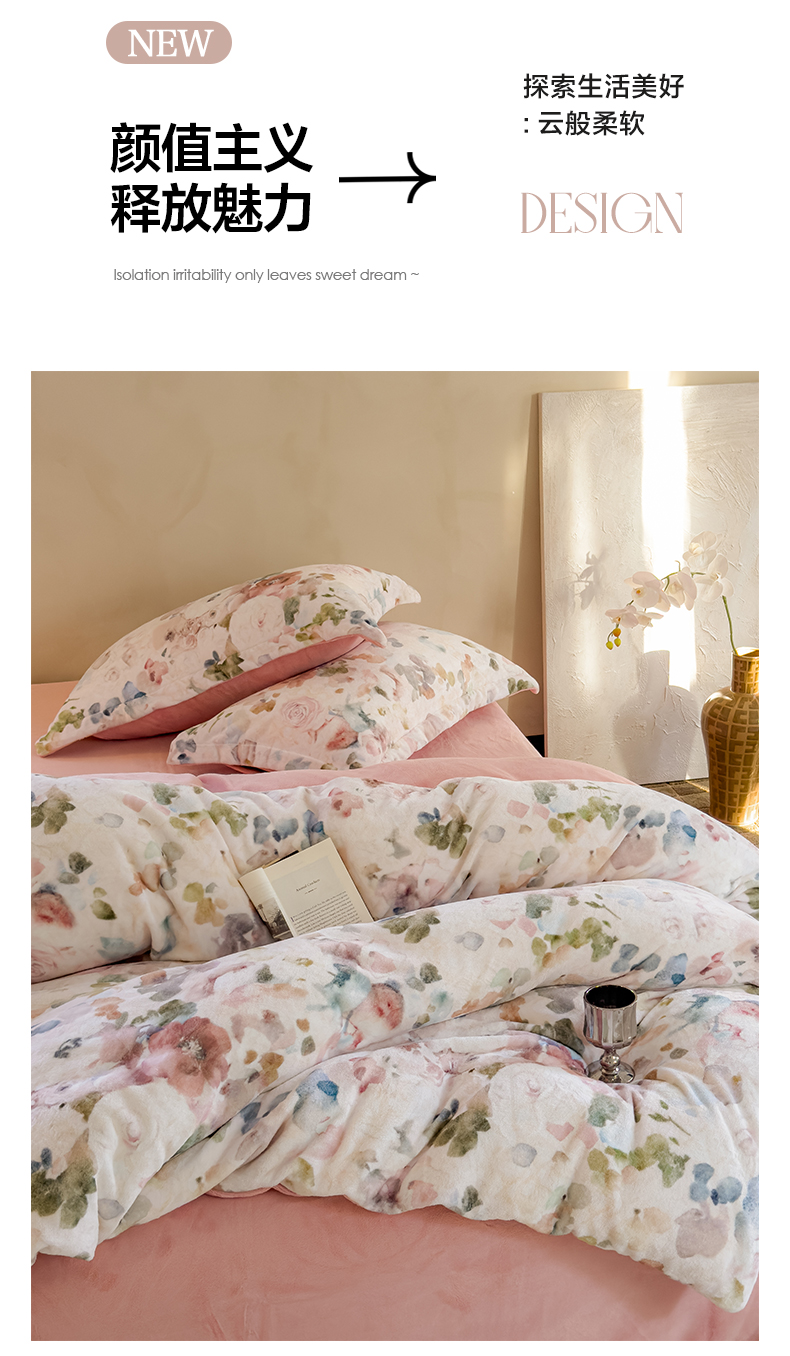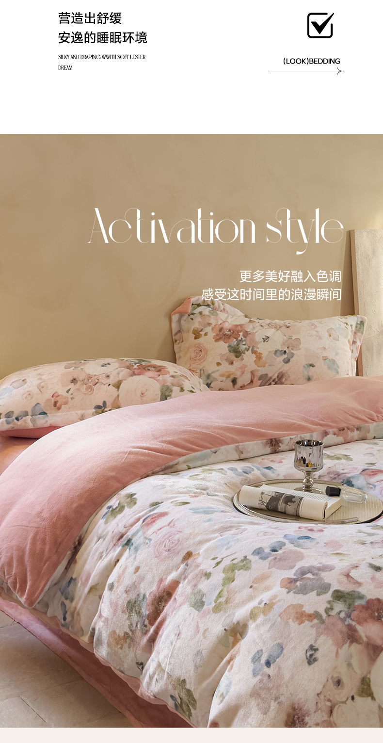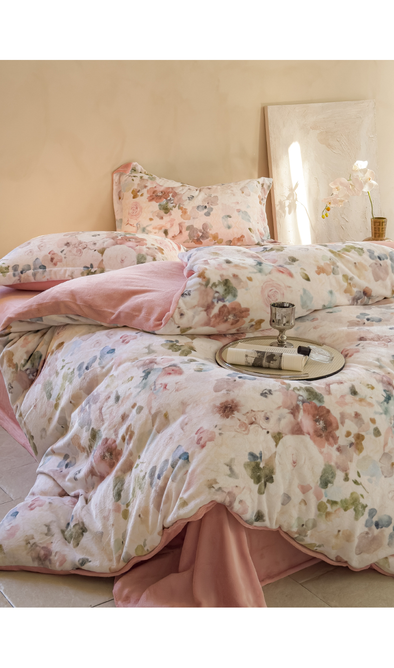 三味舒屋 2025新款奢暖数码印花牛奶绒四件套-场景图 云裳