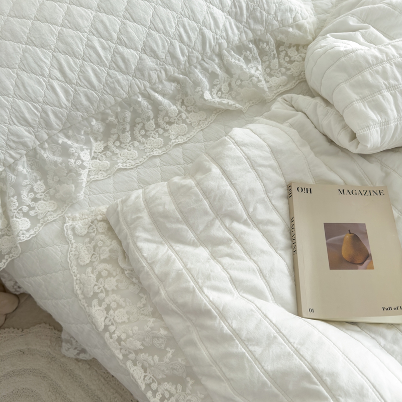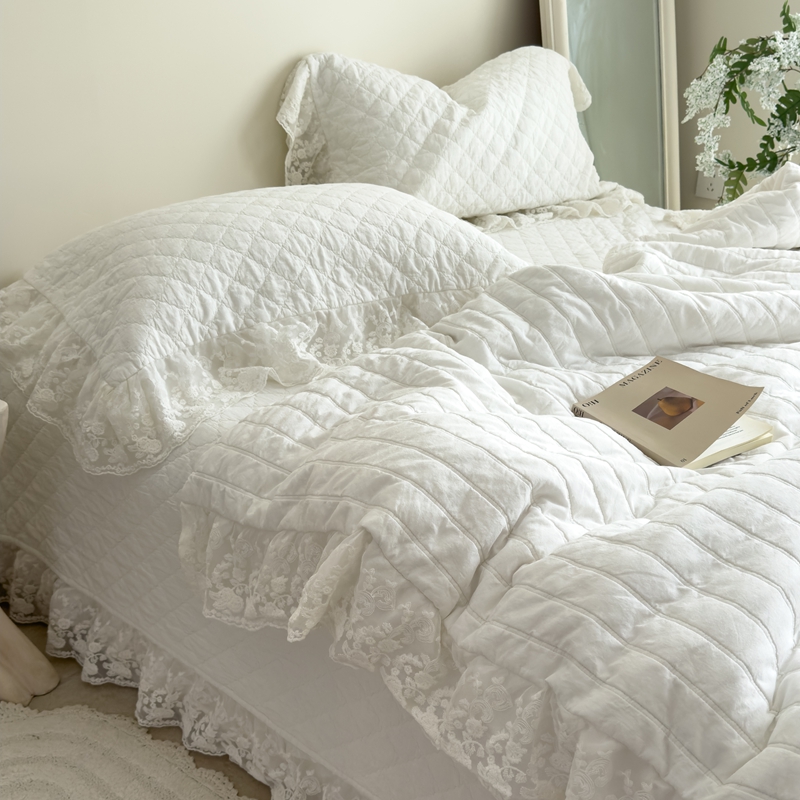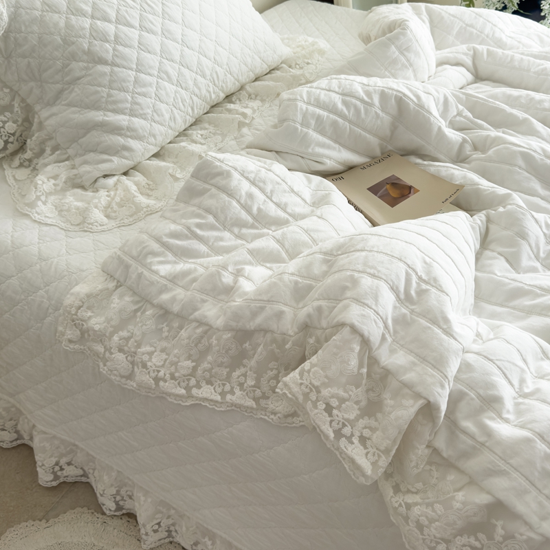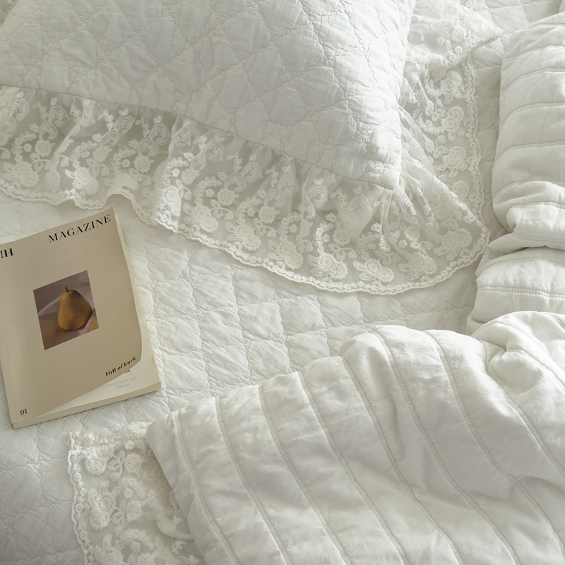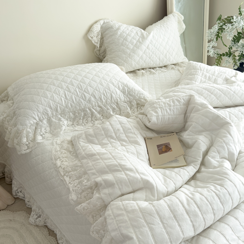 (总)上喜 2025新款全棉砂洗床盖新升级第五代,白色,湖蓝,奶油米,深灰,深咖