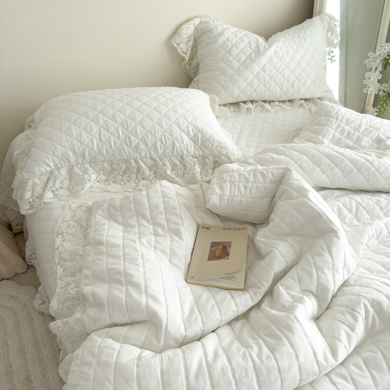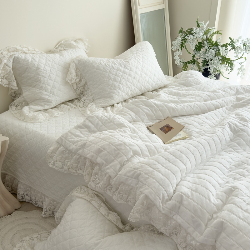 (总)上喜 2025新款韩国砂洗床盖+多功能夏被,白色,粉色,黄色,灰色,紫色