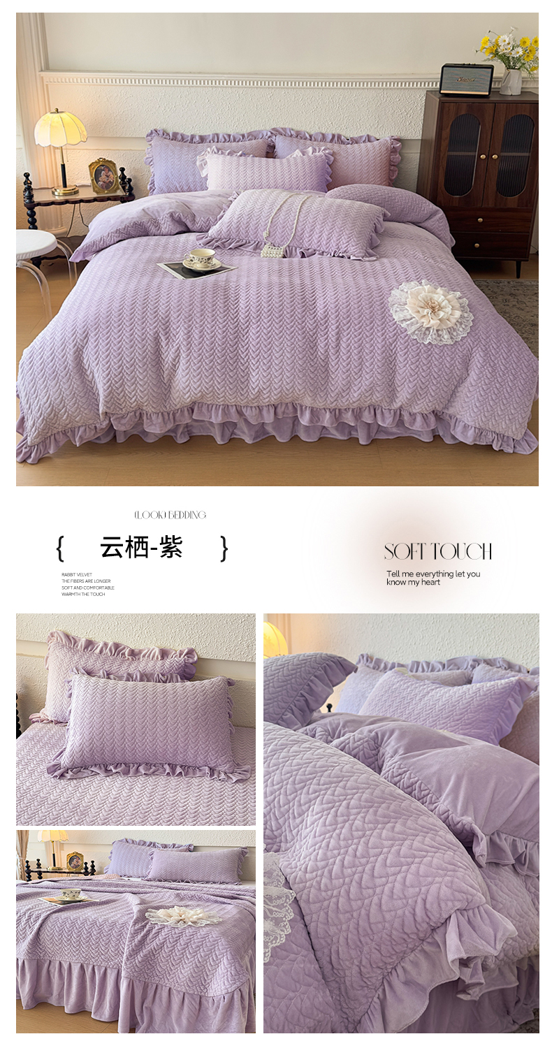 (总)乐嘉盈2025年新款纯色刺绣床裙款牛奶绒四件套-云栖,云栖-豆沙,云栖-粉,云栖-蓝,云栖-绿,云栖-米白,云栖-紫