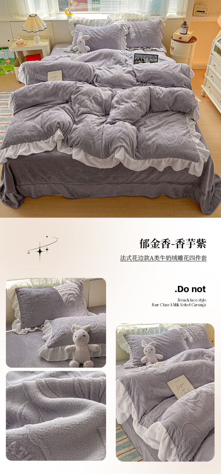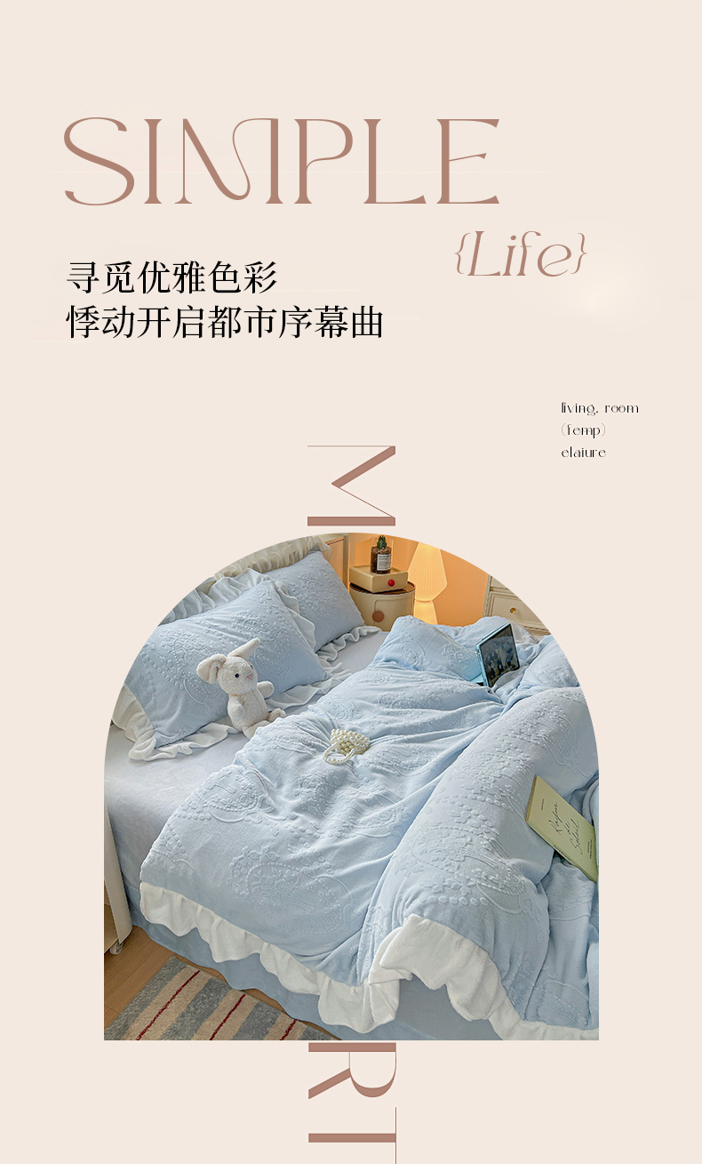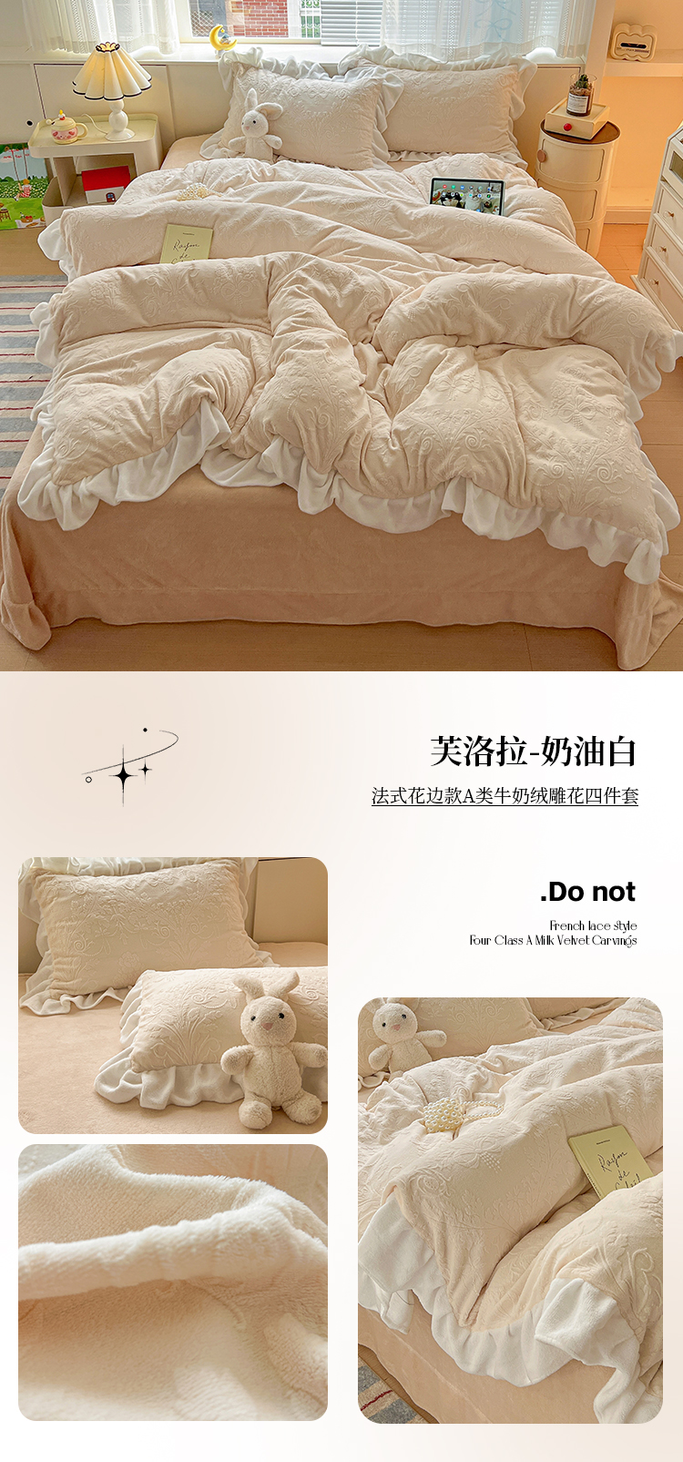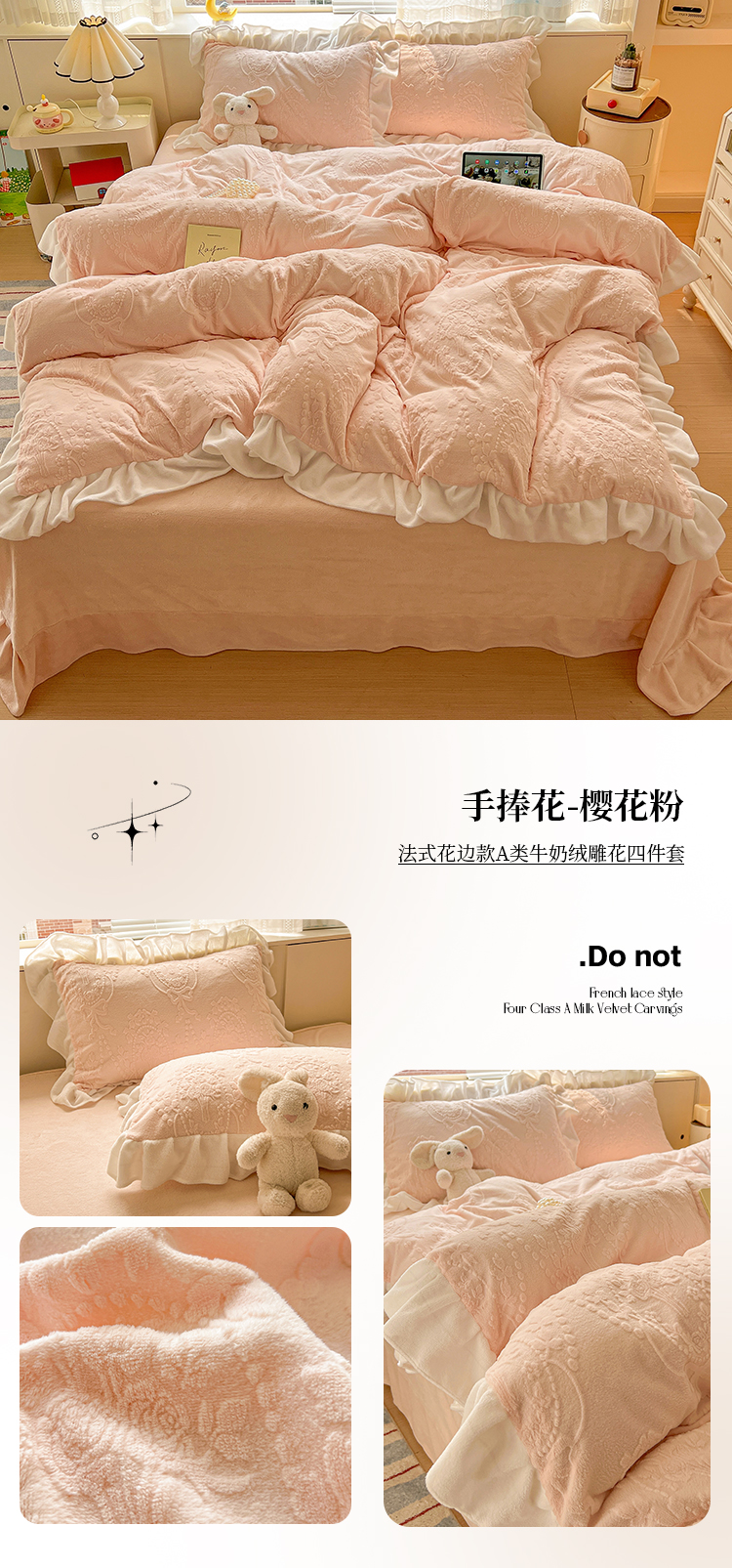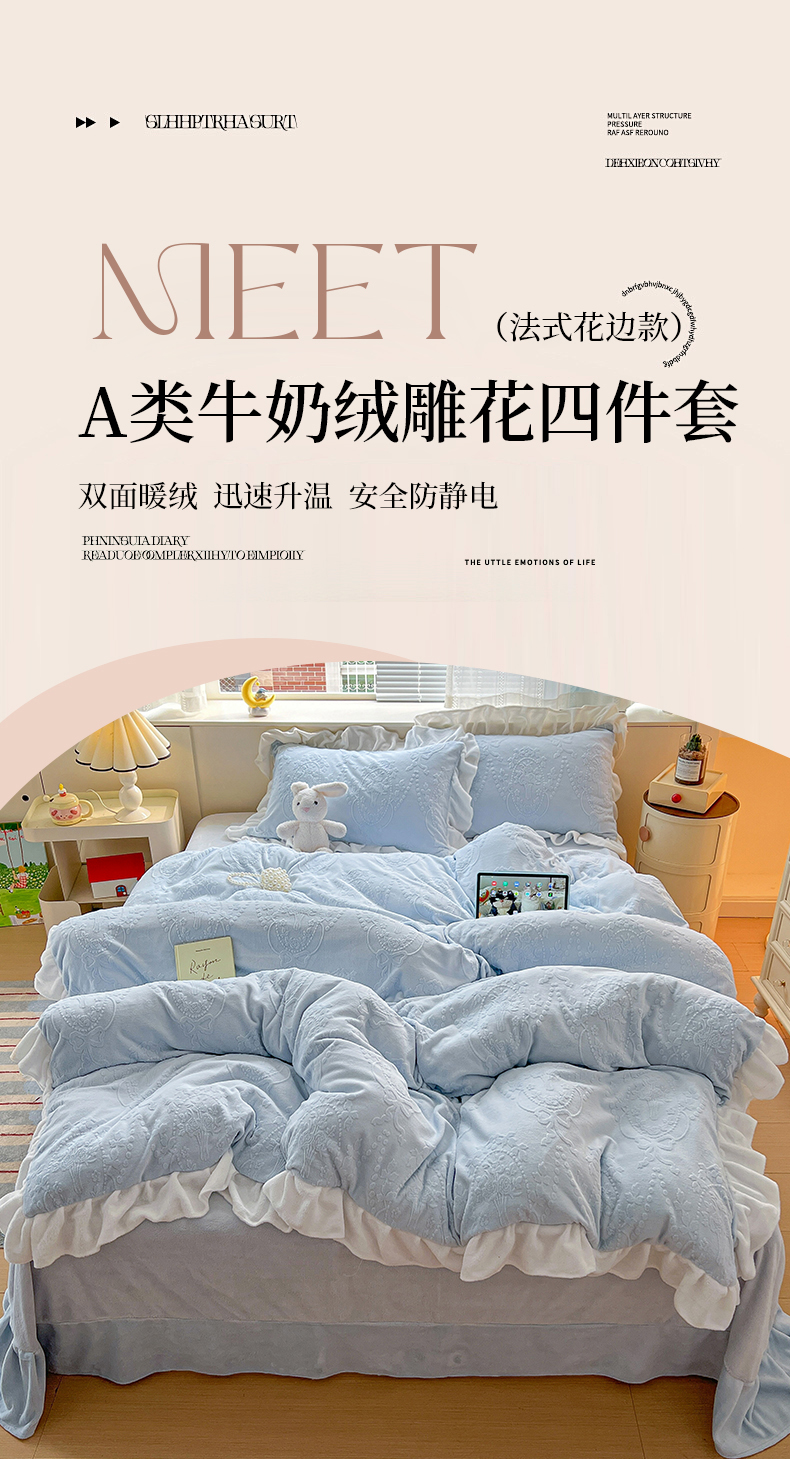当前位置: 91家纺网 > 商品网购 > 床品套件 > 四件套 > 牛奶绒四件套 > 亿梵家居 2025新款法式花边款A类5D牛奶绒立体雕花四件套(提供买家秀) 花边款 手捧花-天空蓝