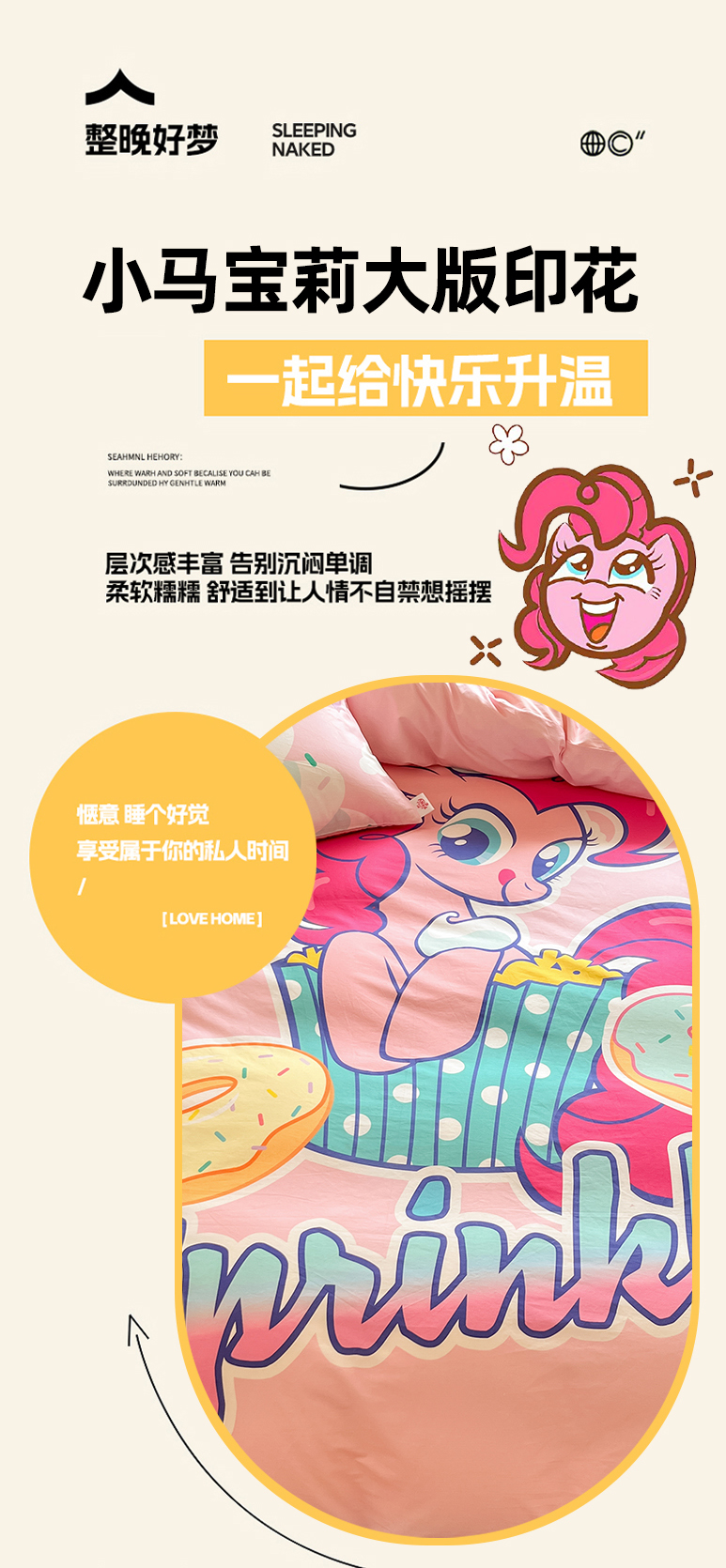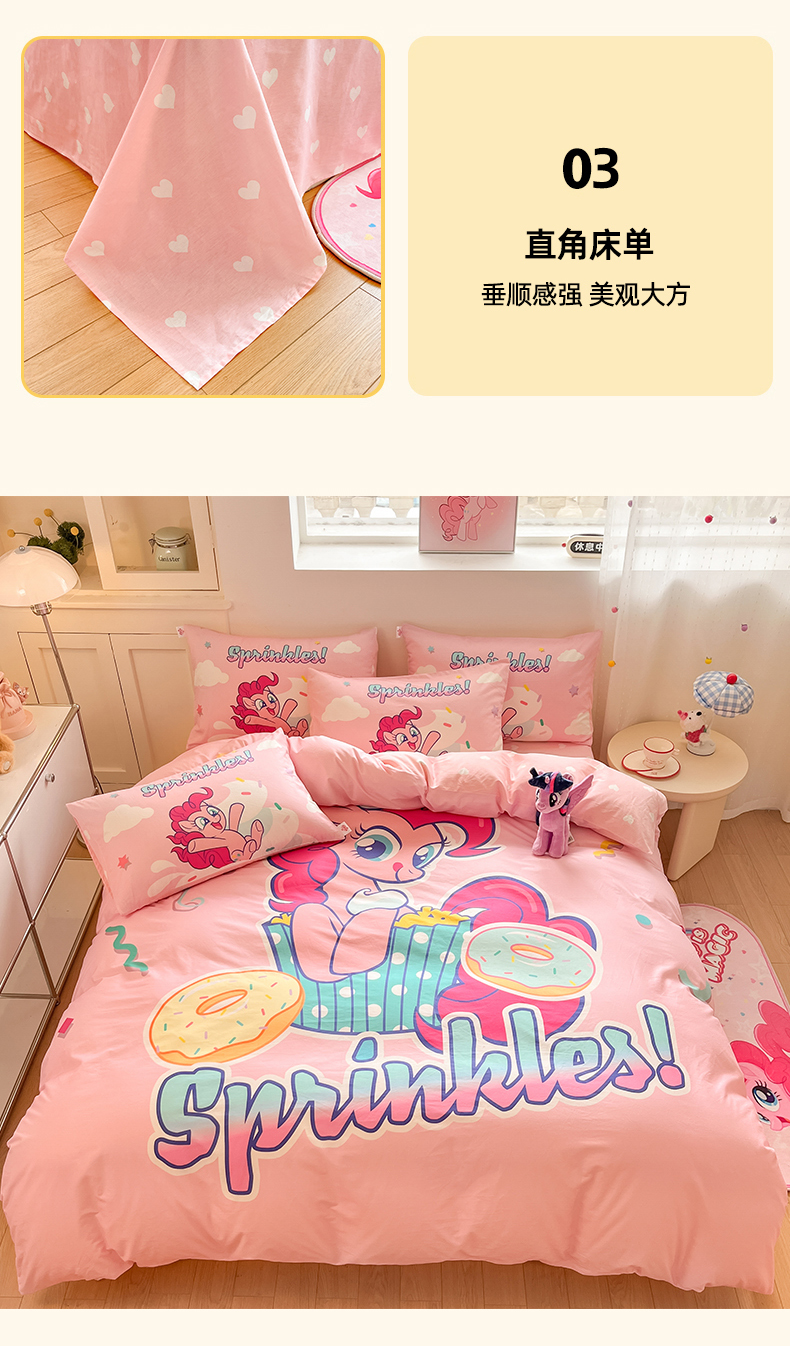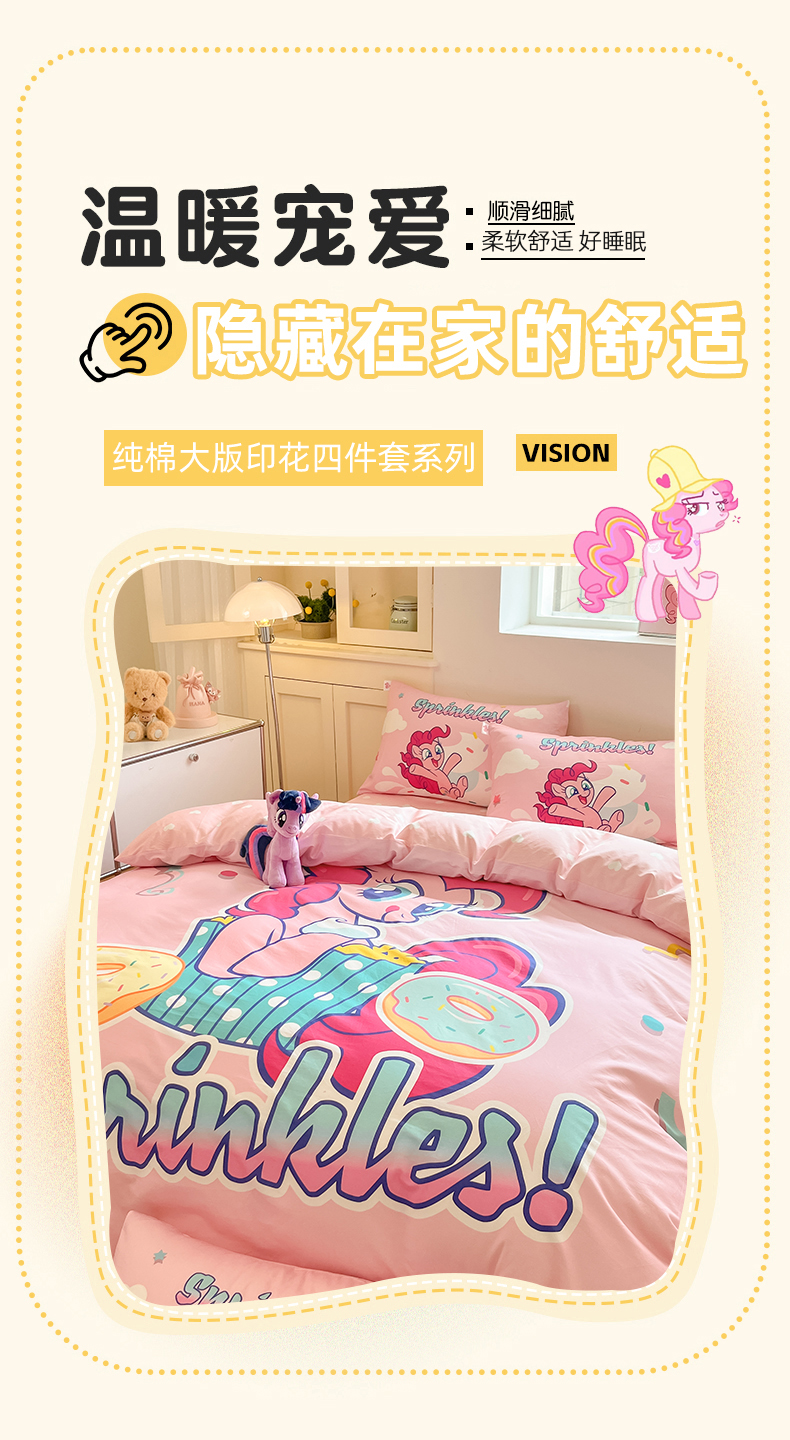 当前位置: 91家纺网 > 商品网购 > 床品套件 > 四件套 > 全棉普通四件套 > 金爱家 2025新款纯棉大版数码印花系列四件套-小马宝莉 纯棉大版-甜甜圈碧琪
