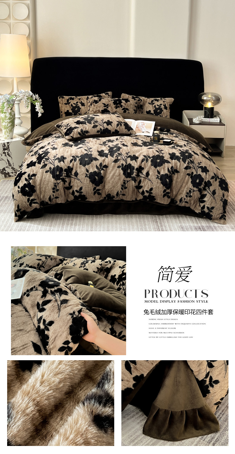 (总)米可 2025新款美拉德高克重兔毛绒牛奶绒四件套,简爱,蝶舞,法式豹纹,繁花,花海,幻蝶,盛放