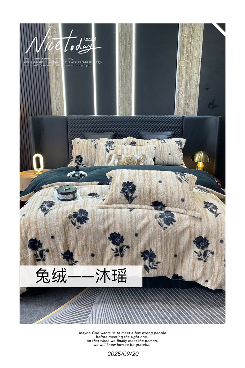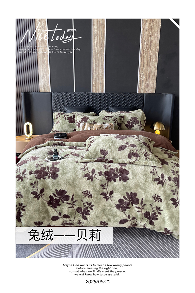 商品名称:莱豫家纺 2025新款秋冬加厚皮草级兔绒加牛奶绒四件套 蹀愫