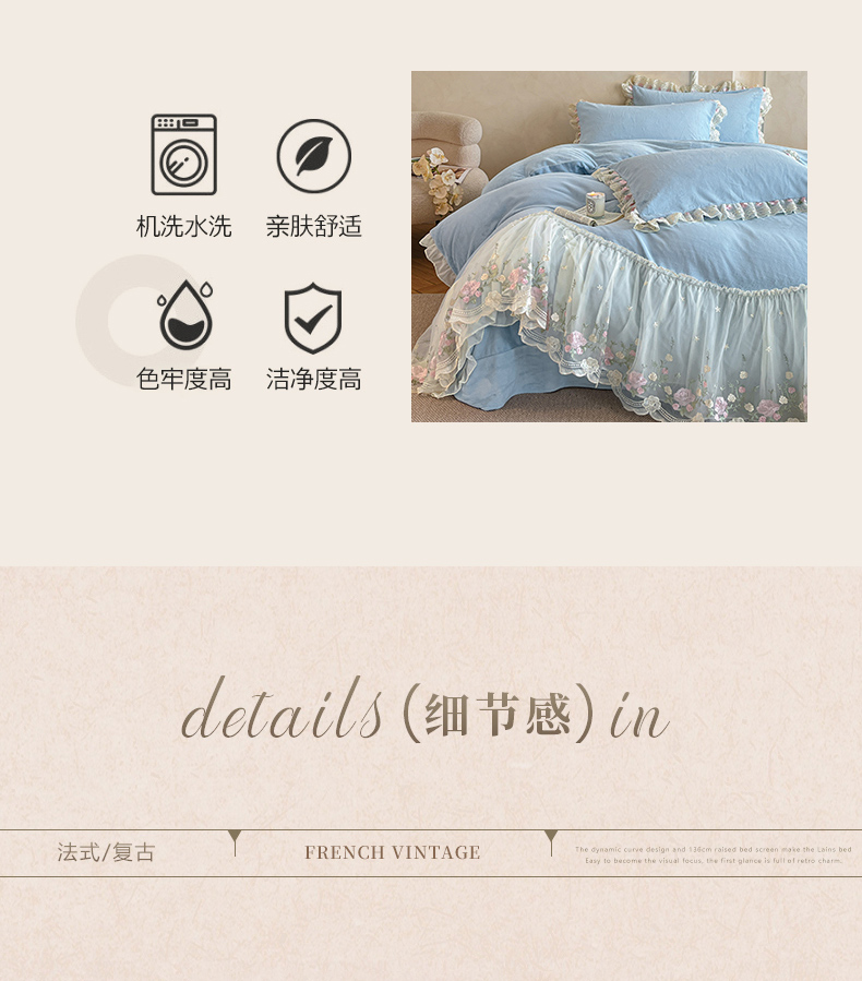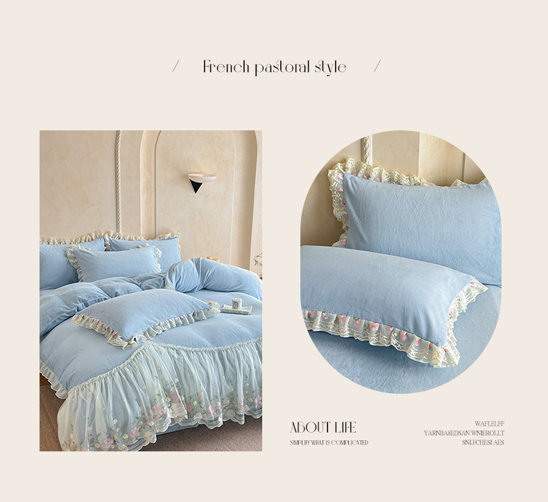 商品名称:绒掌柜 (总)2025新款消光级牛奶绒婴儿绒刺绣花边工艺款四件套(品质含买家秀)—巴黎系列 婴儿蓝