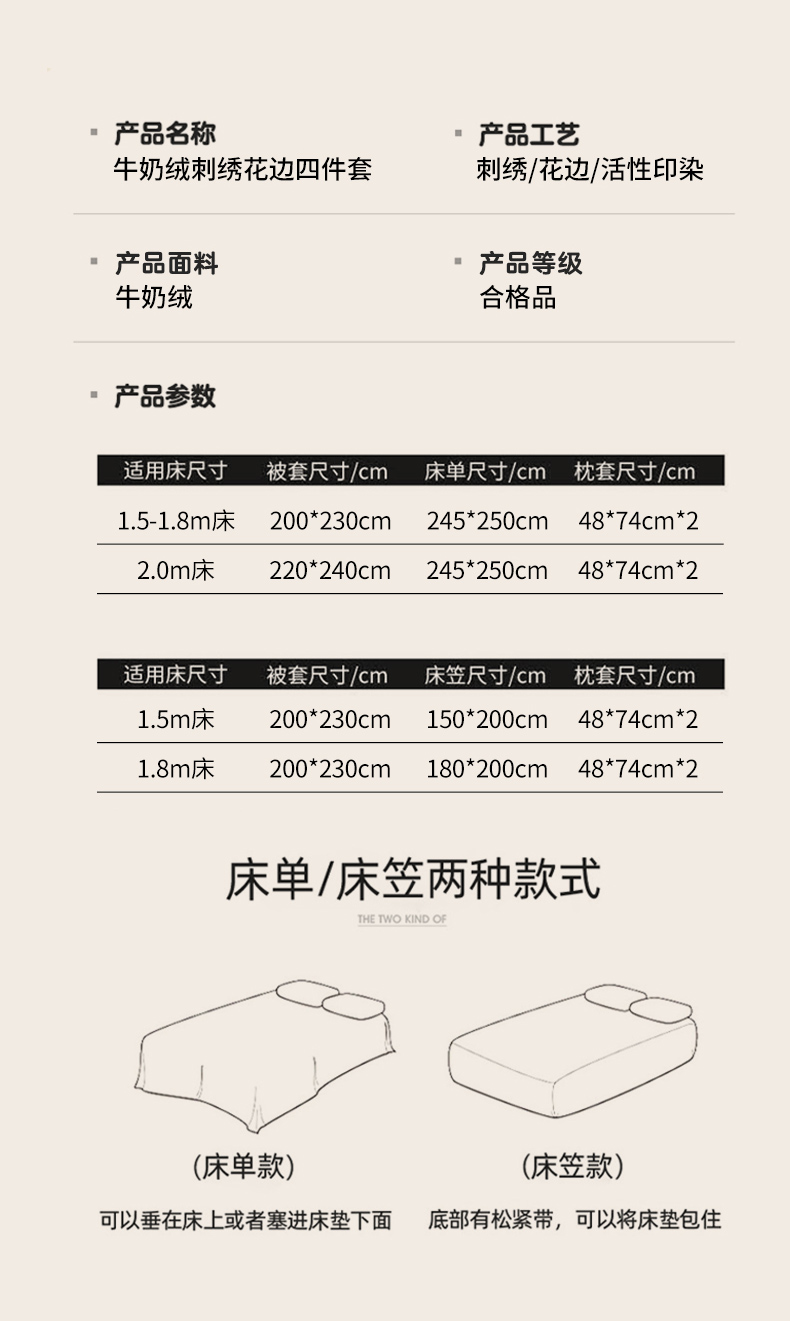 (总)绒掌柜 2025新款冬季消光级柔滑细腻刺绣牛奶绒四件套(品质版权有买家秀)—清悦系列,绅士灰,豆沙,玉颜粉,优雅紫,香槟,奶昔白,天水蓝,宾利蓝