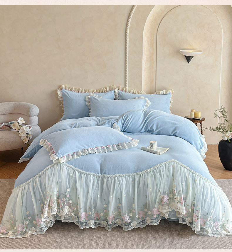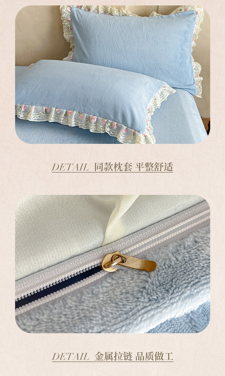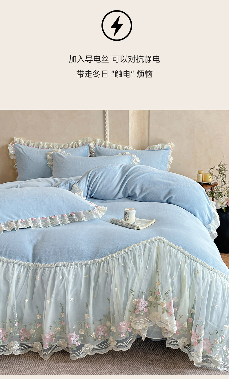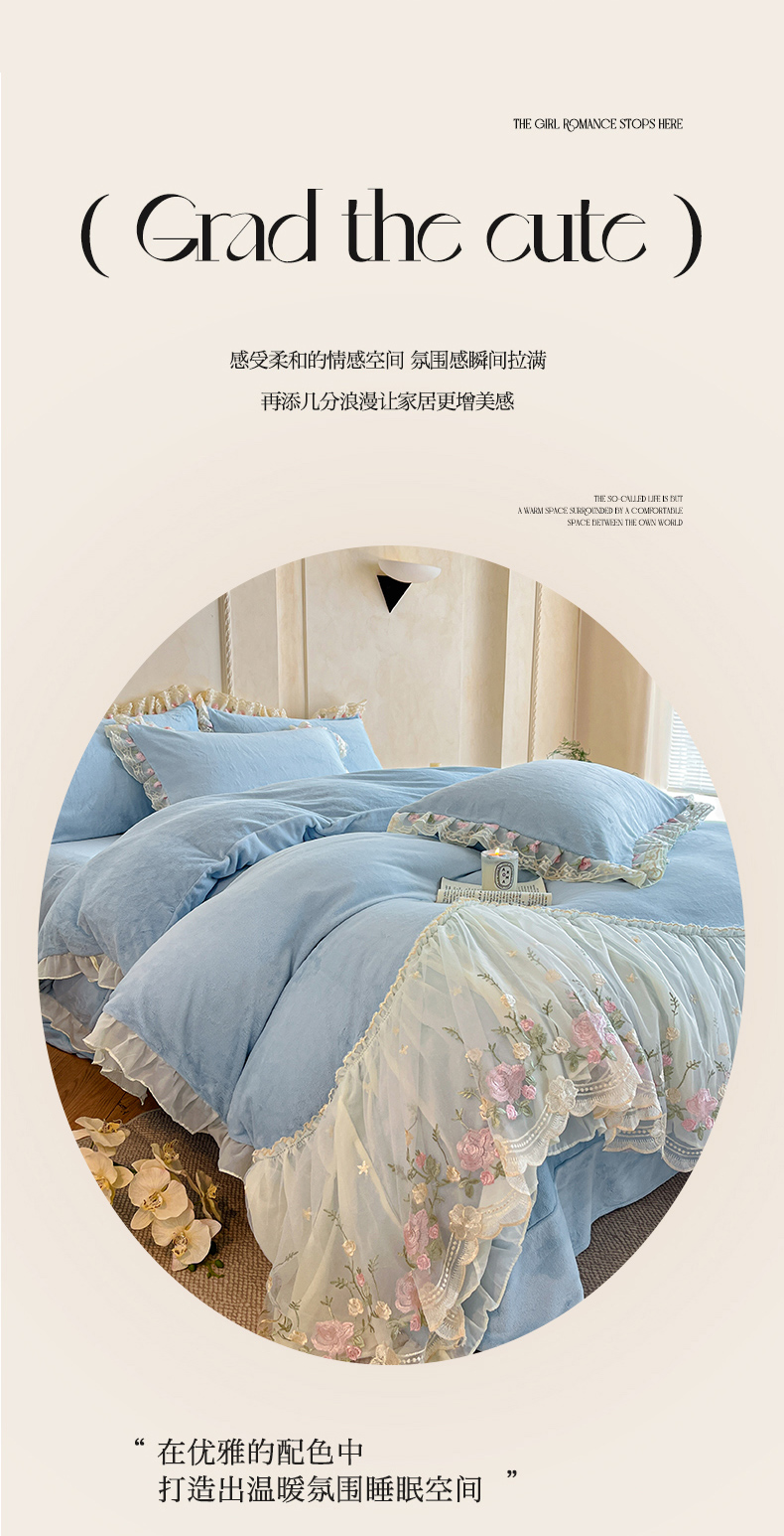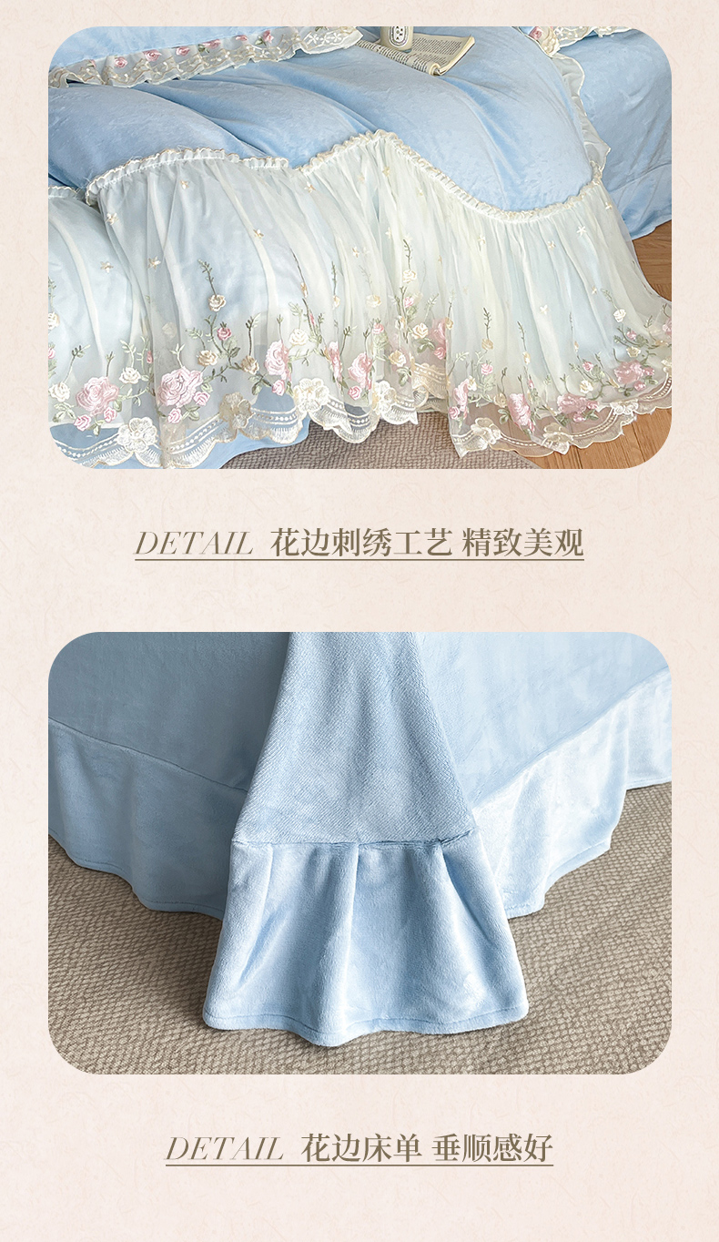 绒掌柜 (总)2025新款消光级牛奶绒婴儿绒刺绣花边工艺款四件套(品质含买家秀)—巴黎系列 婴儿蓝