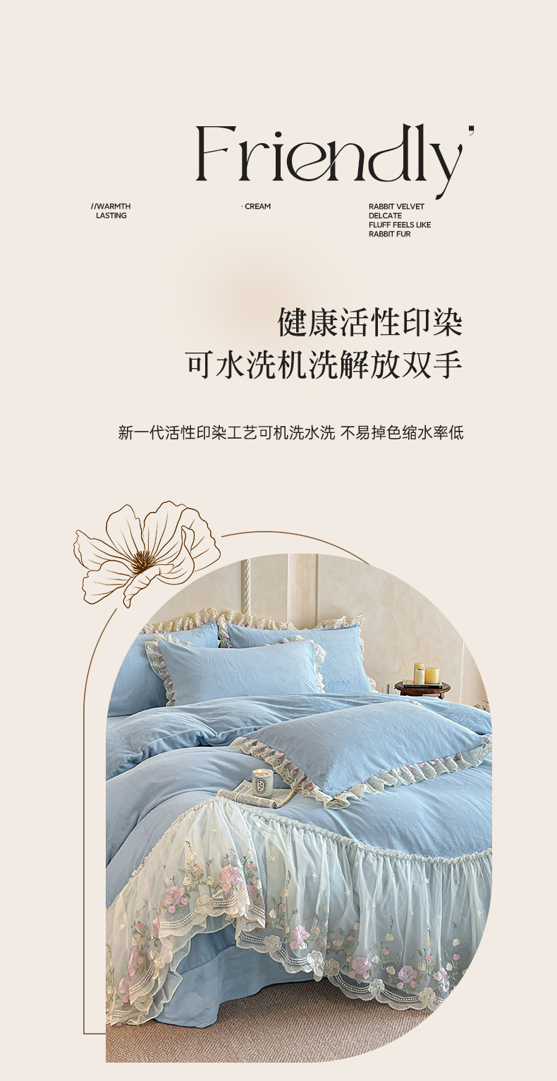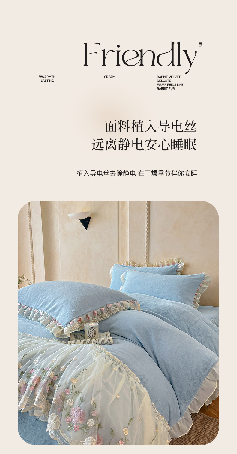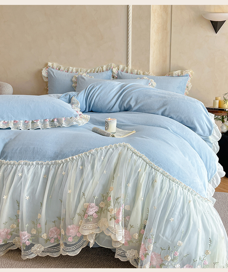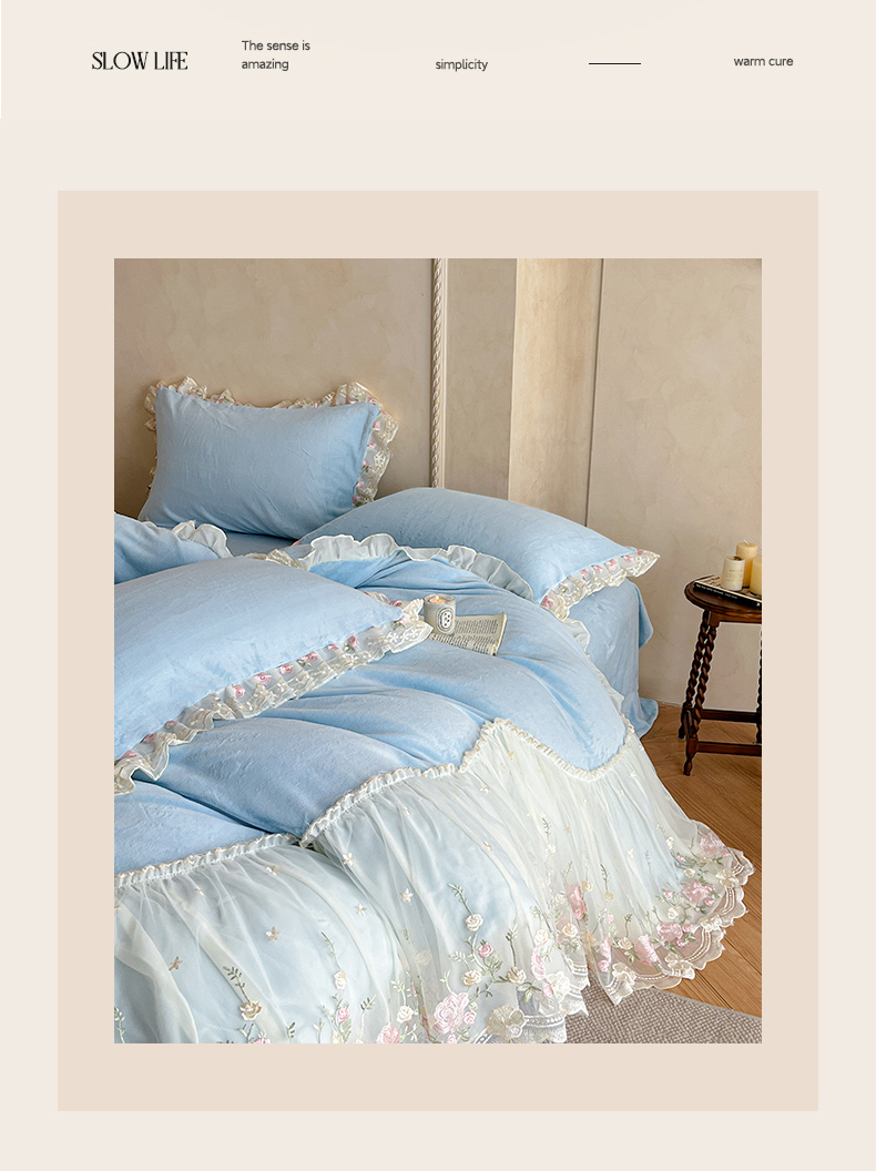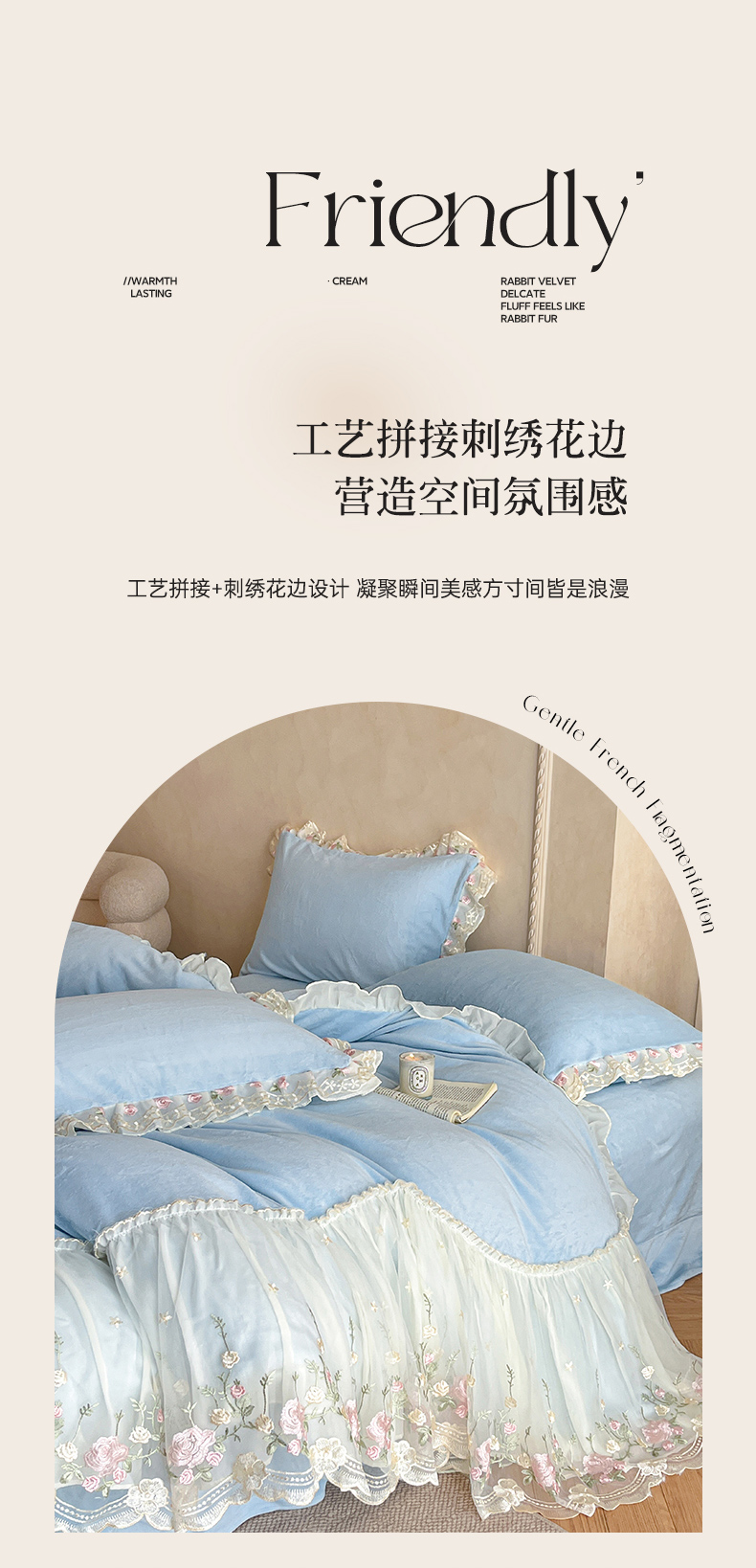 绒掌柜 (总)2025新款消光级牛奶绒婴儿绒刺绣花边工艺款四件套(品质含买家秀)—巴黎系列 婴儿蓝