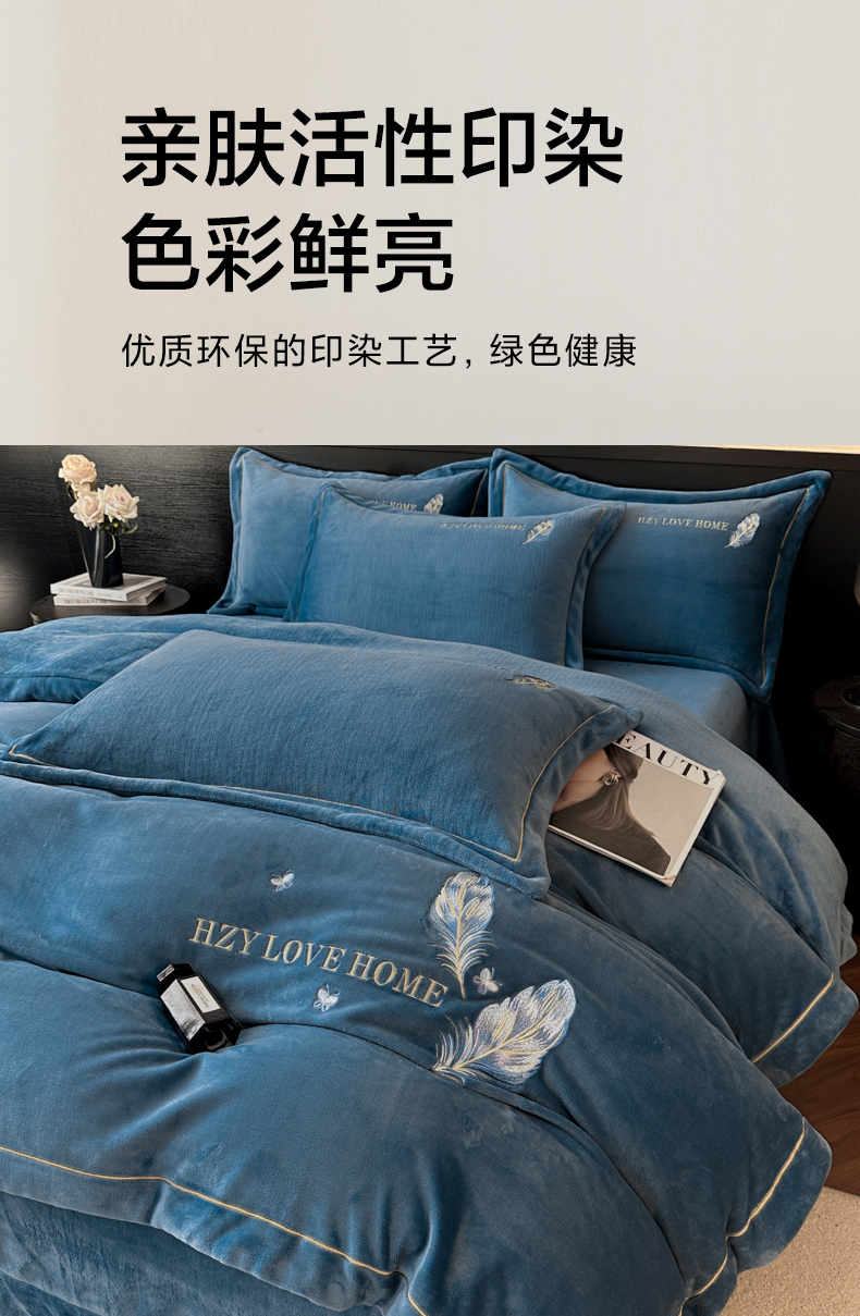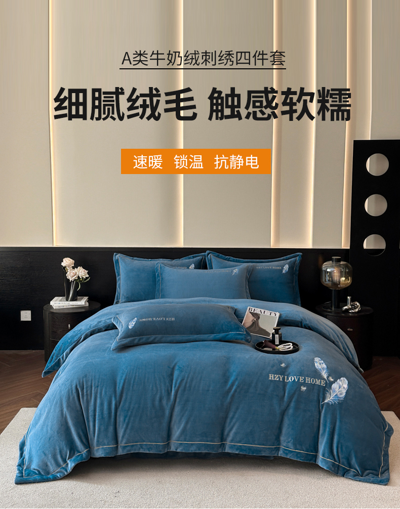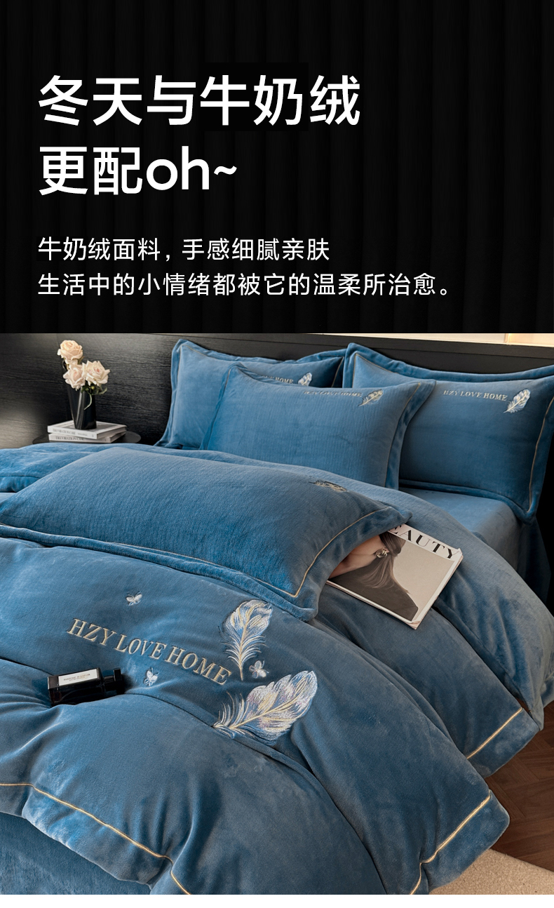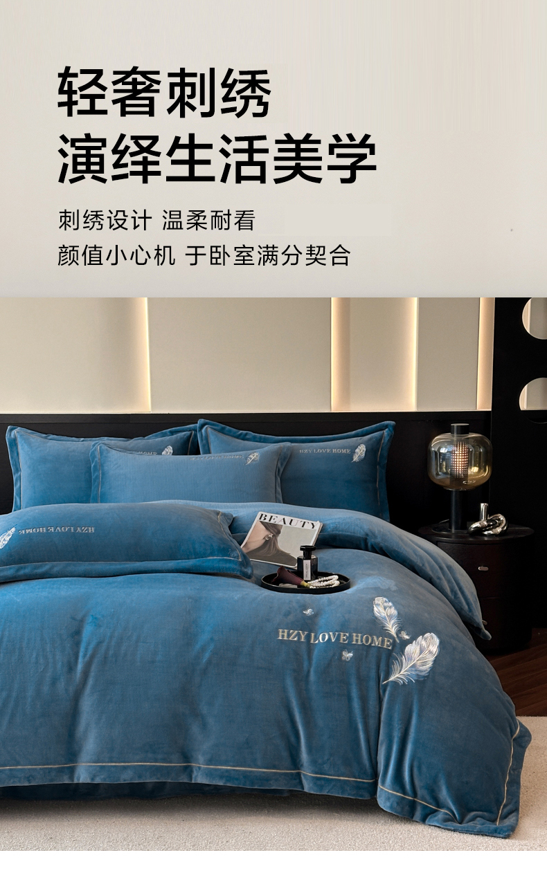 (总)鸿织源家纺 2025新款230g全消光牛奶绒刺绣四件套,宾利蓝,伯爵玉,罗兰灰,奶昔白,赛琳绿,相思咖,豆沙,摩卡棕