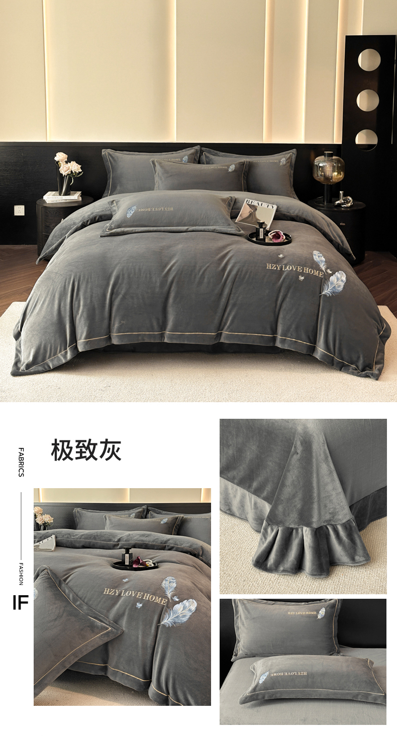 (总)鸿织源家纺 2025新款牛奶绒刺绣四件套-羽蝶,羽蝶-奶昔白+奶咖,羽蝶-宾利兰,羽蝶-豆沙色,羽蝶-极致灰,羽蝶-焦糖色,羽蝶-奶咖,羽蝶-玉色