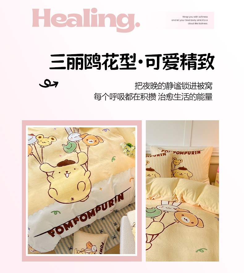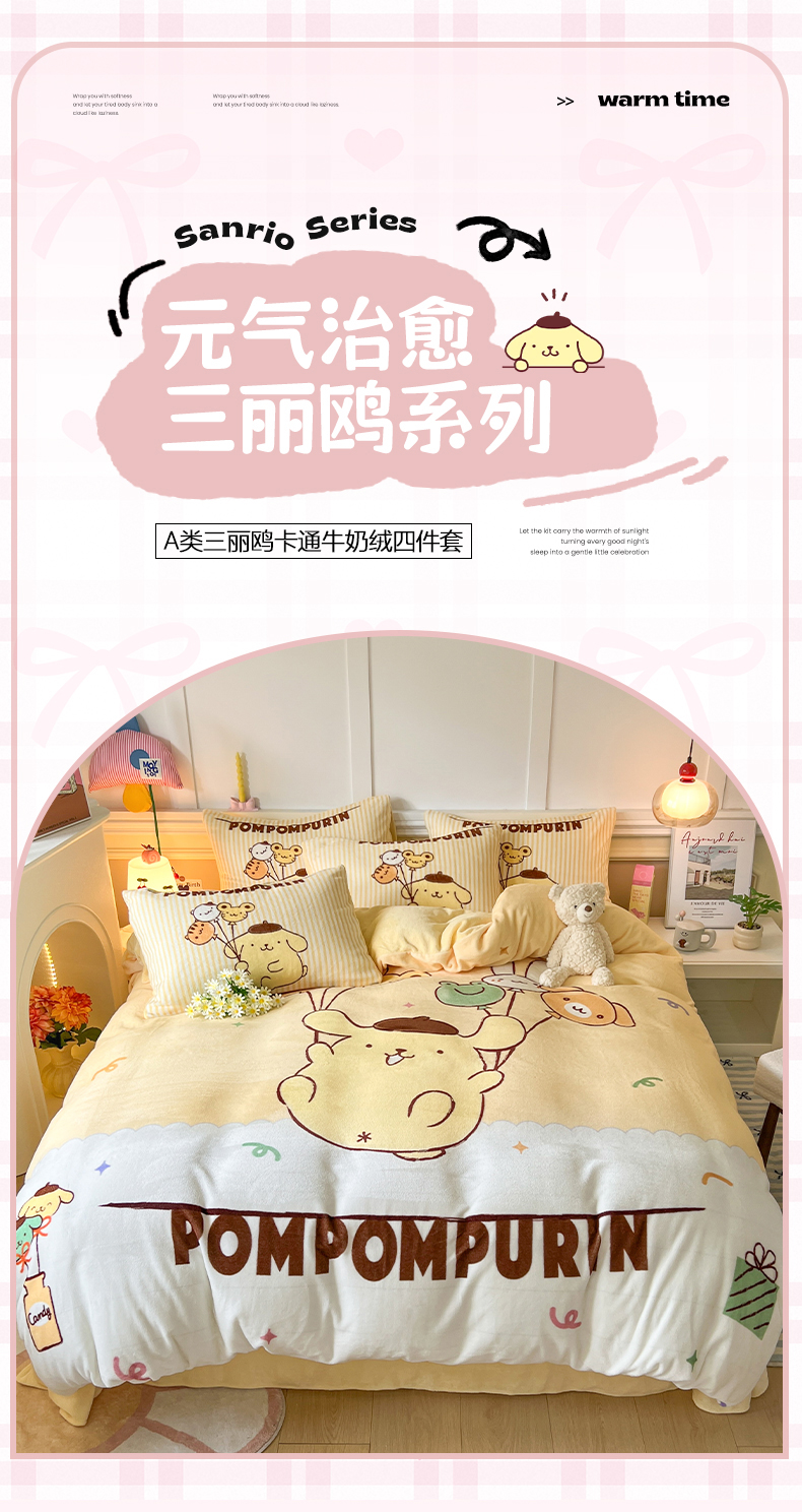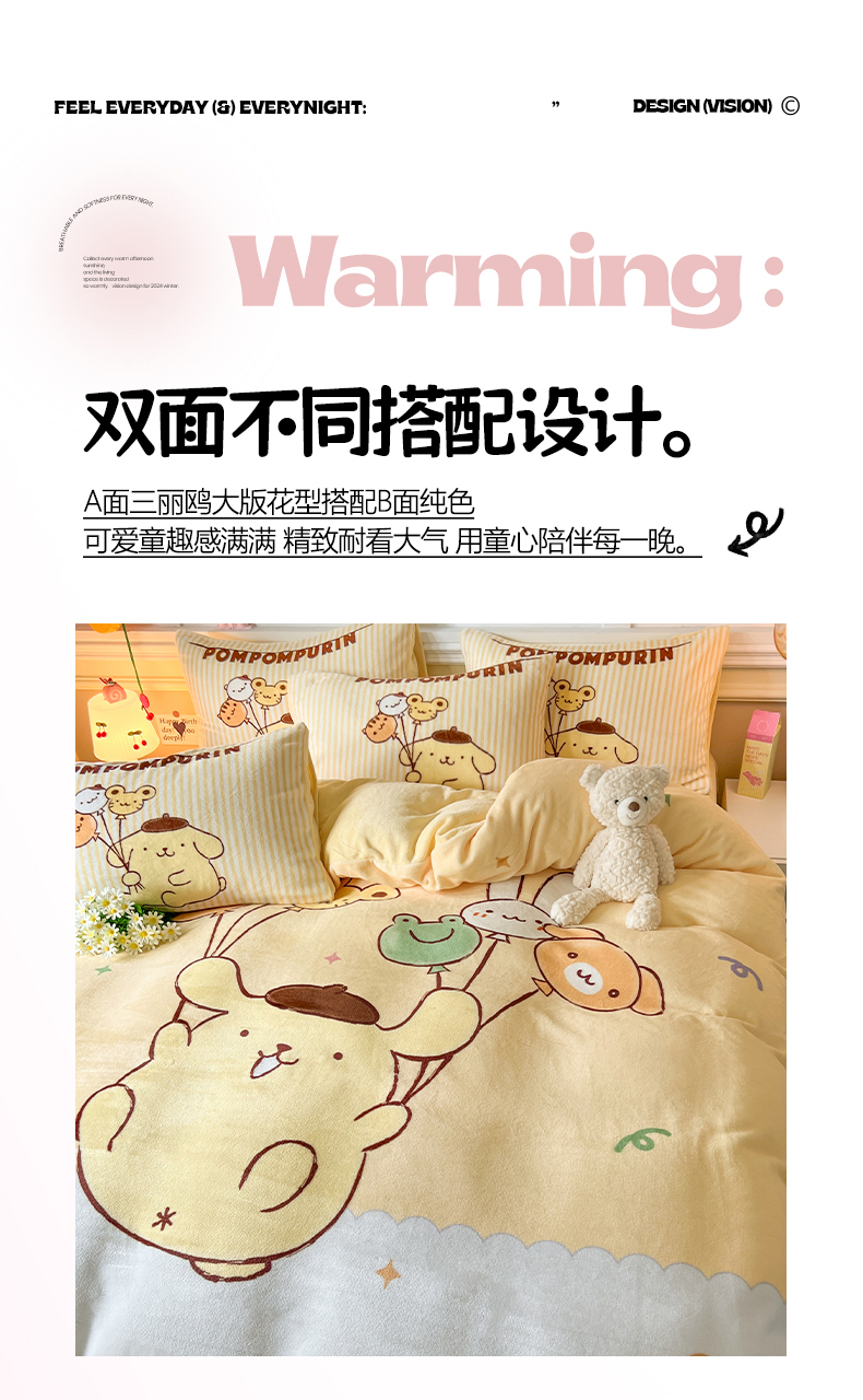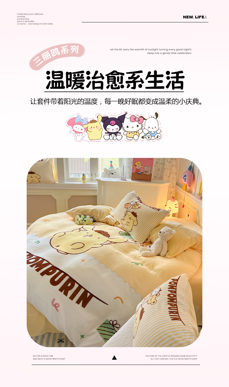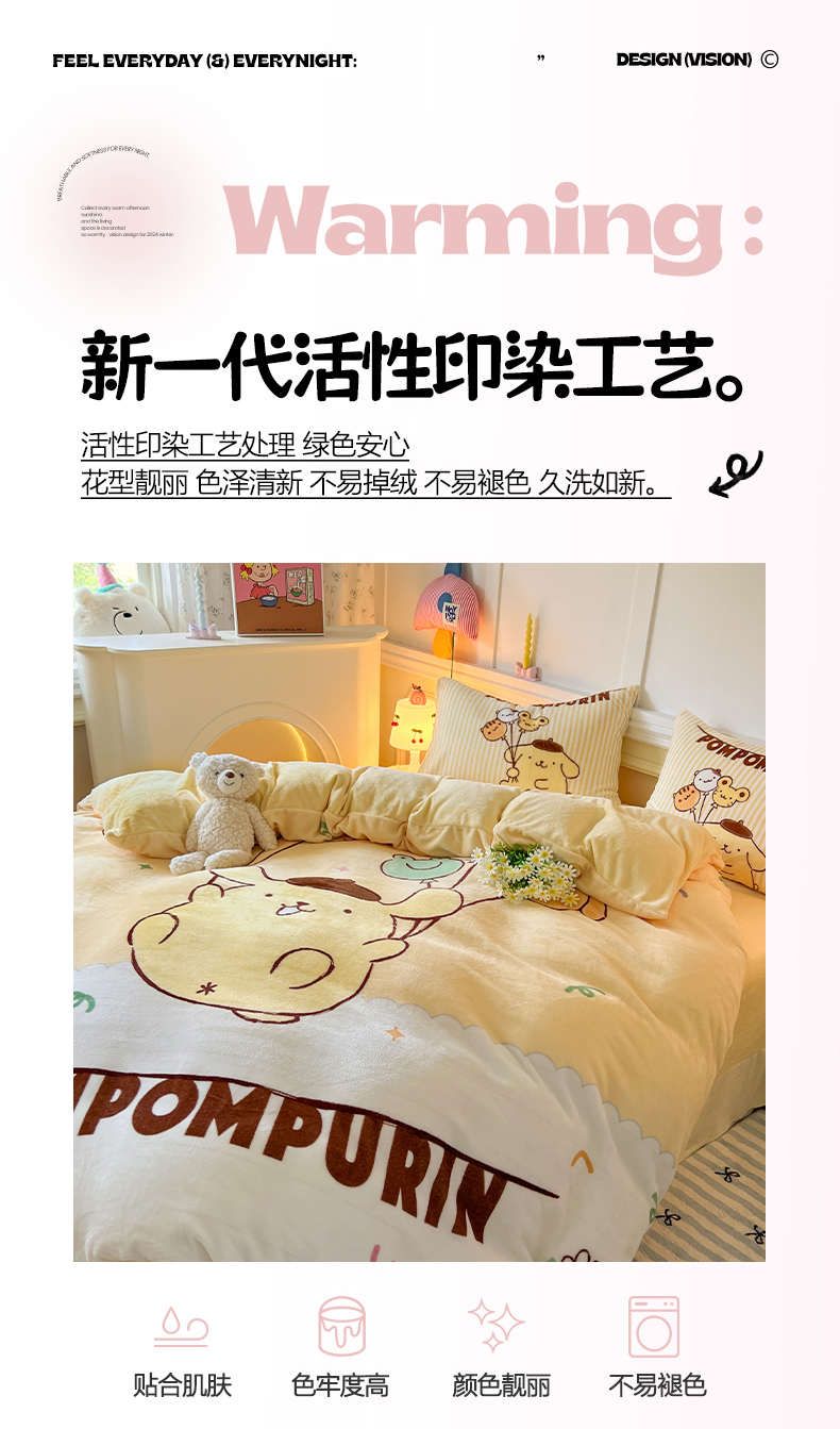 当前位置: 91家纺网 > 商品网购 > 床品套件 > 四件套 > 牛奶绒四件套 > 妖妖家纺 2025新款高克重牛奶绒三丽鸥大版四件套 开心布丁狗