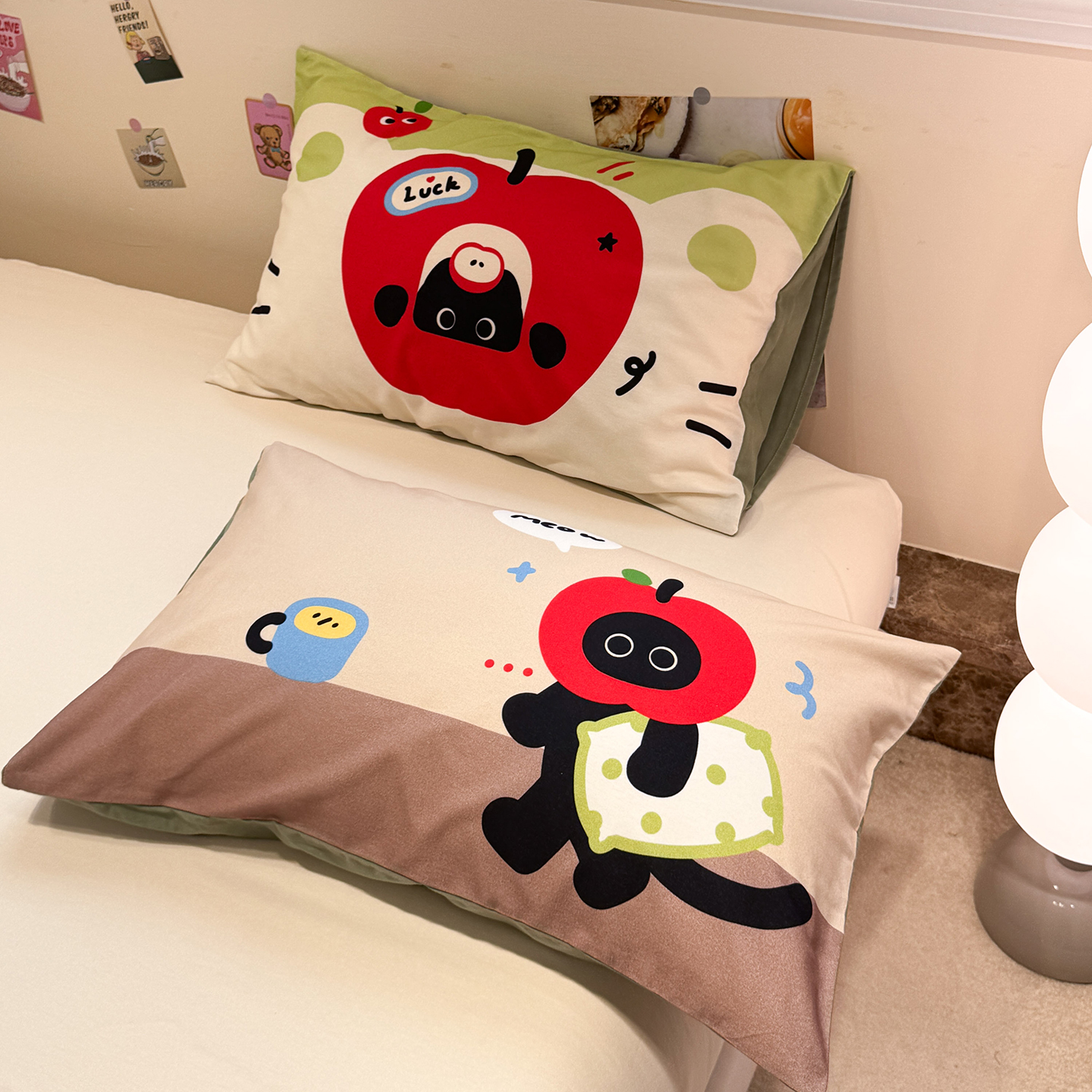 珺柔家纺 2025新款全棉磨毛数码印花枕套 樱桃小熊