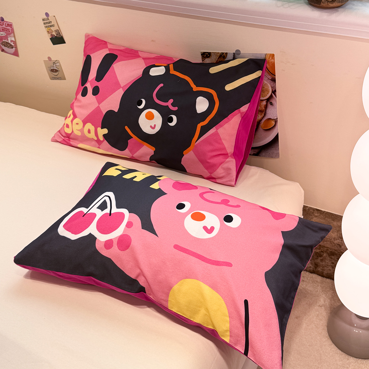 商品名称:珺柔家纺 2025新款全棉磨毛数码印花枕套 樱桃小熊