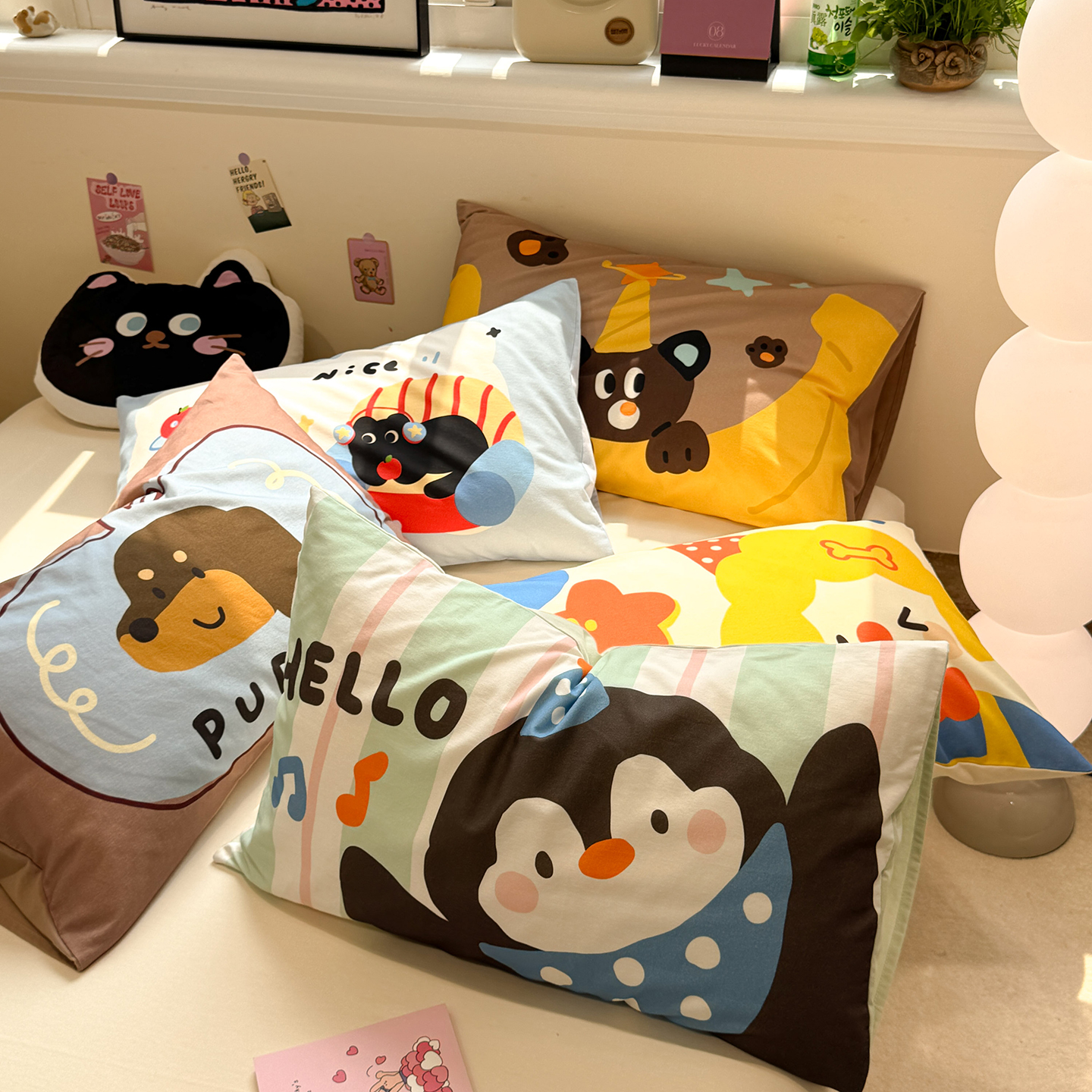 (总)珺柔家纺 2025新款全棉磨毛数码印花枕套,海底世界,马上发财,苹果小小猫,圣诞小丑,香蕉熊,音乐企鹅,樱桃小熊,puppy狗,组合图仅供展示