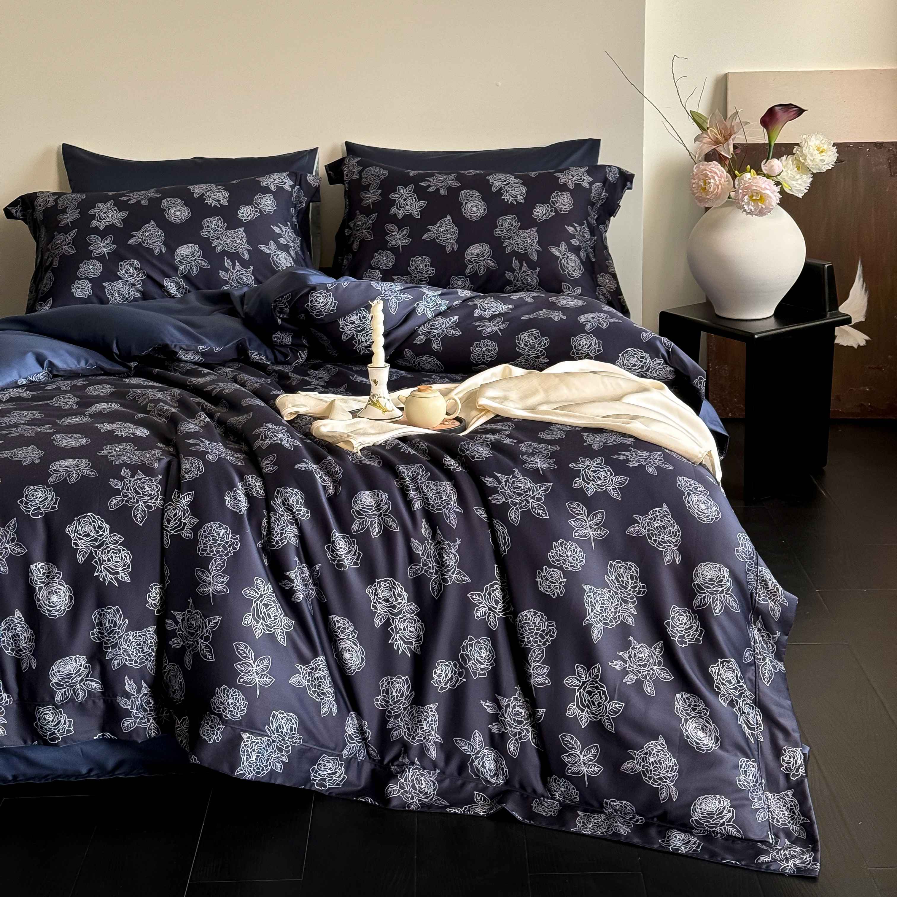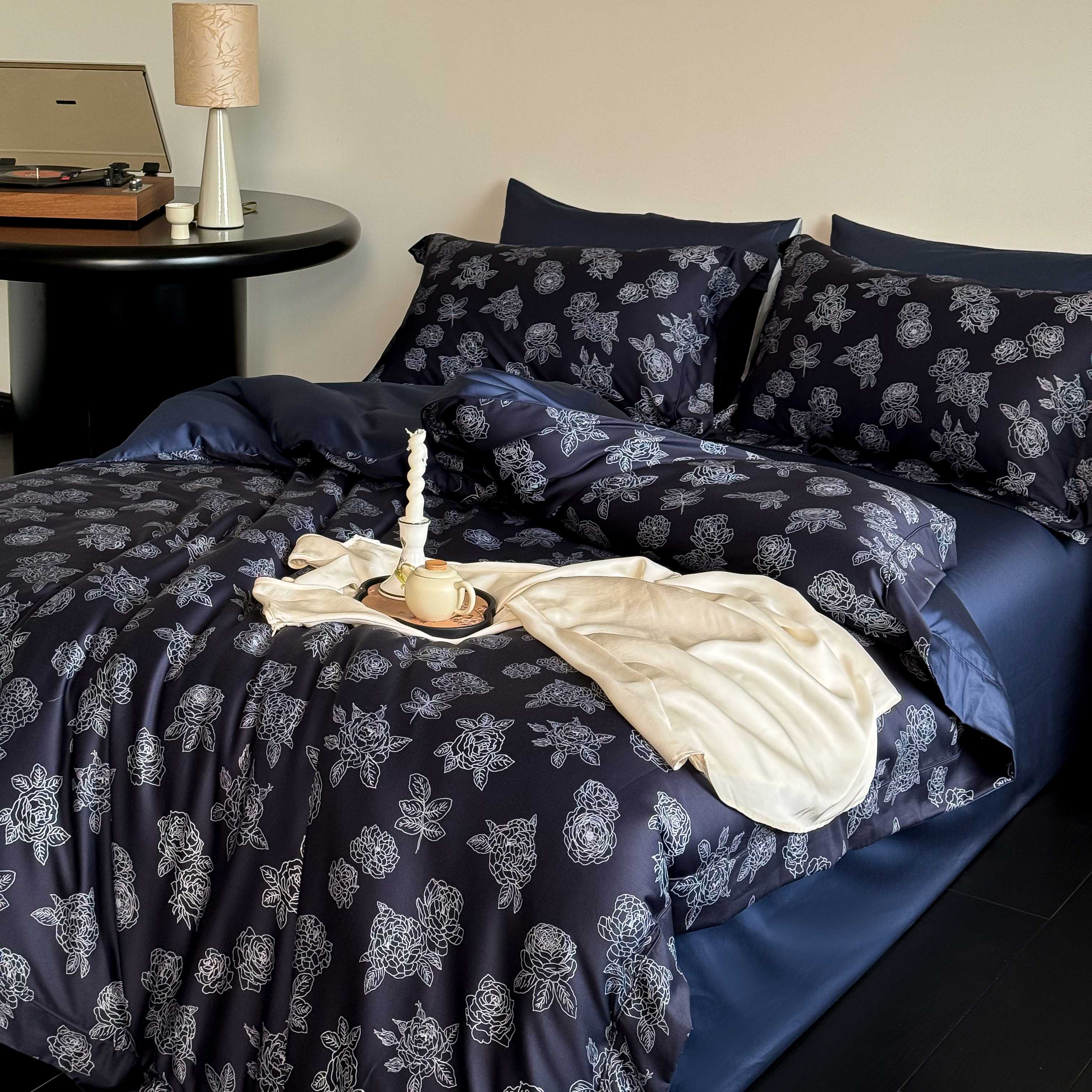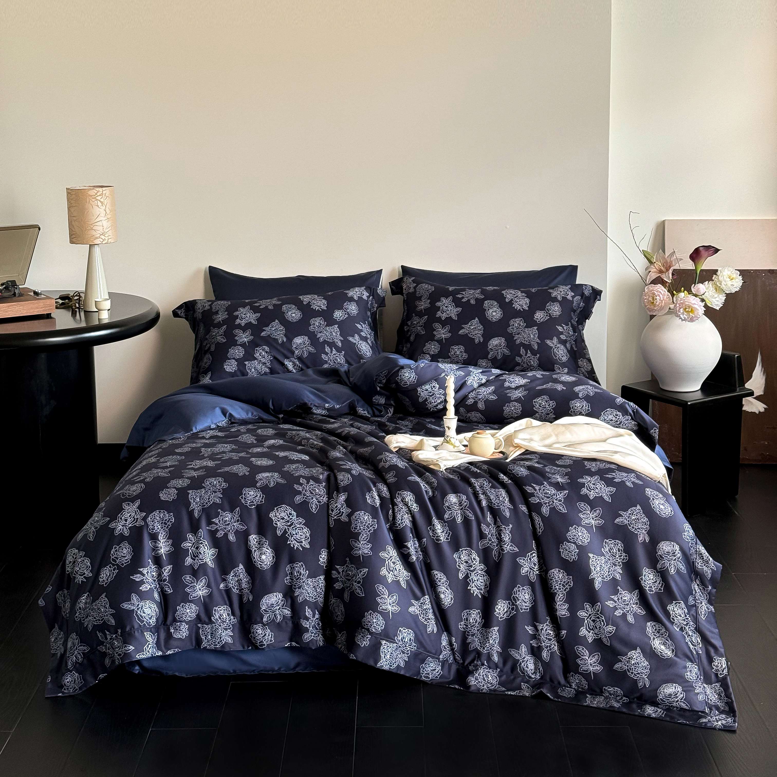 (总)窝米 2025新款数码印花100支长绒棉纯棉工艺花边款四件套-晚意,晚意