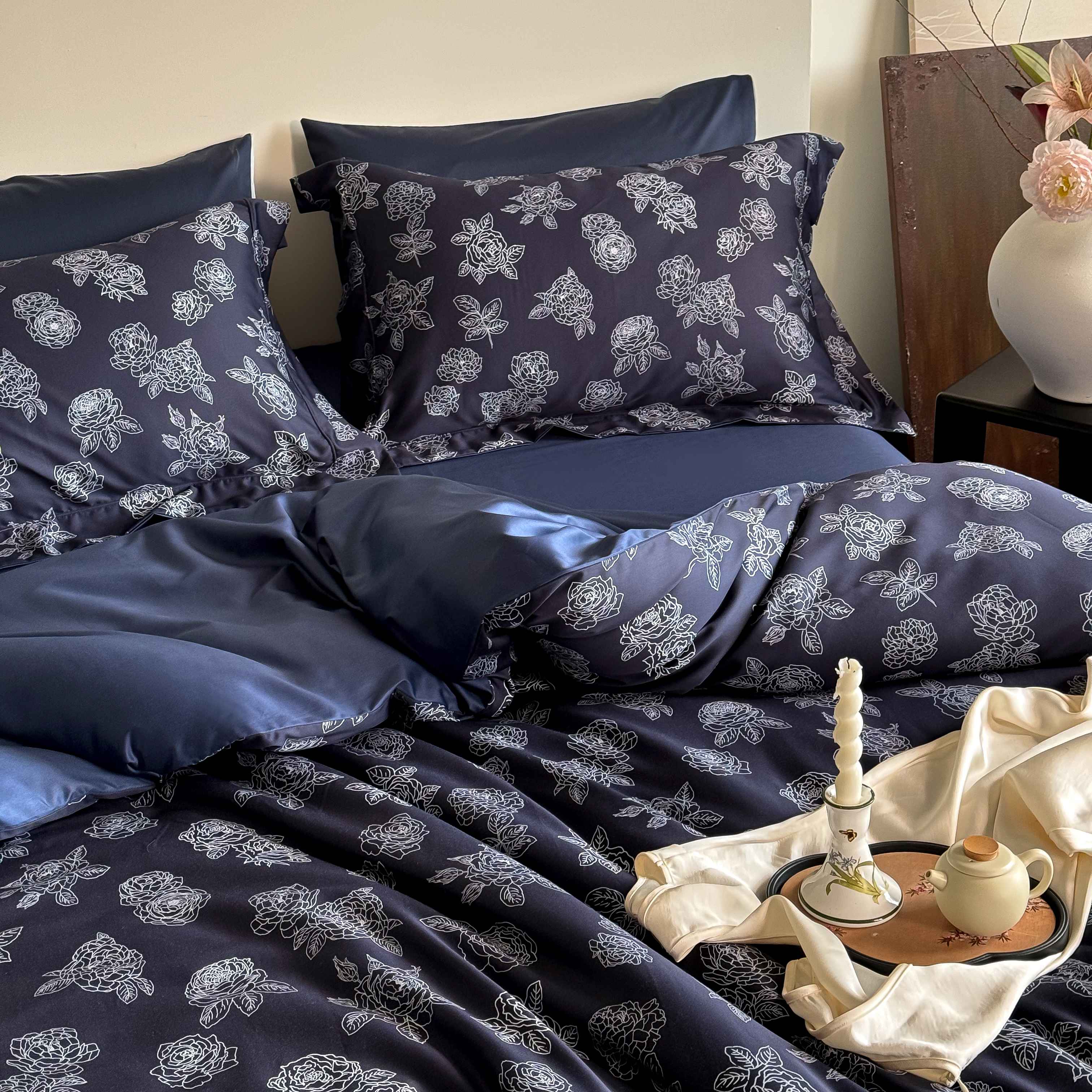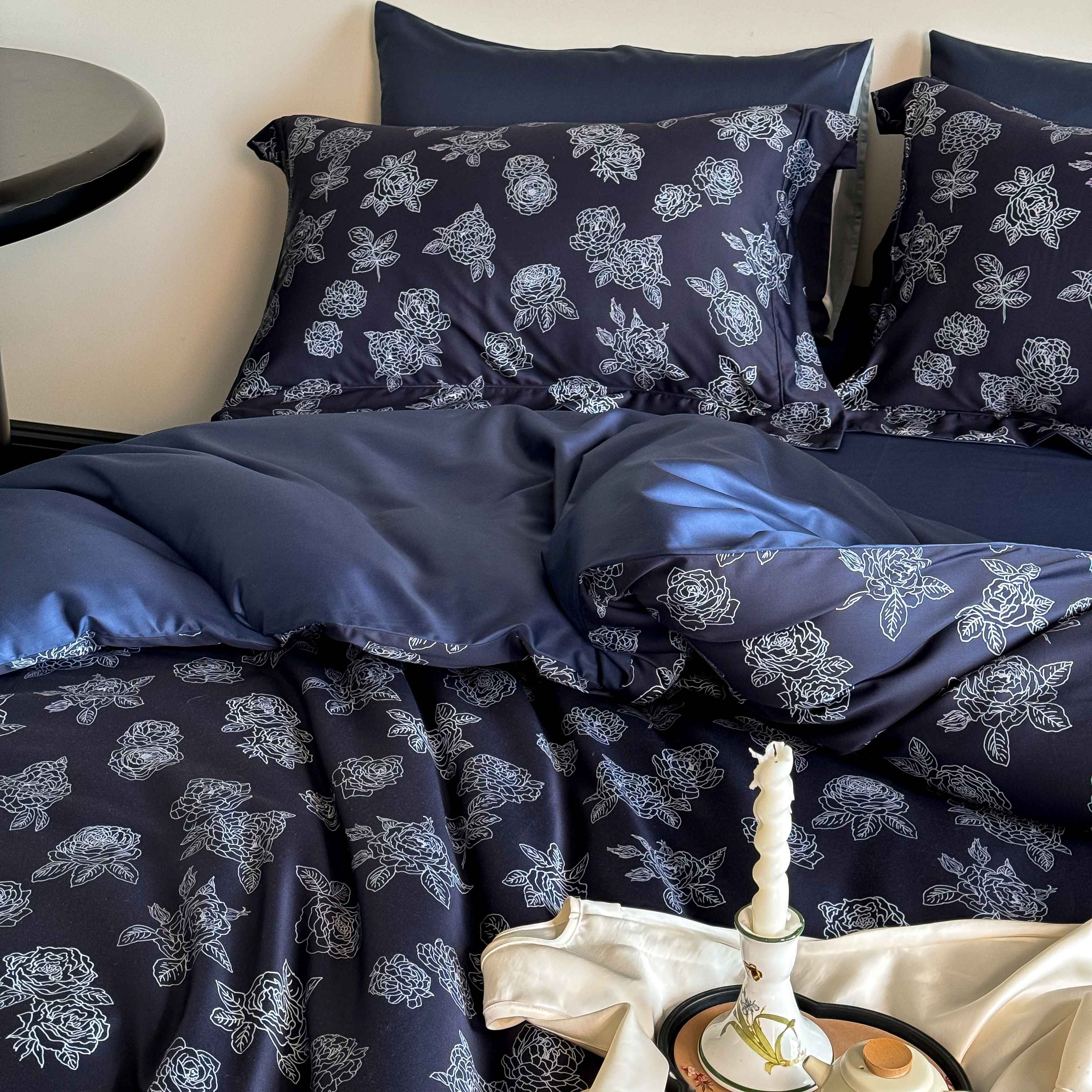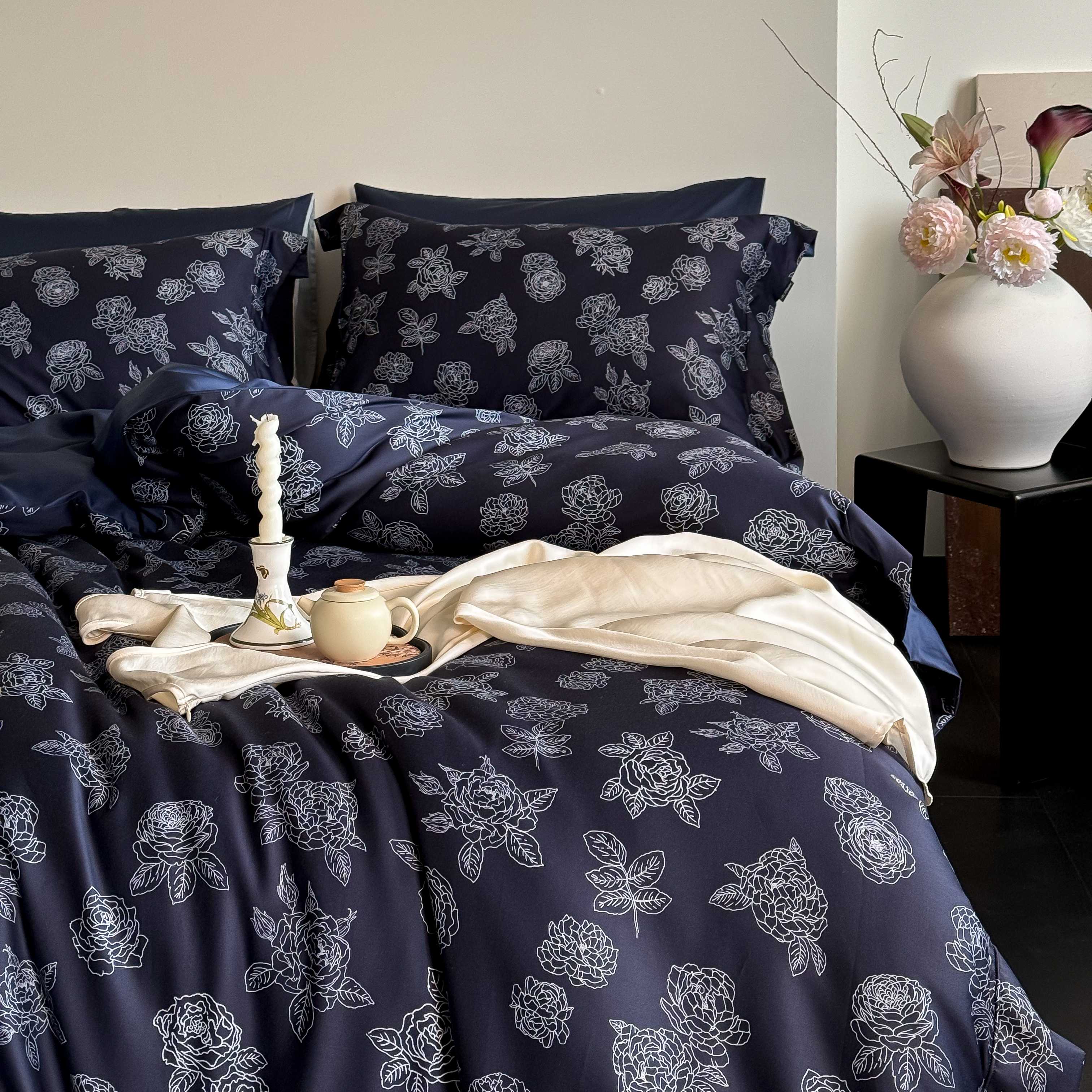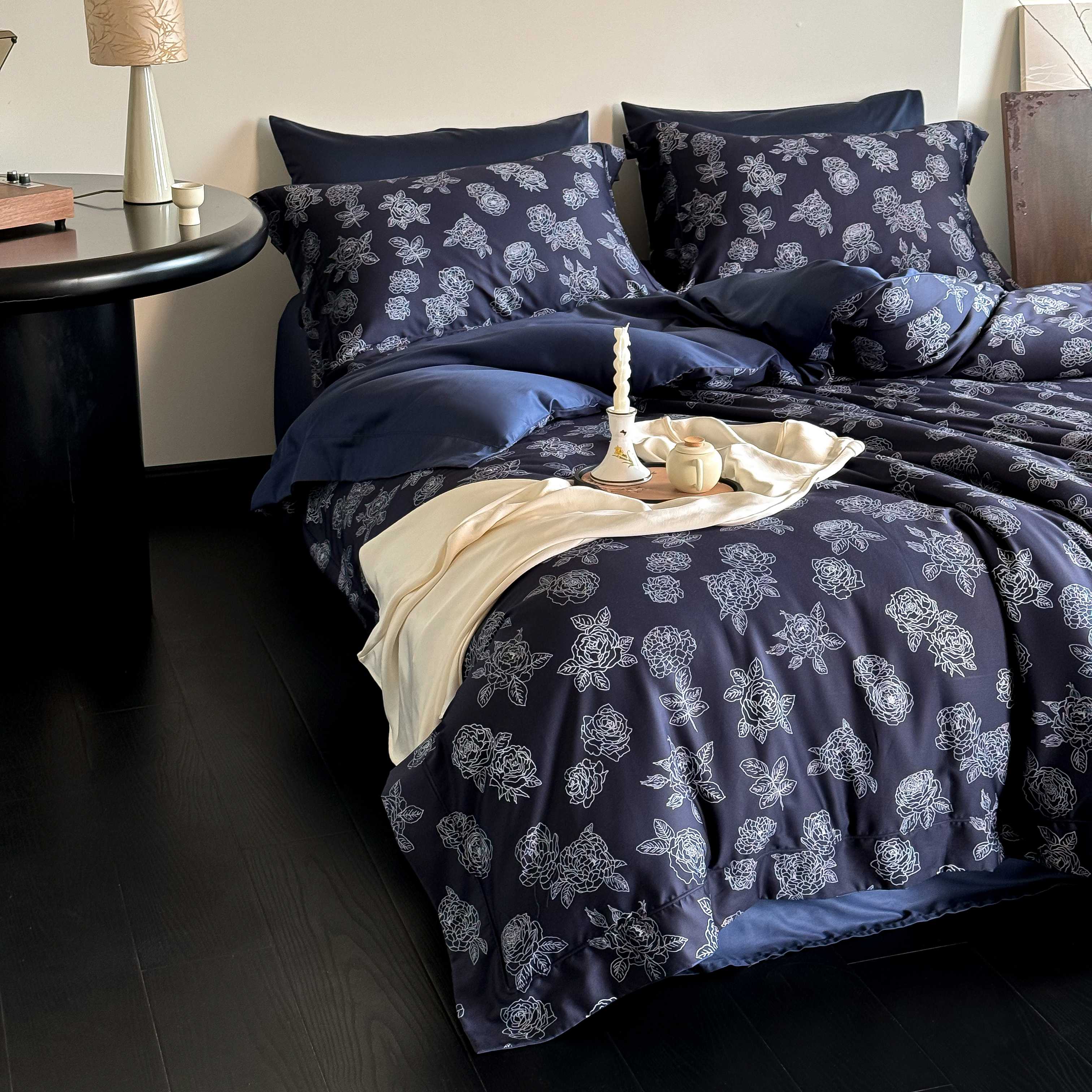 (总)窝米 2025新款数码印花100支长绒棉纯棉工艺花边款四件套-晚意,晚意
