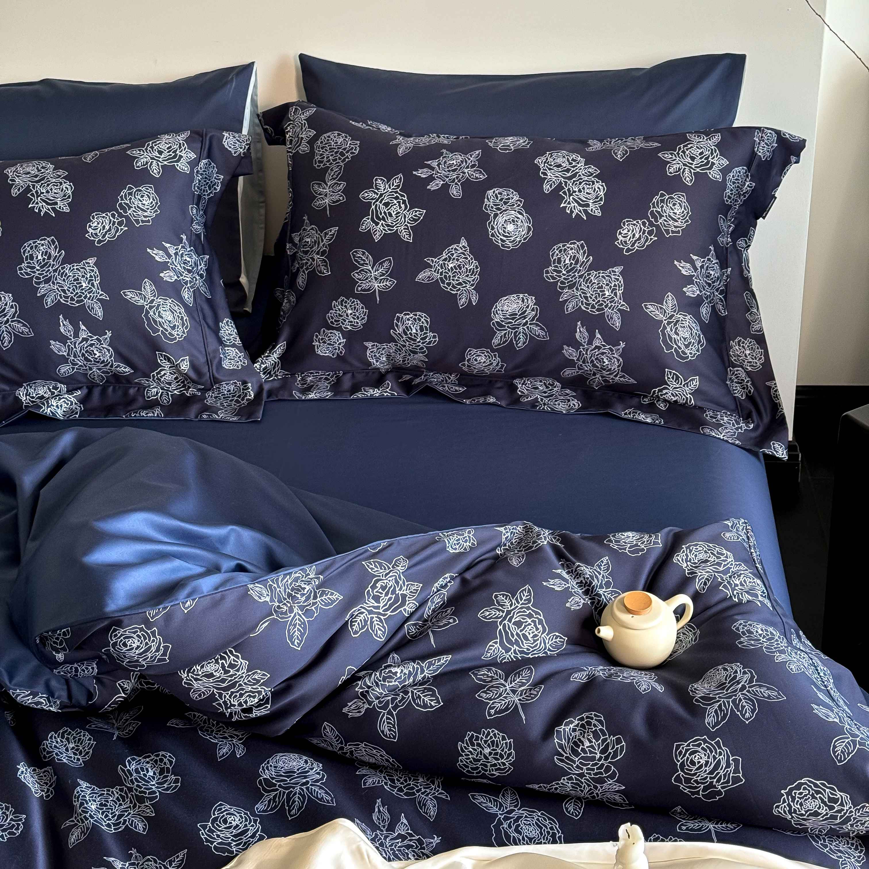(总)窝米 2025新款数码印花100支长绒棉纯棉工艺花边款四件套-青花瓷