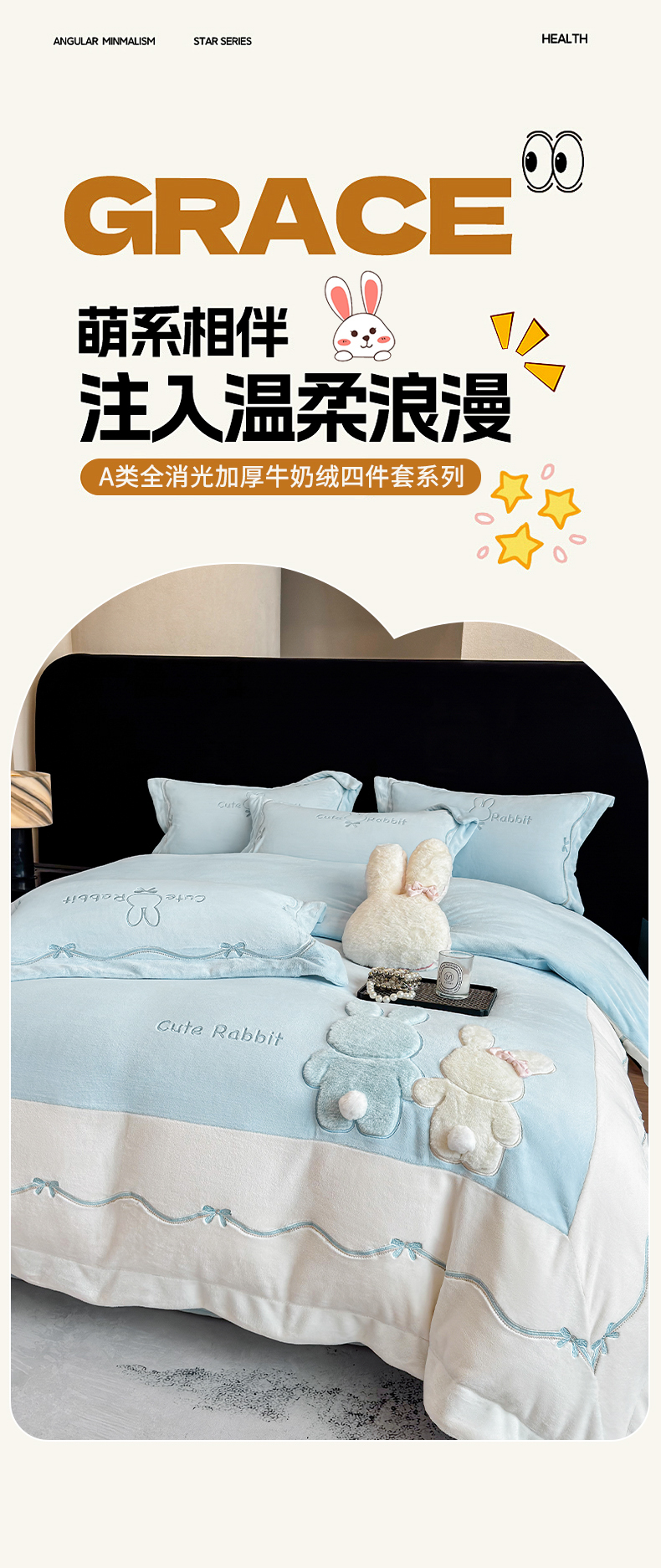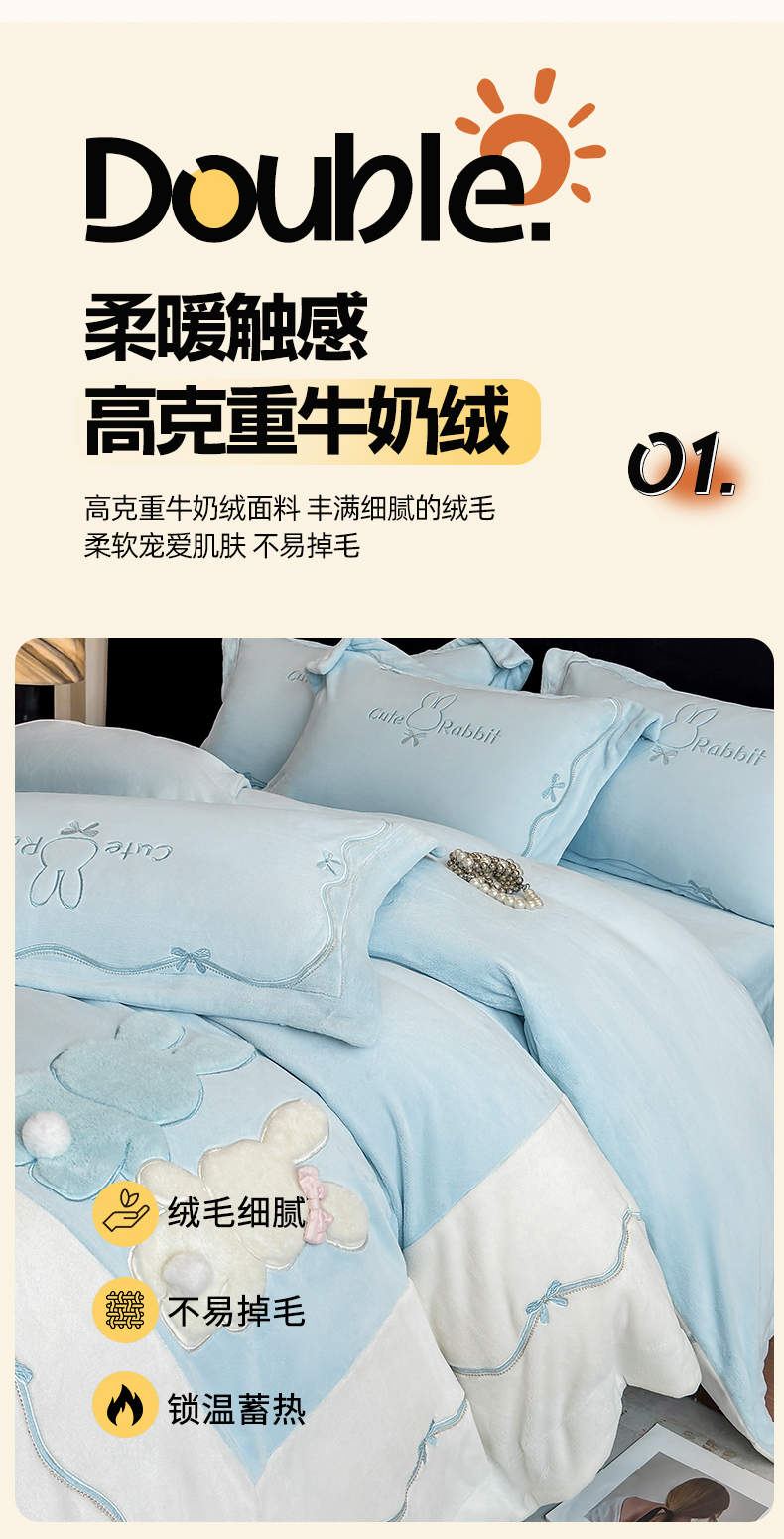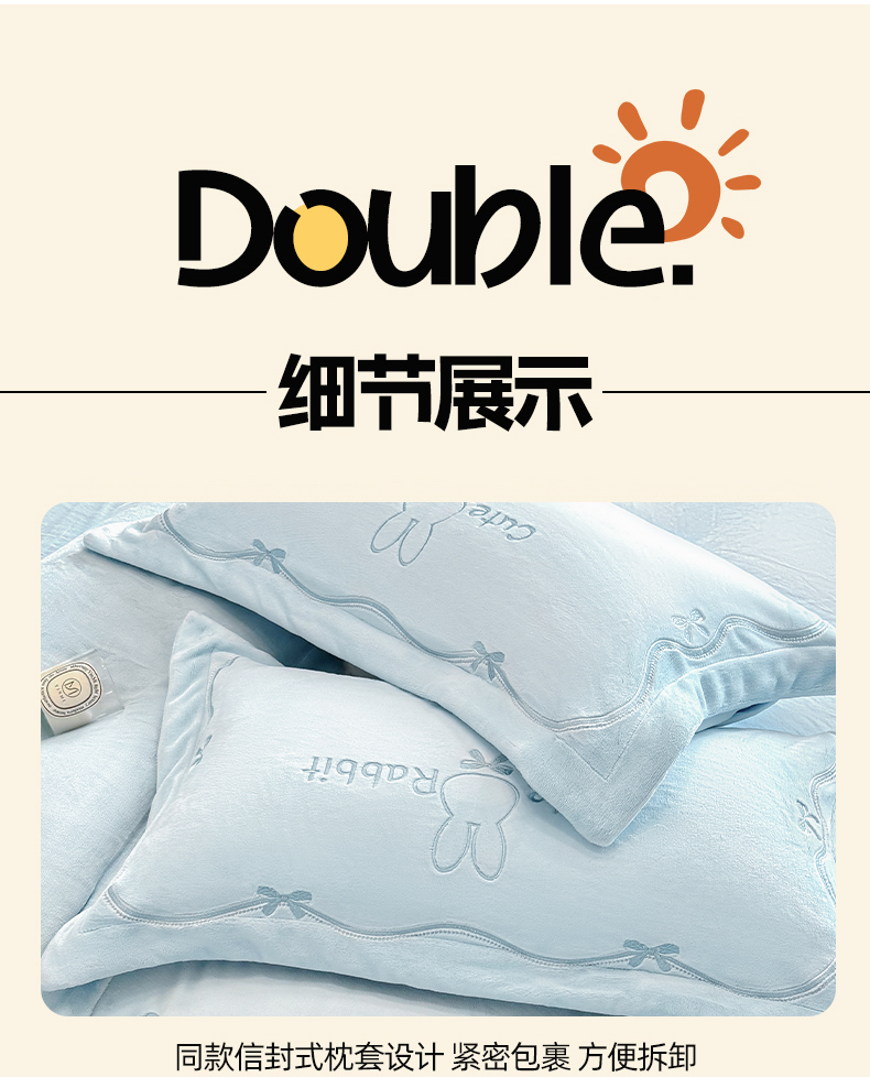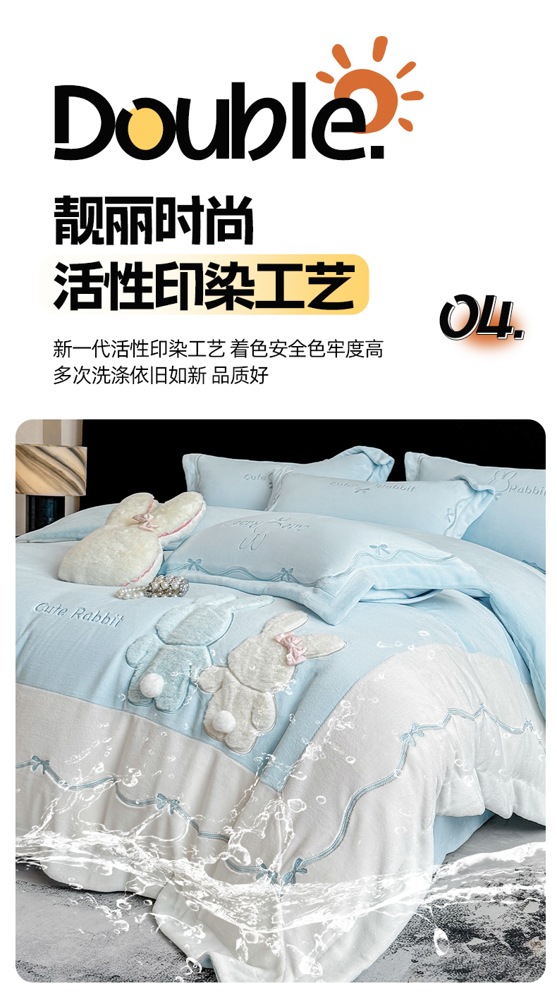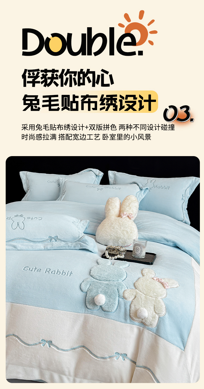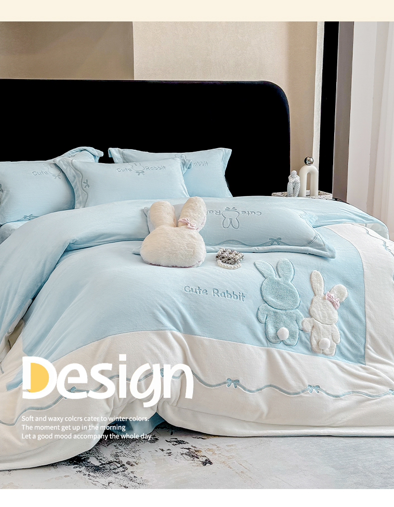当前位置: 91家纺网 > 商品网购 > 床品套件 > 四件套 > 牛奶绒四件套 > 丞音家纺 2025新款卡通少女风A类230克全工艺全消光刺绣加厚牛奶绒四件套珊瑚绒绣花被套三件套高档包装 绒两小无猜-蓝拼白