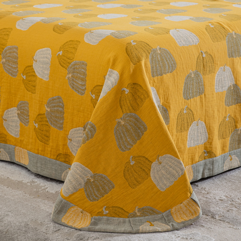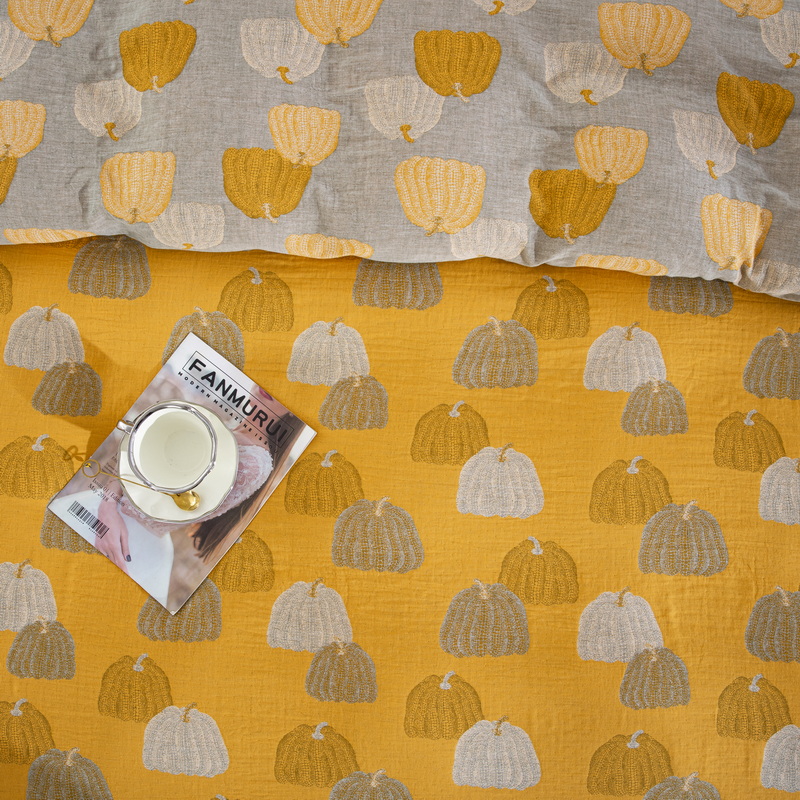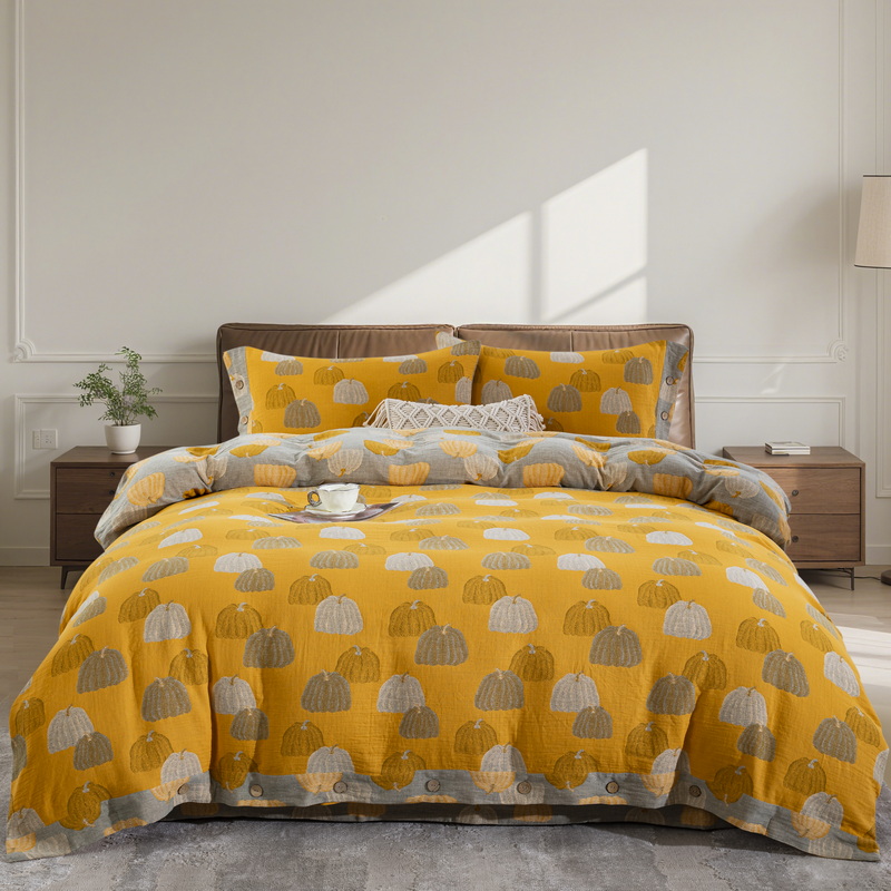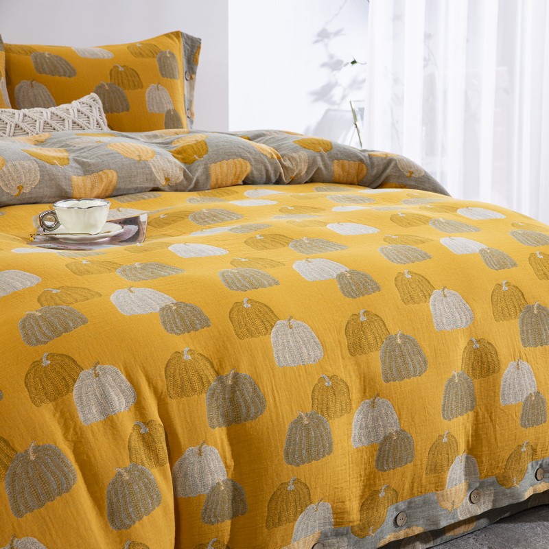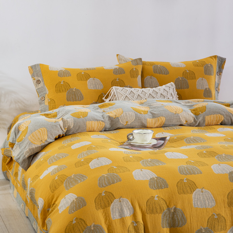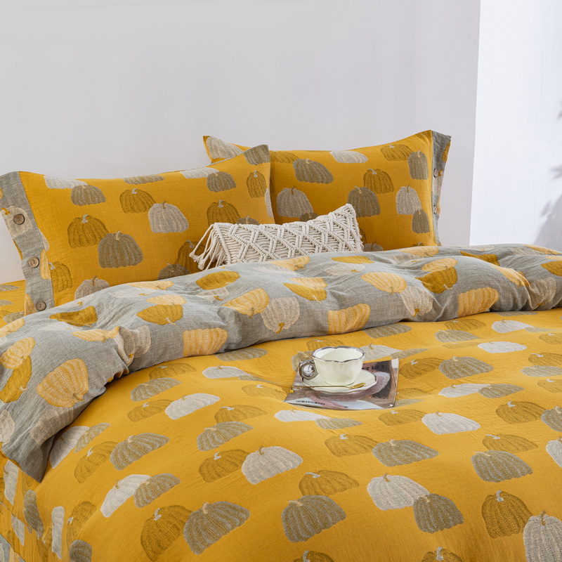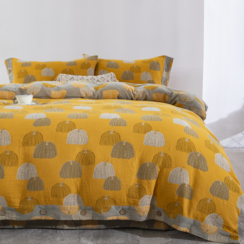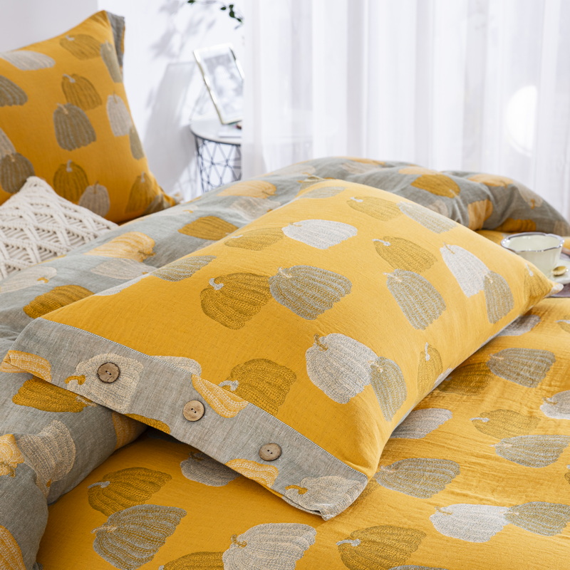 鲁爱 2025新款全棉色织双层纱纽扣款四件套 南瓜-黄
