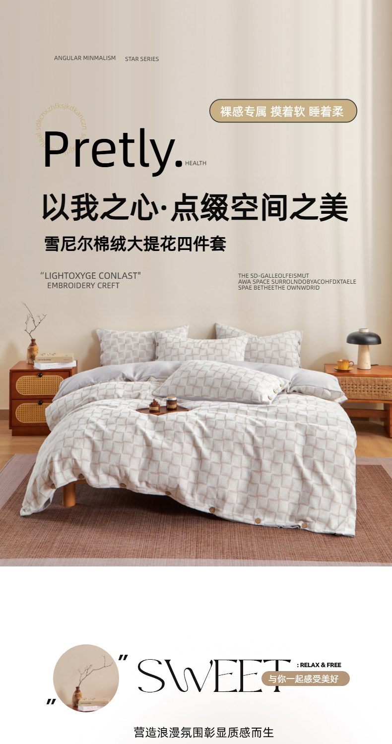 当前位置: 91家纺网 > 商品网购 > 床品套件 > 四件套 > 其它四件套 > 润肤居 2025新款雪尼尔棉绒大提花四件套 洛西雅-橡树棕