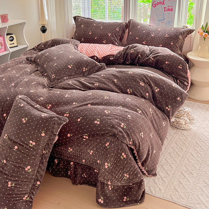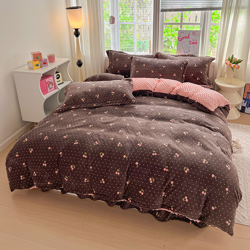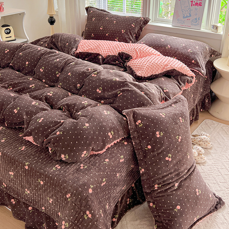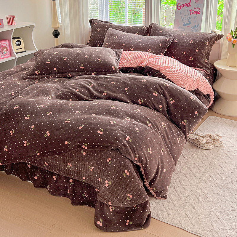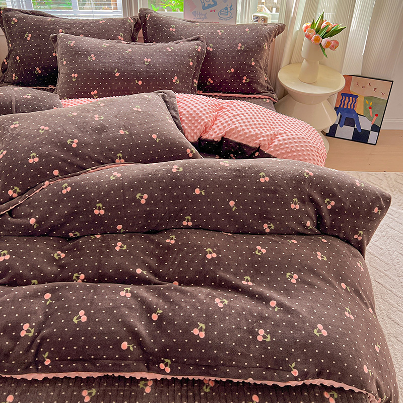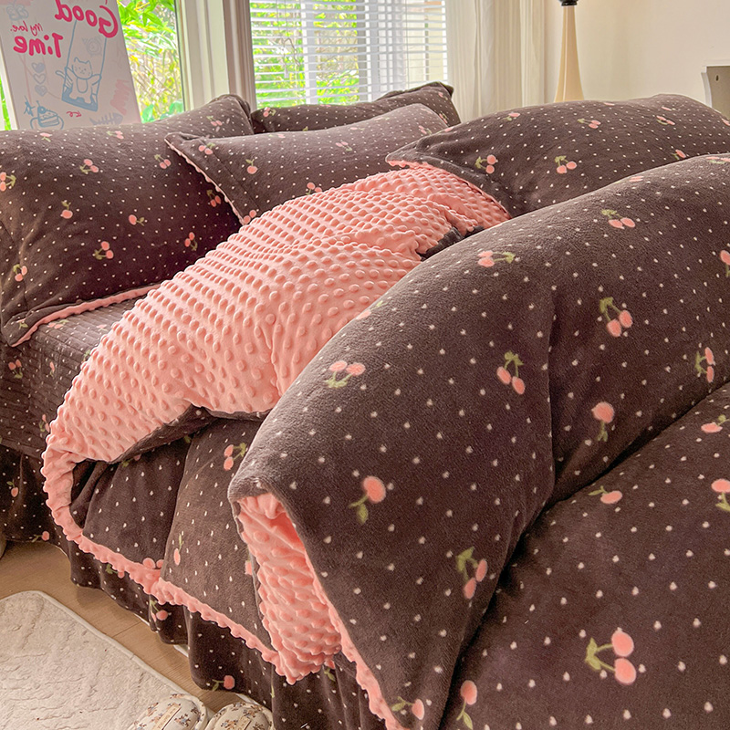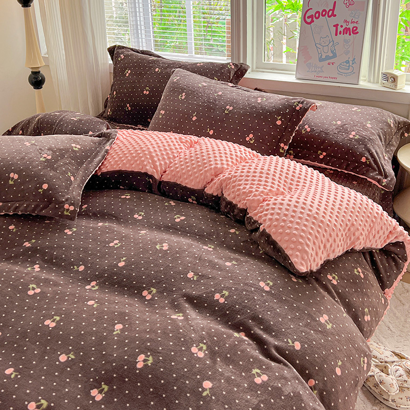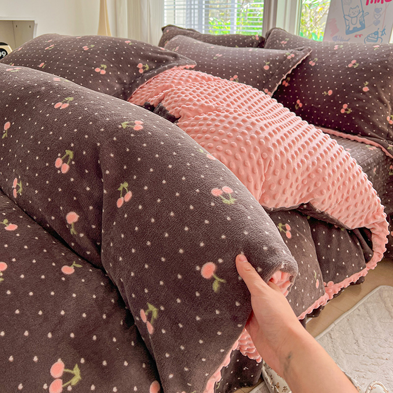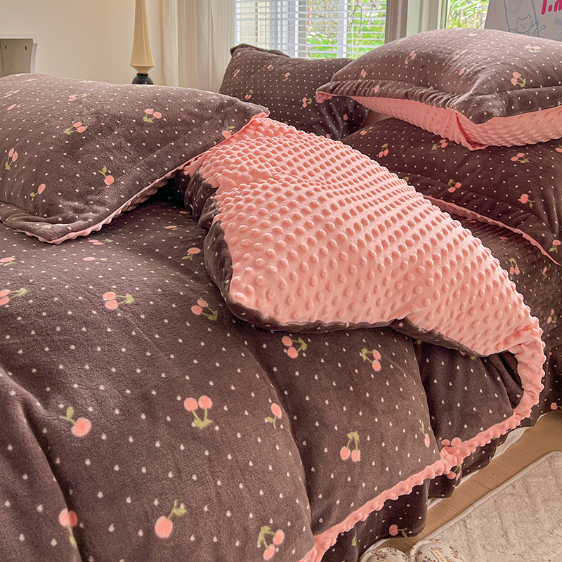 当前位置: 91家纺网 > 商品网购 > 床品套件 > 四件套 > 牛奶绒四件套 > 一比一 2025新款加厚保暖豆豆牛奶绒床盖款四件套樱桃