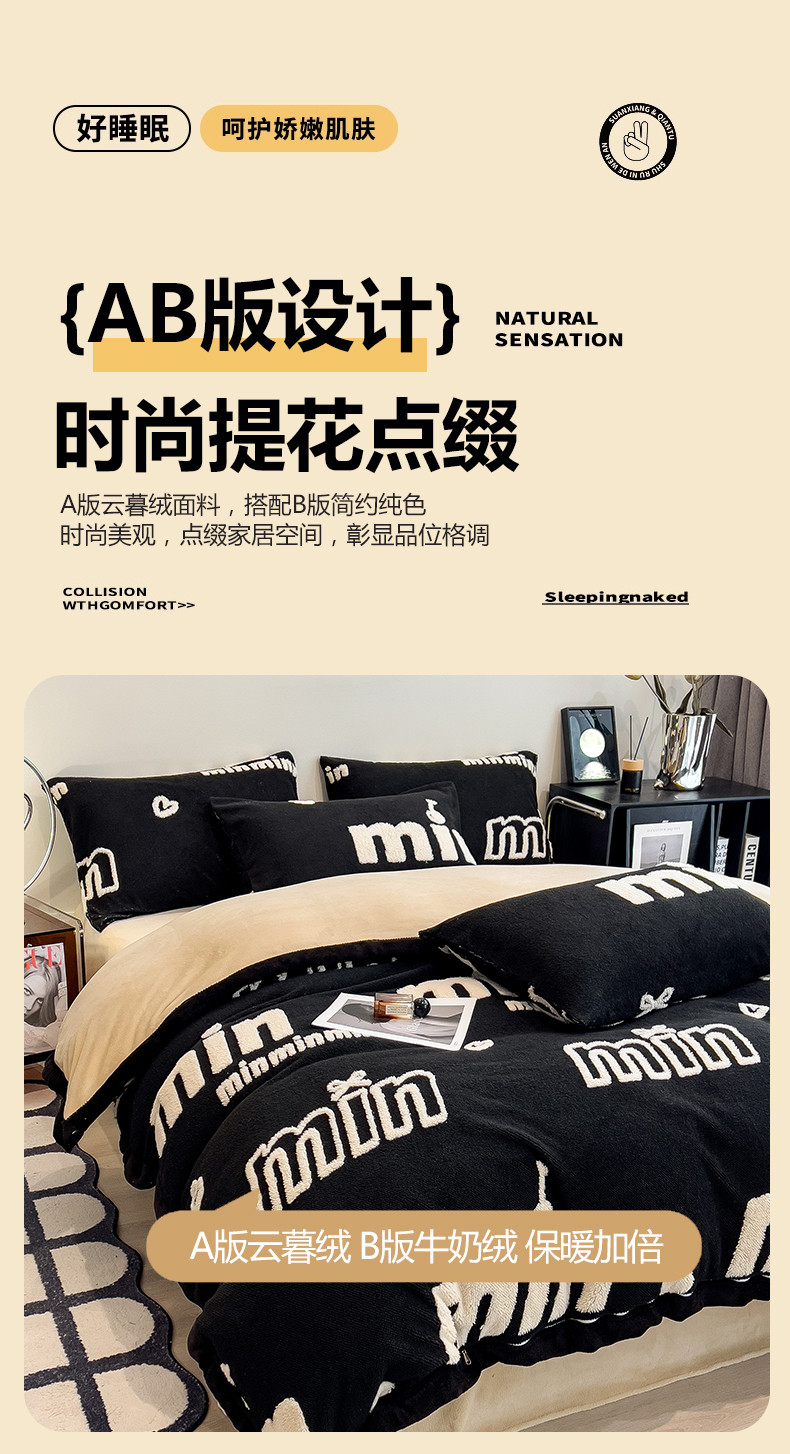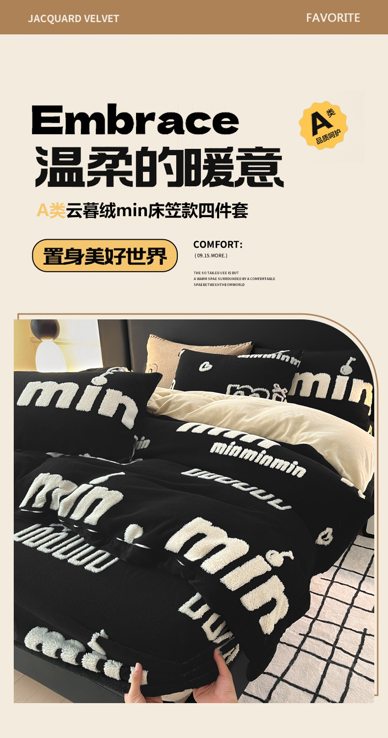 当前位置: 91家纺网 > 商品网购 > 床品套件 > 四件套 > 其它四件套 > 慕木家纺 2025新款A类高克重云暮绒床笠款四件套(跨境专供首选)提供买家秀 云暮绒min床笠四件套-墨池黑