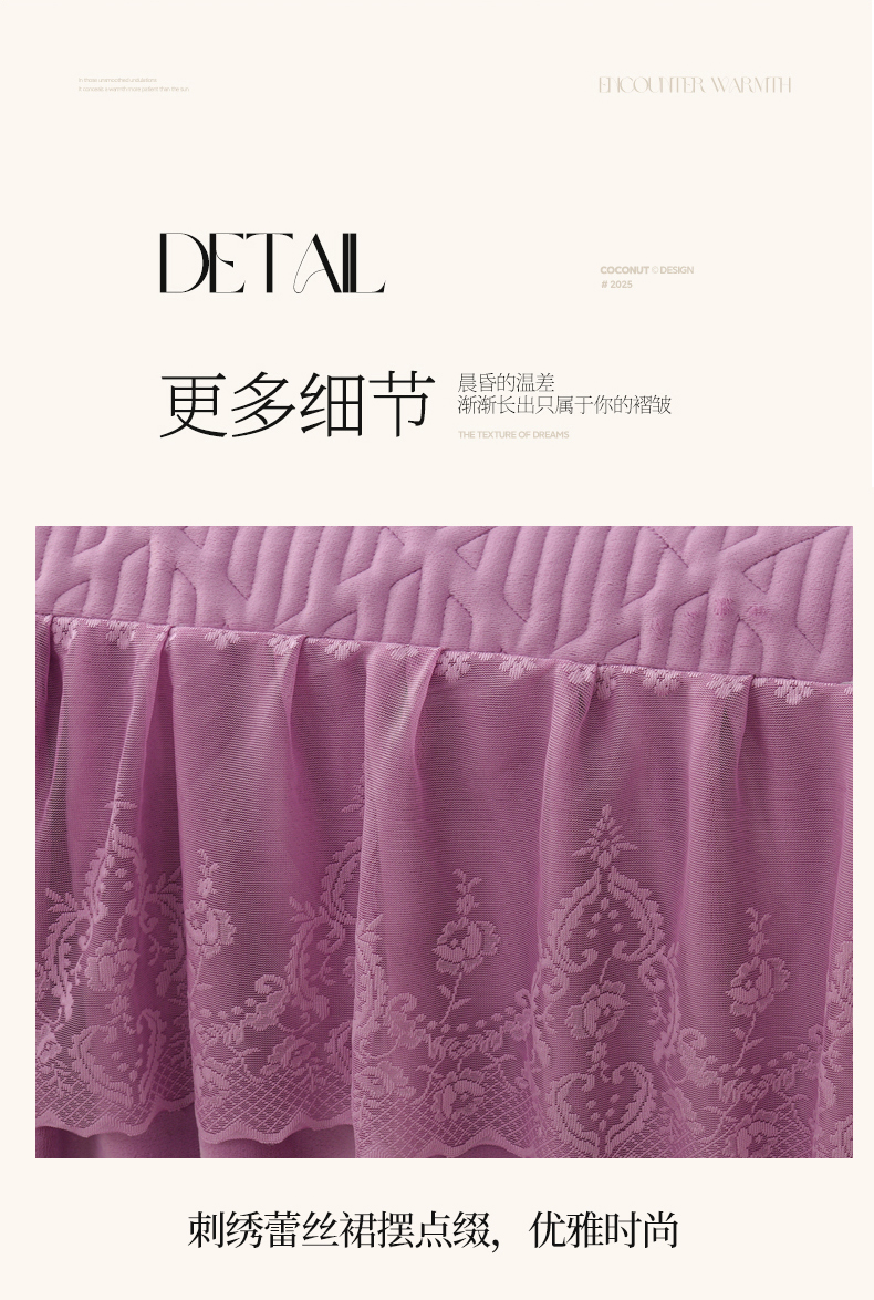 优家居 2025新品240克高克重牛奶绒韩版牛奶绒夹棉床裙三件套冬季直播爆款 东方韵-紫色