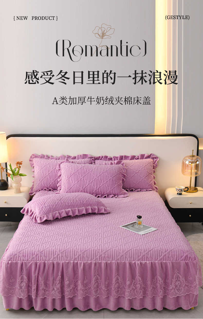 (总)优家居 2025新品240克高克重牛奶绒韩版牛奶绒夹棉床裙三件套冬季直播爆款,东方韵-豆沙,东方韵-灰色,东方韵-浅粉,东方韵-浅蓝,东方韵-紫色,东方韵-橙色