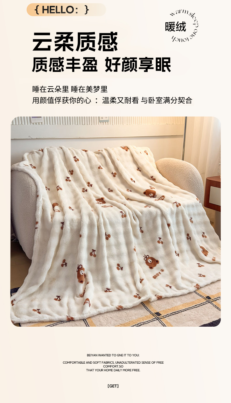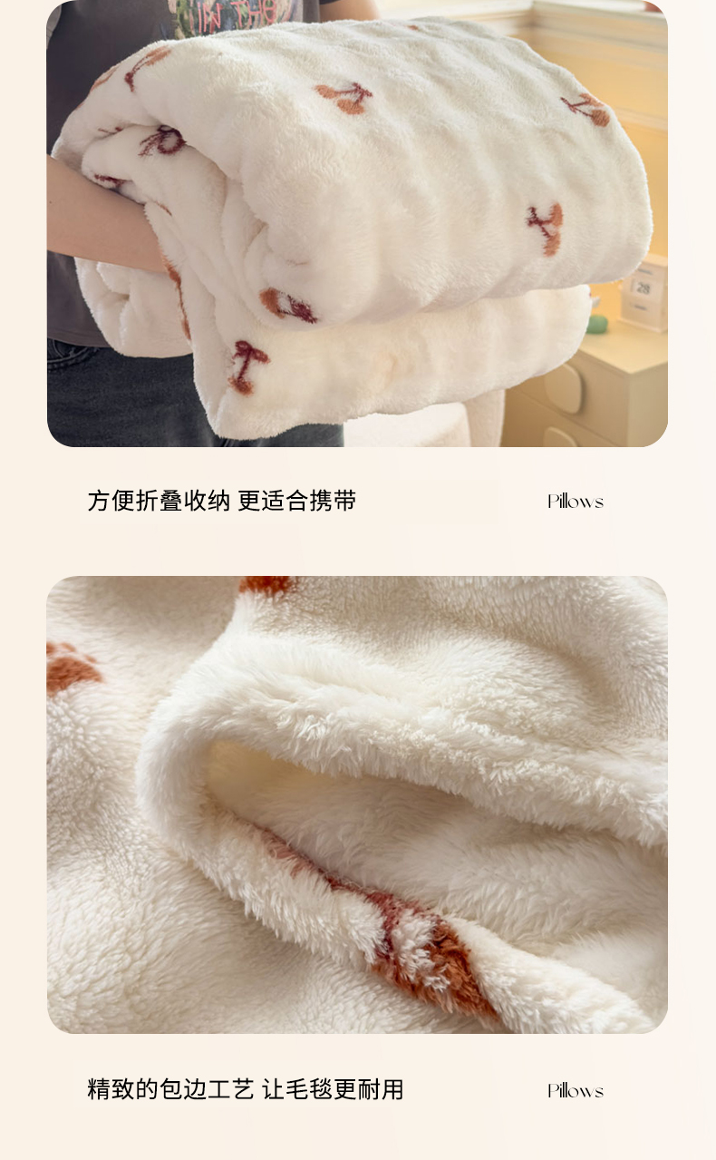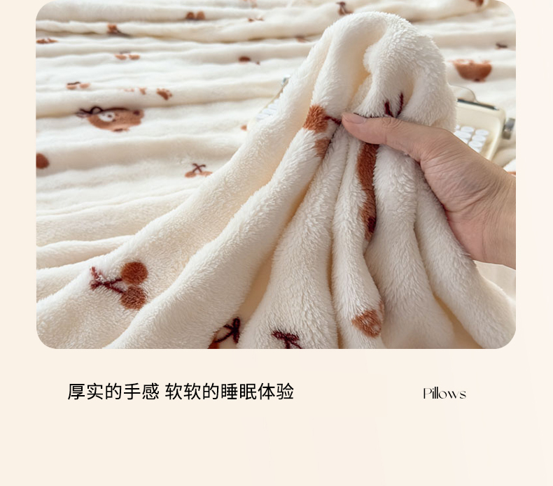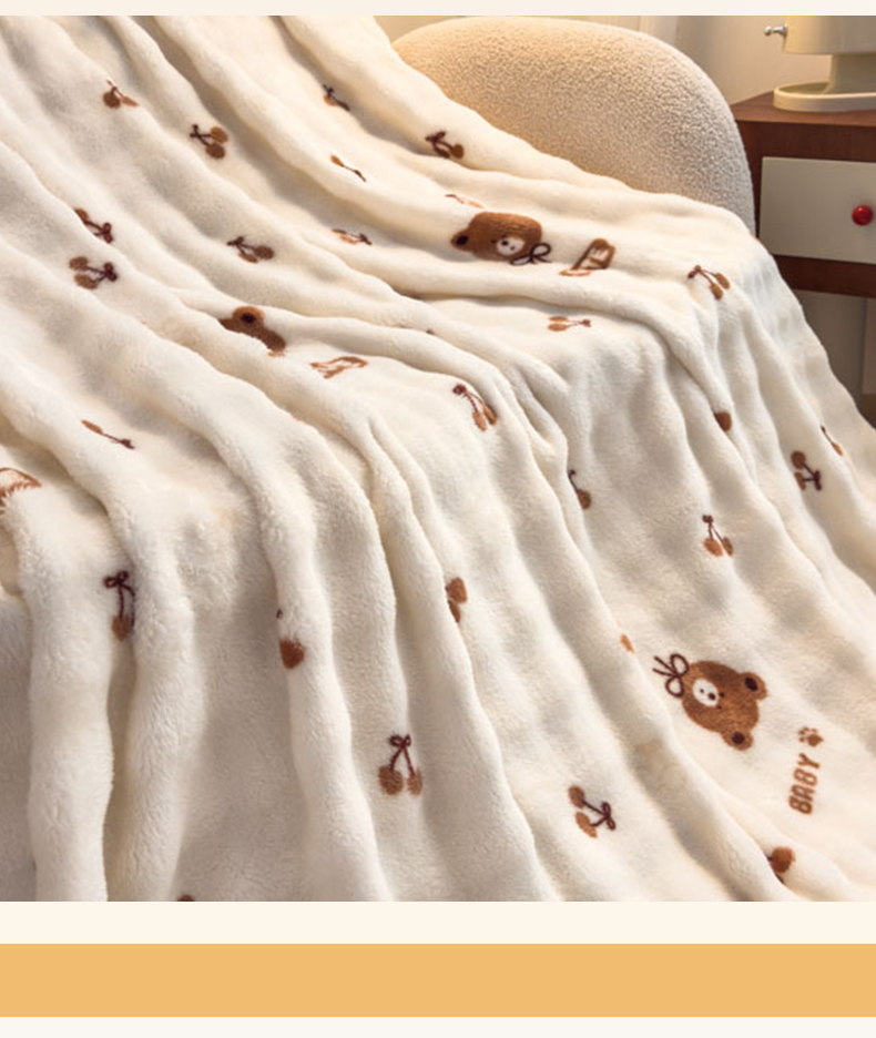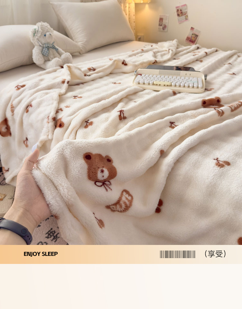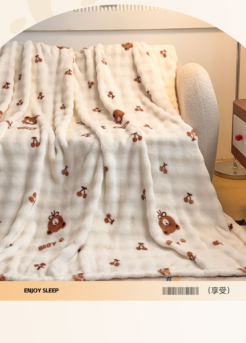 商品名称:爱彼家纺 2025秋冬新款泡泡绒印花毛毯毯子多功能盖毯-系列二 樱桃小熊