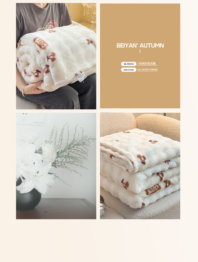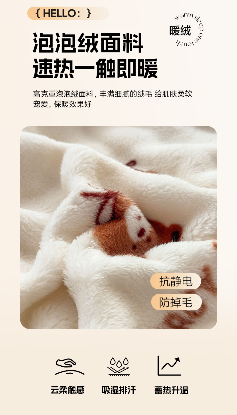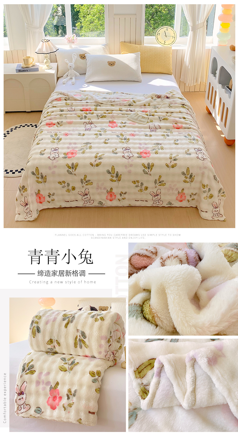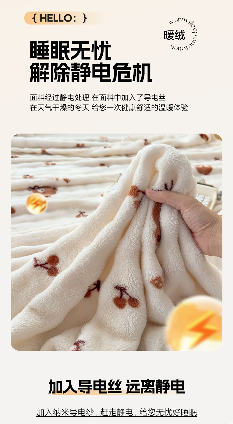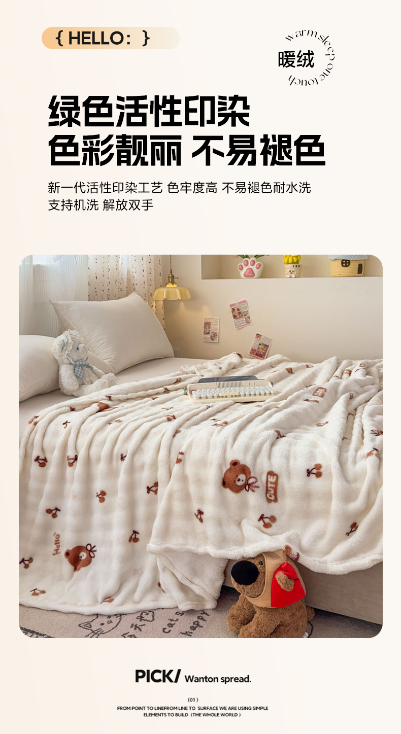 商品名称:爱彼家纺 2025秋冬新款泡泡绒印花毛毯毯子多功能盖毯-系列二 樱桃小熊