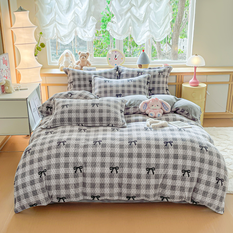 典曼家纺 2025新款加厚保暖双面牛奶绒四件套 方糖蝴蝶结