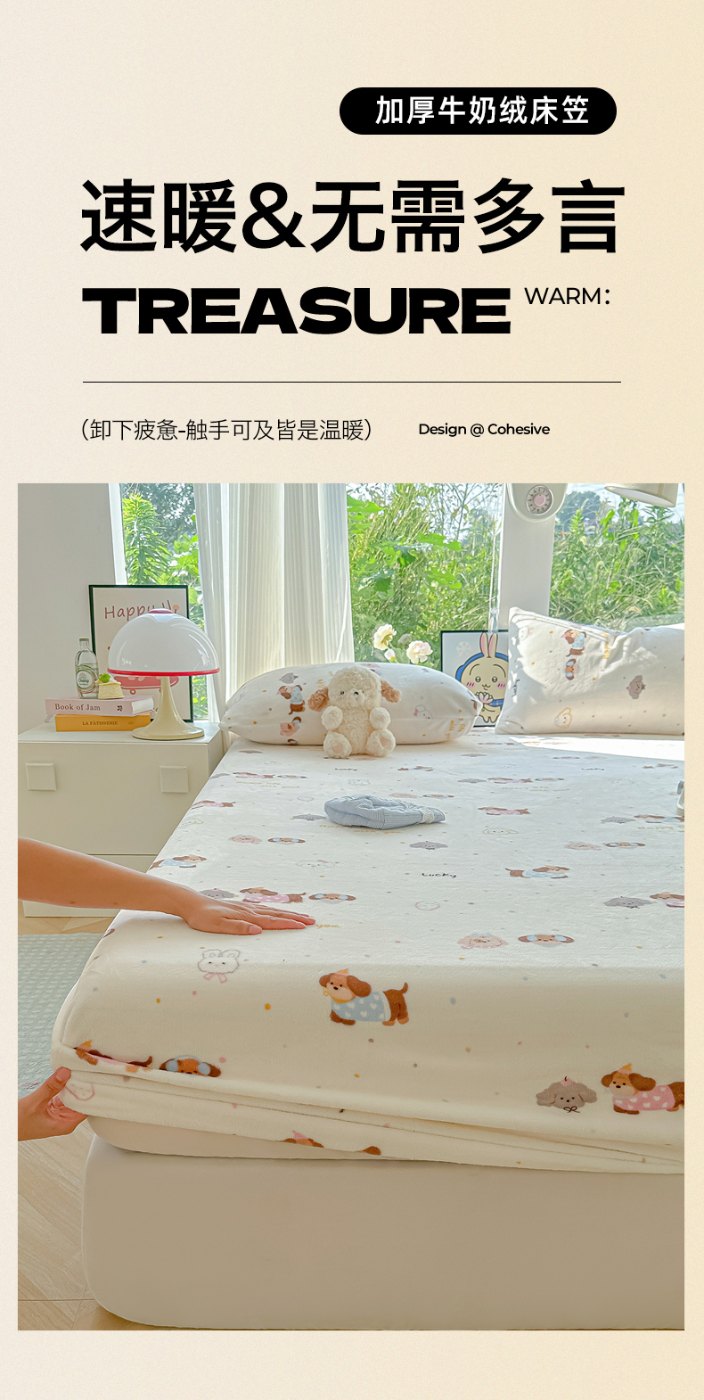 • 91家纺网 家纺一手货源 找家纺 沐芷 2025 加厚高克重牛奶绒床笠单件/床笠三件套  床笠款床罩床垫保护套罩 【绒】腊肠狗联盟