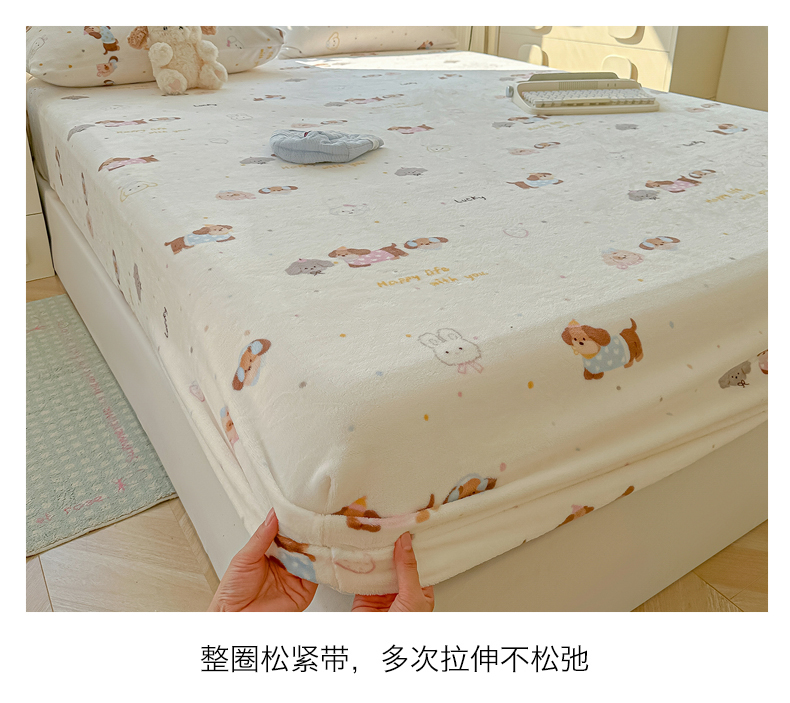 沐芷 2025 加厚高克重牛奶绒床笠单件/床笠三件套 床笠款床罩床垫保护套罩 【绒】腊肠狗联盟