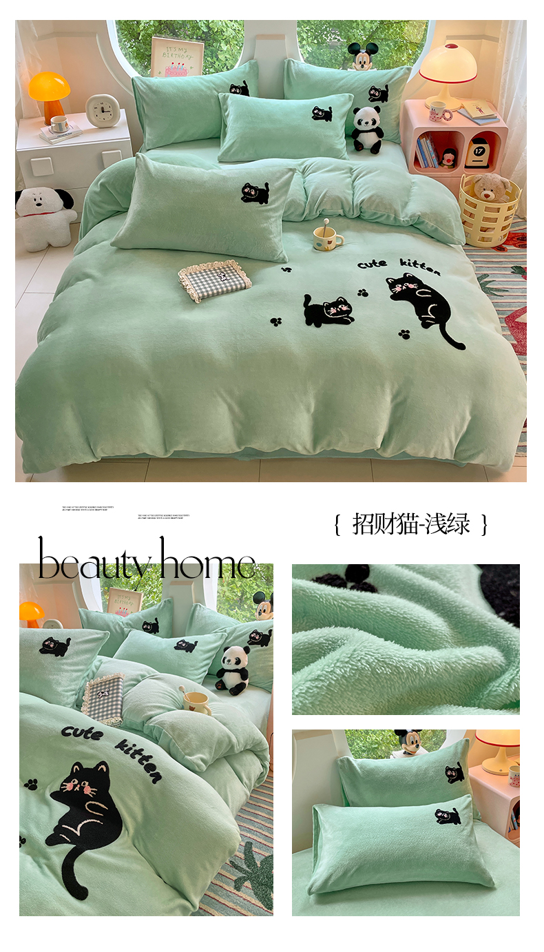 当前位置: 91家纺网 > 商品网购 > 床品套件 > 四件套 > 牛奶绒四件套 > 优卡迪家纺馆 2025新款牛奶绒毛巾绣四件套 下载文件包含买家秀 小怪兽-浅绿