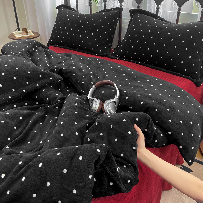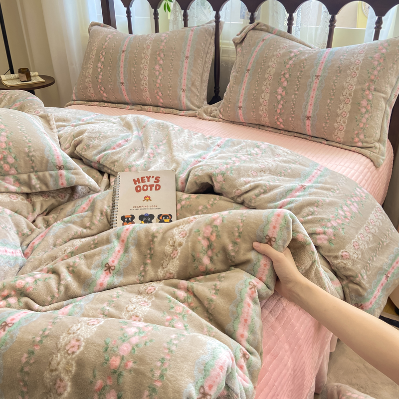 典曼家纺 2025新款亲肤舒适双面牛奶绒床盖款四件套 爱心灰